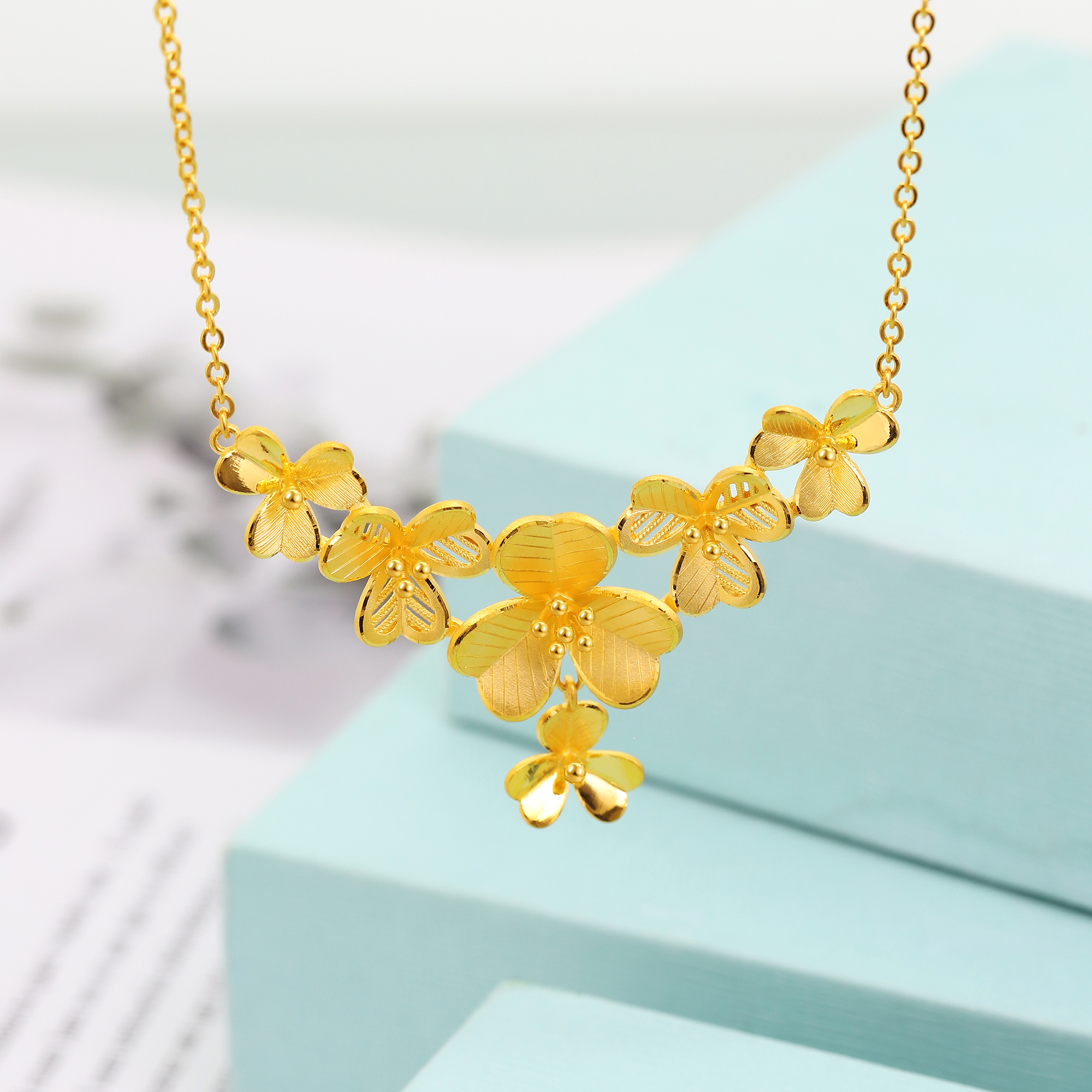 足金花卉流苏套链