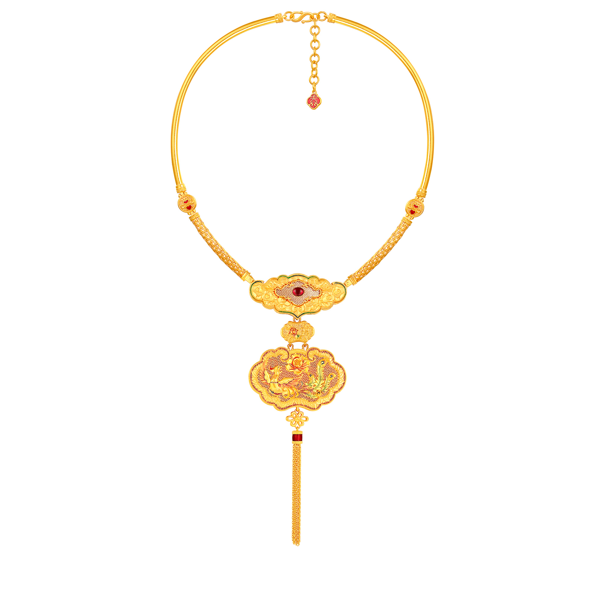 古法经典锁包花卉牡丹富贵满堂螺钿项圈