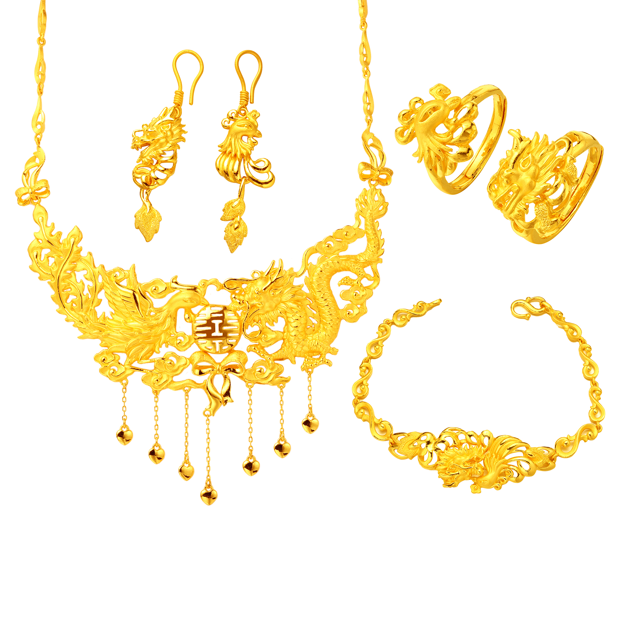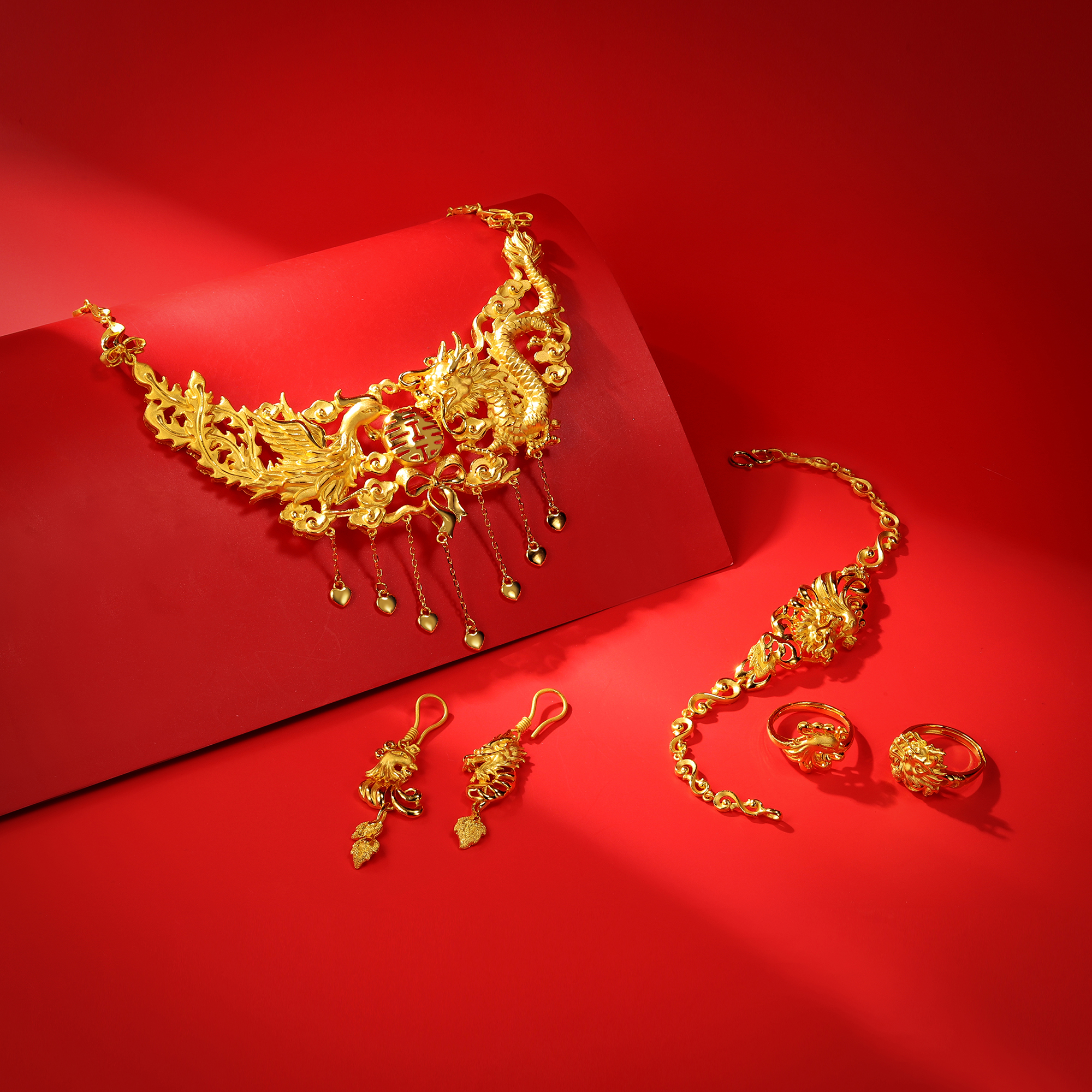 足金精品浪漫婚庆花丝蝴蝶兰拉丝三件套