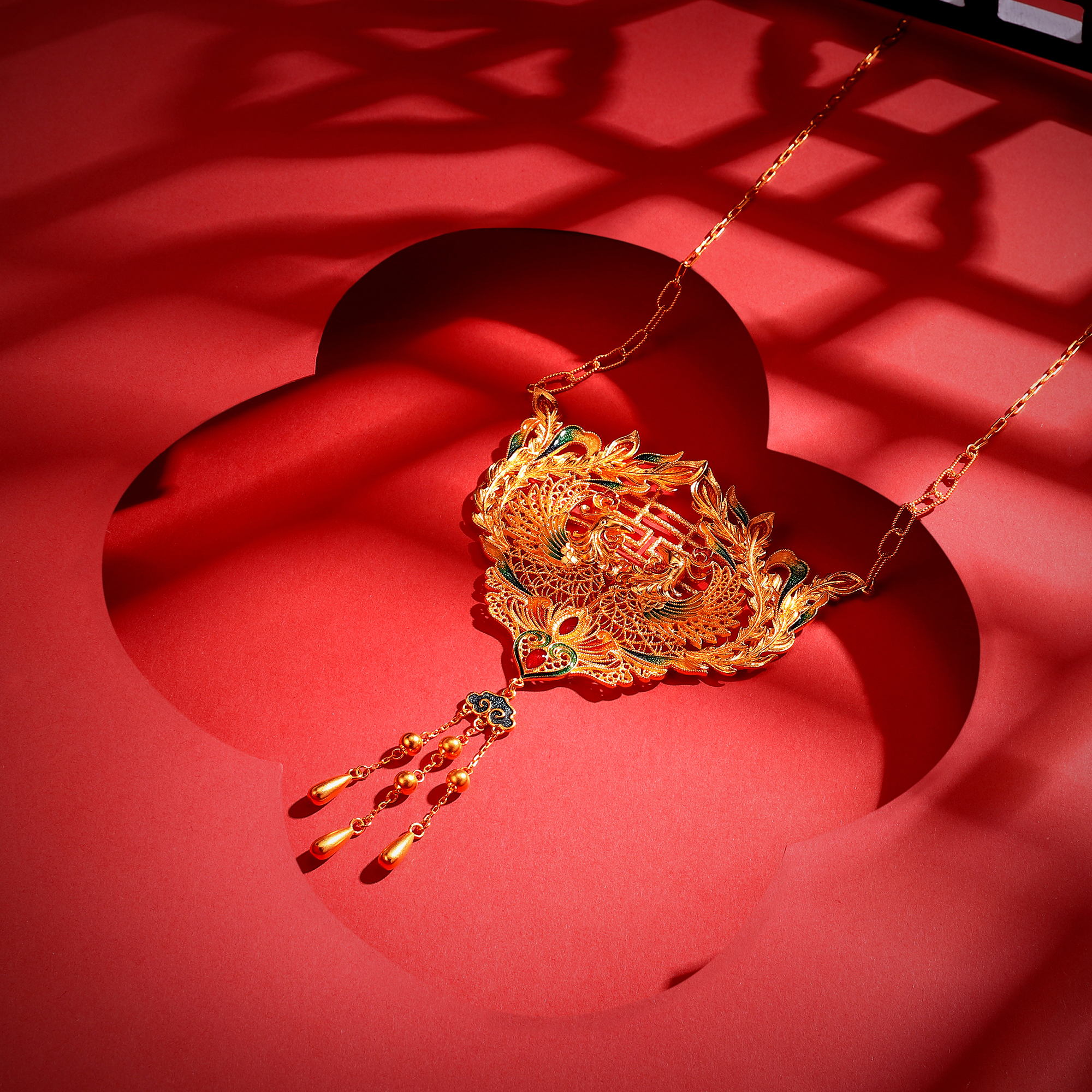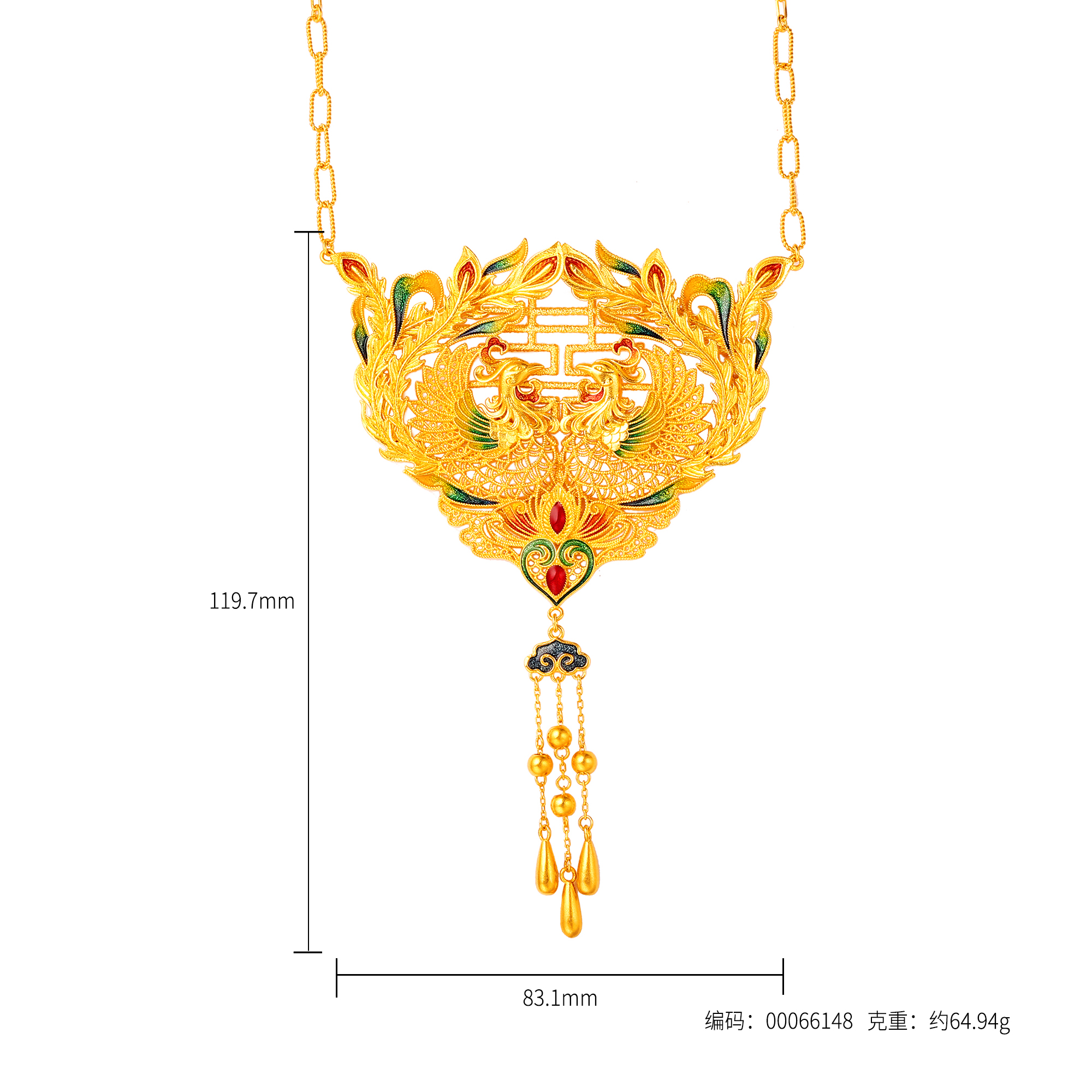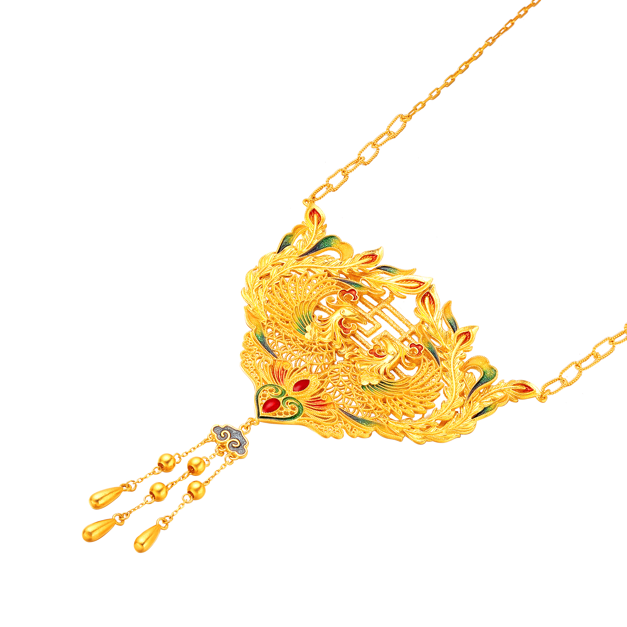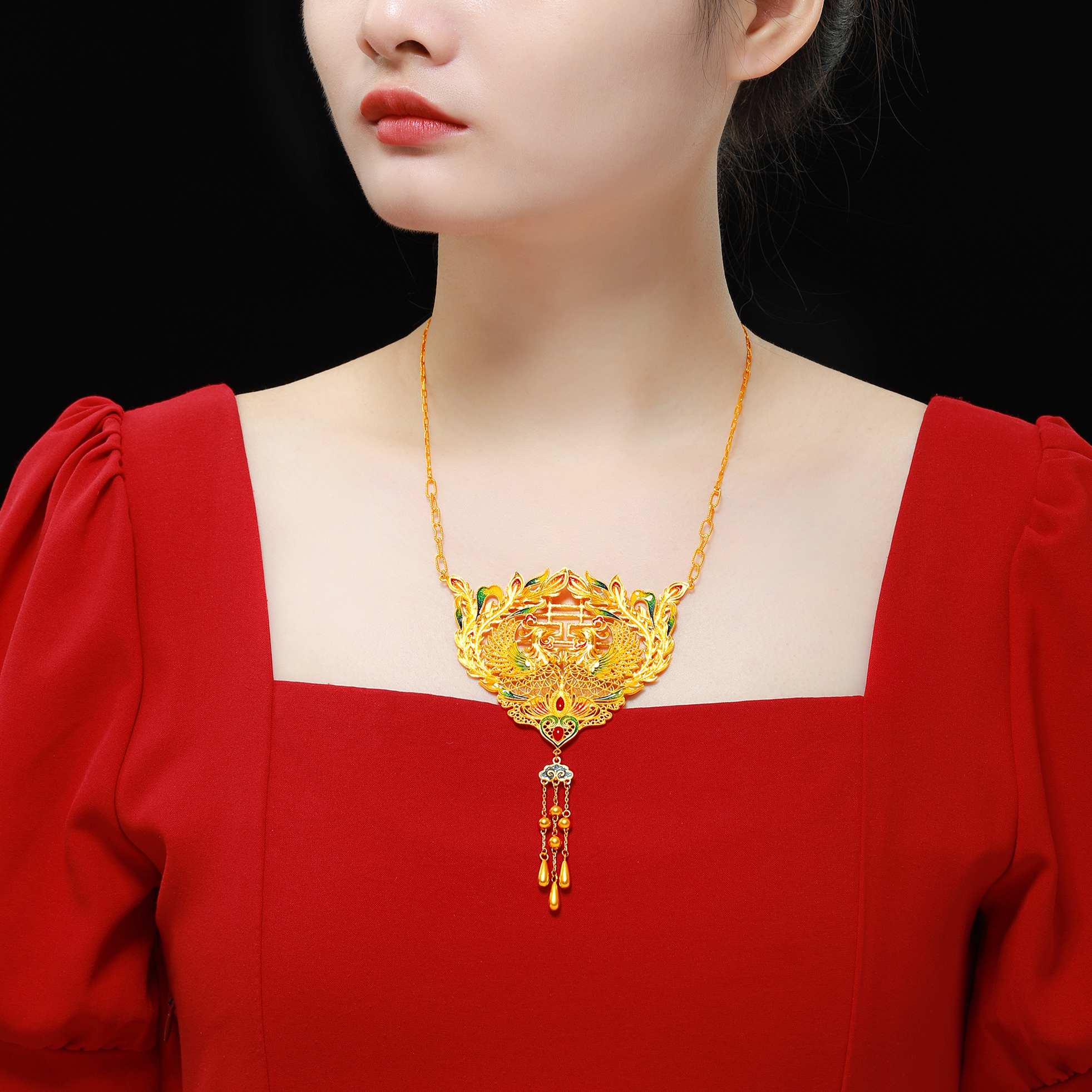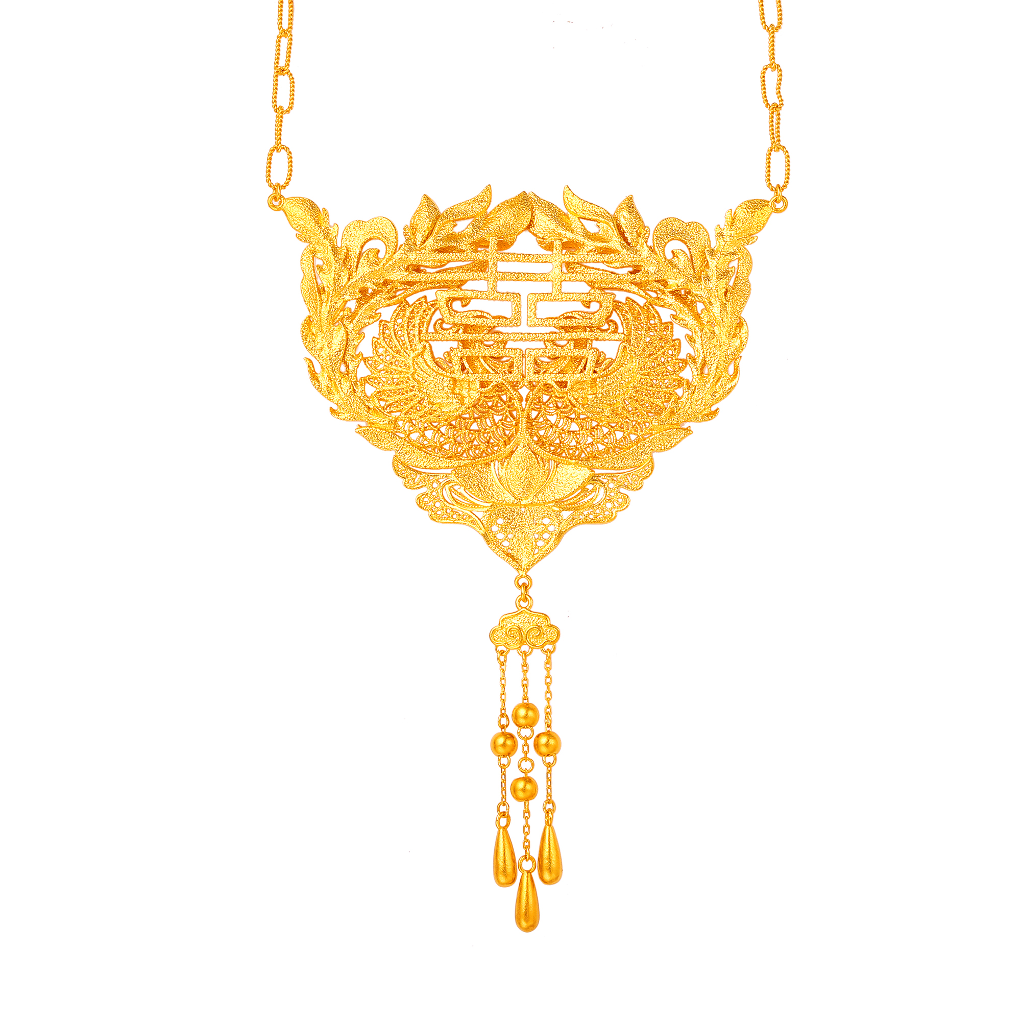 古法花丝凤凰囍牌套链