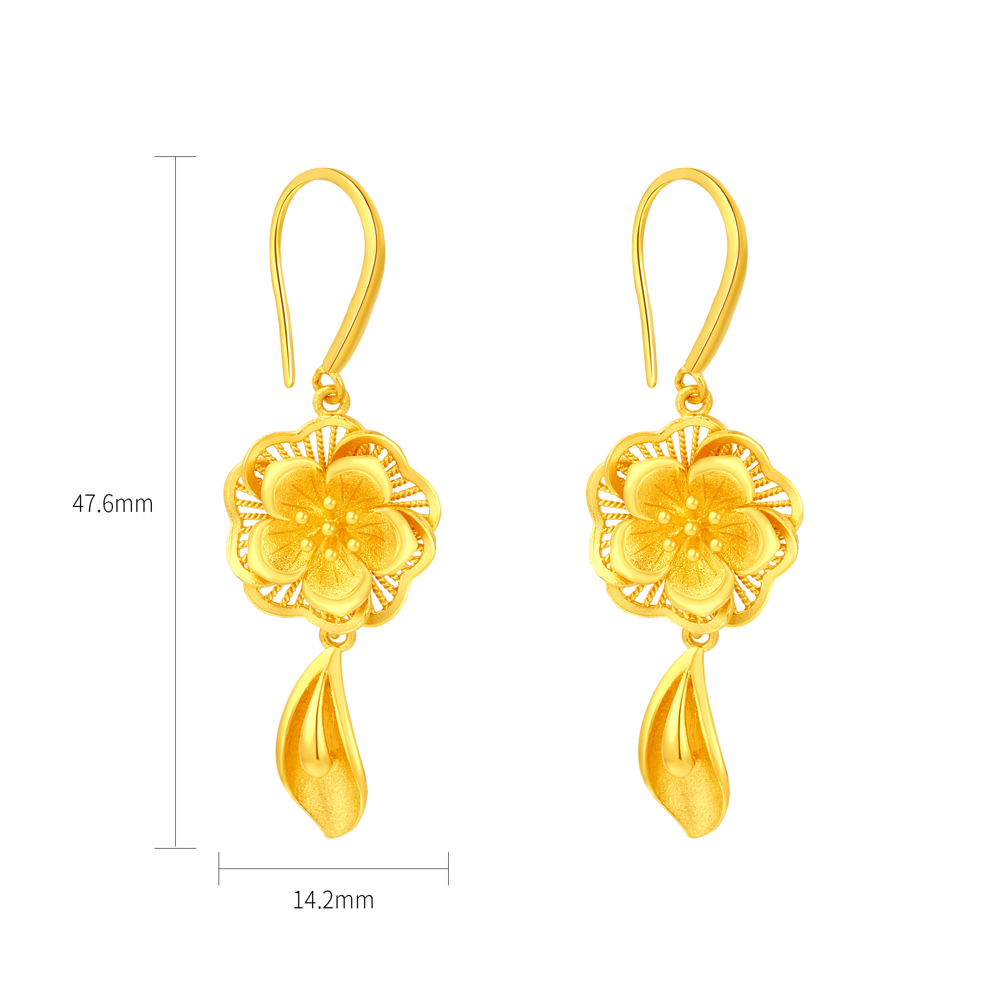 足金精品浪漫婚庆花丝蝴蝶兰拉丝三件套