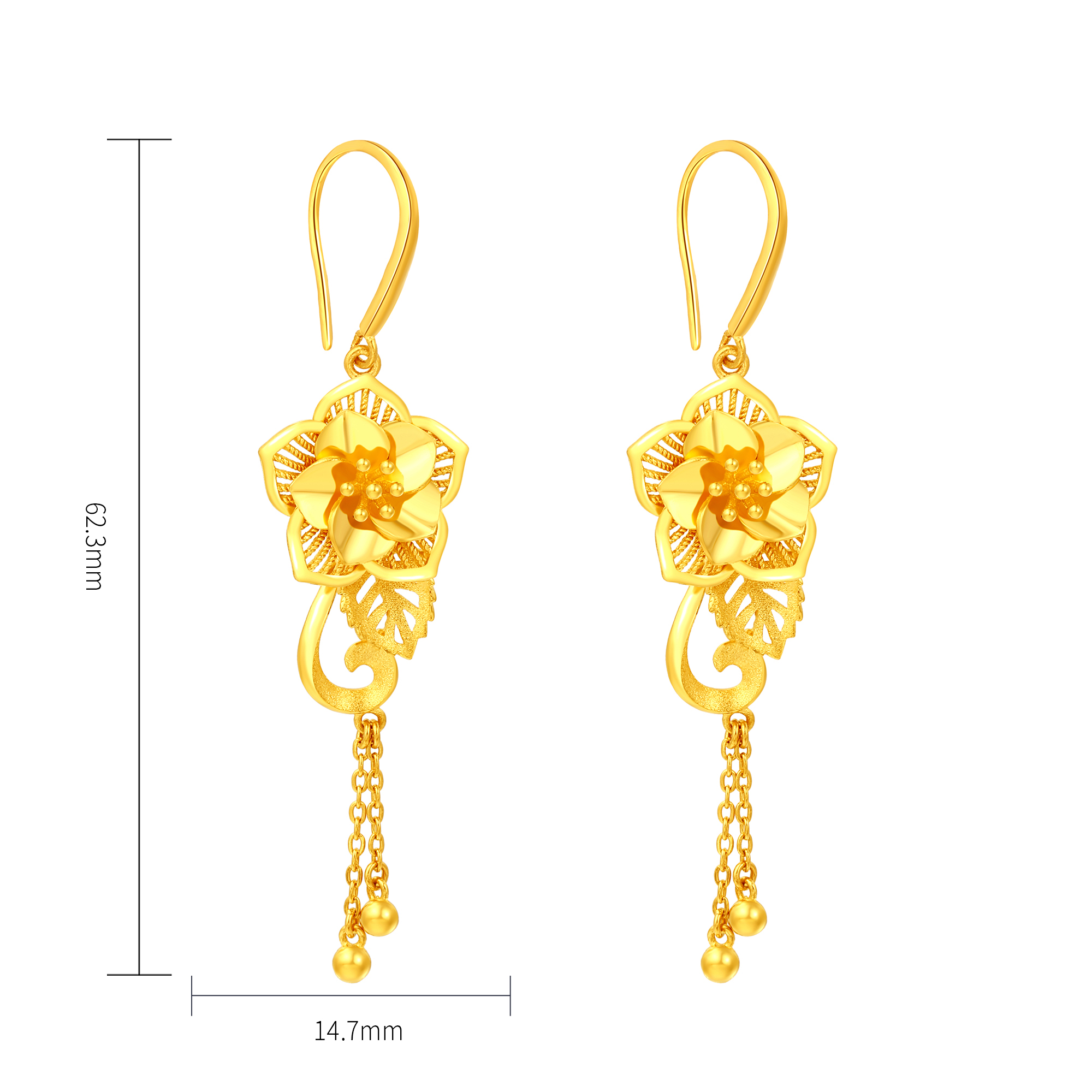 足金精品浪漫婚庆花丝蝴蝶兰拉丝三件套