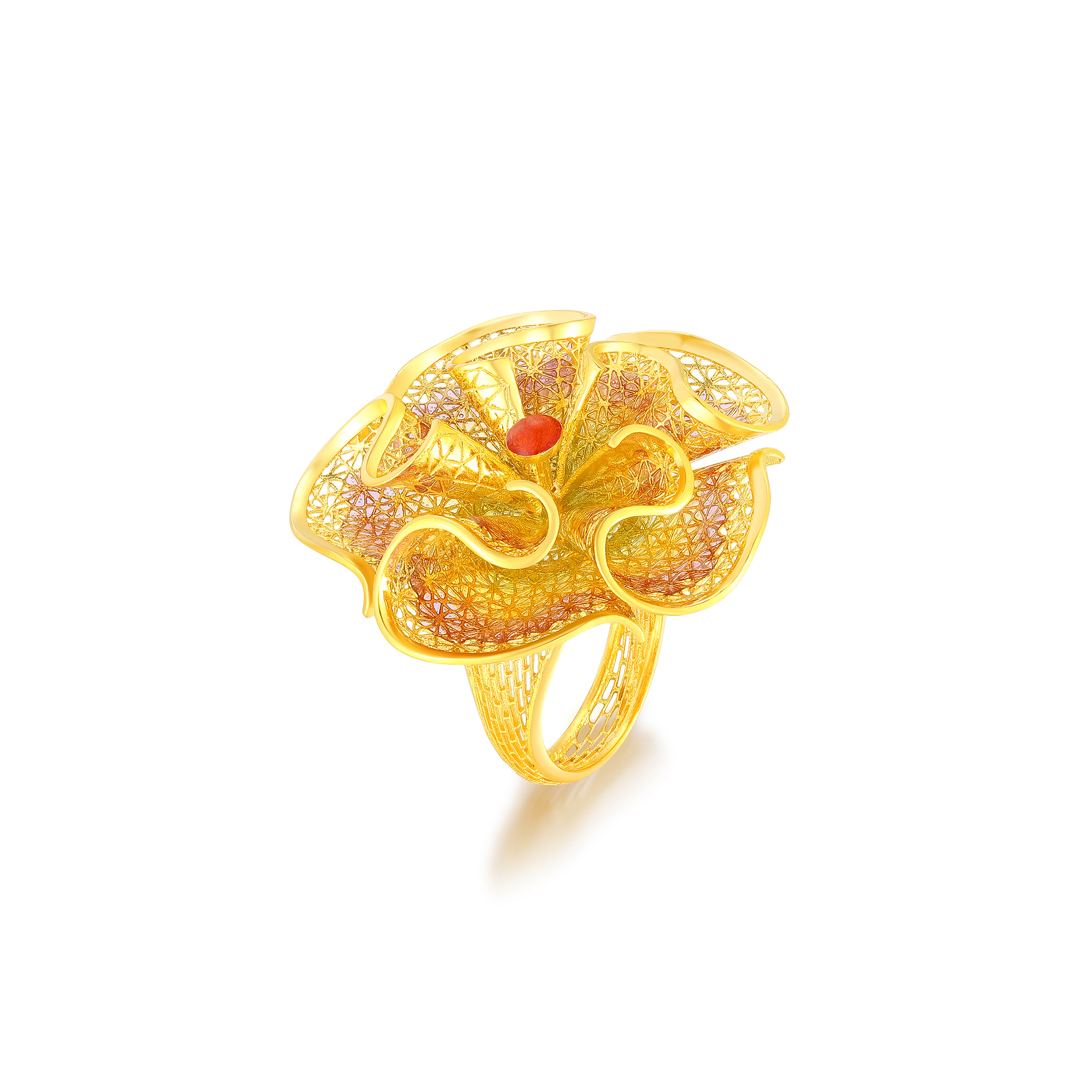 足金精品花形刺绣戒指