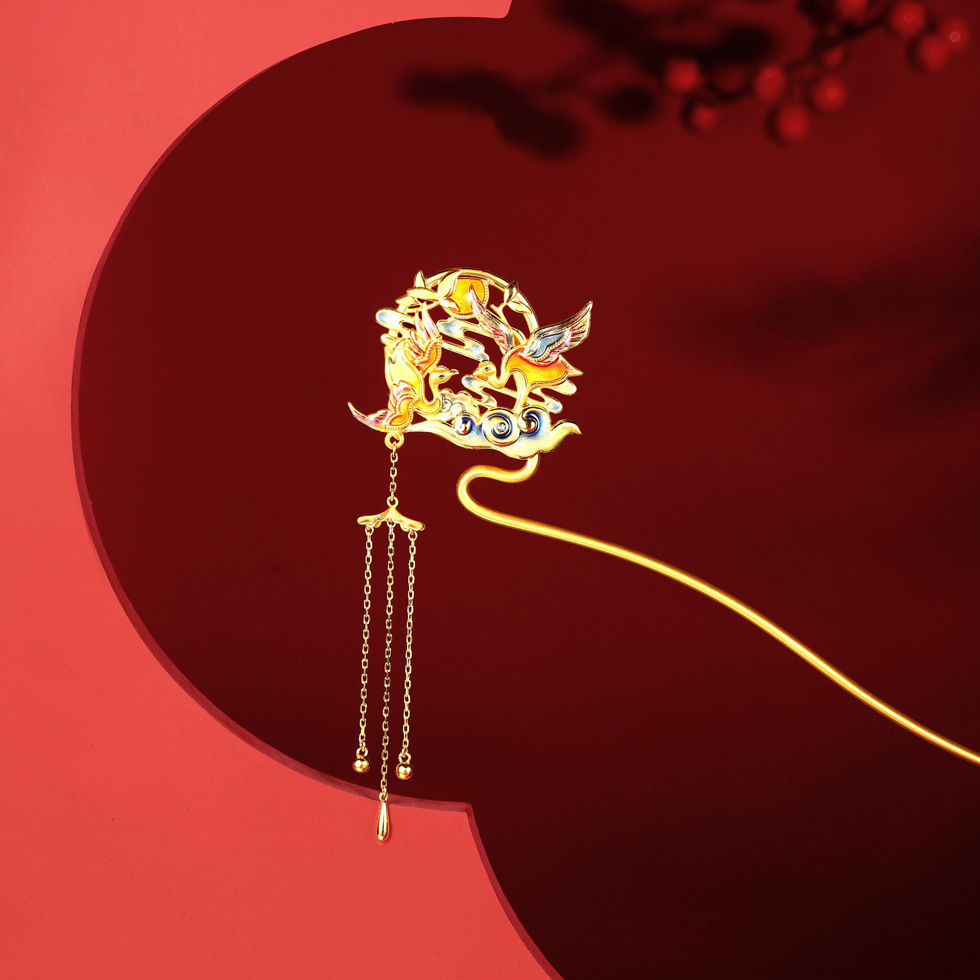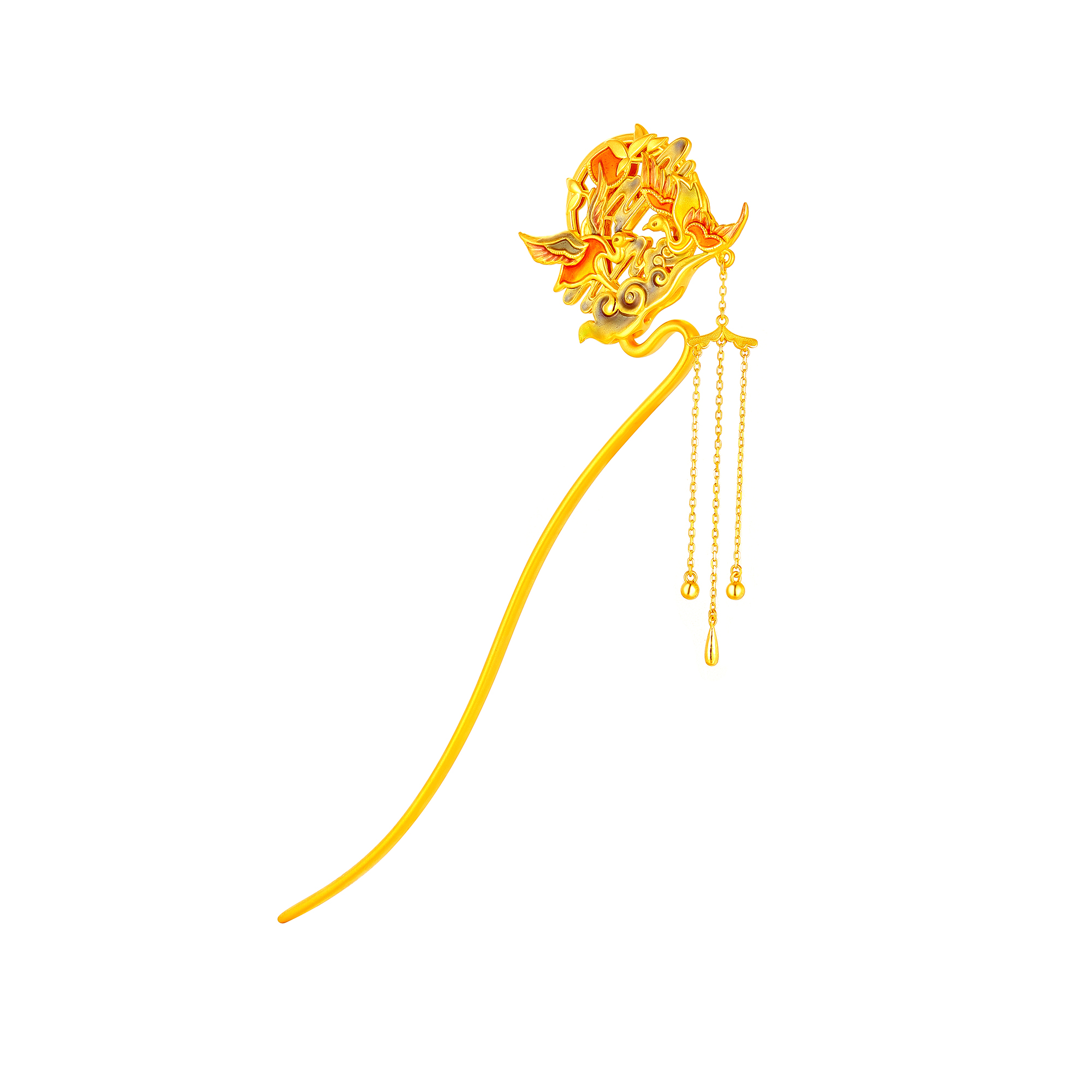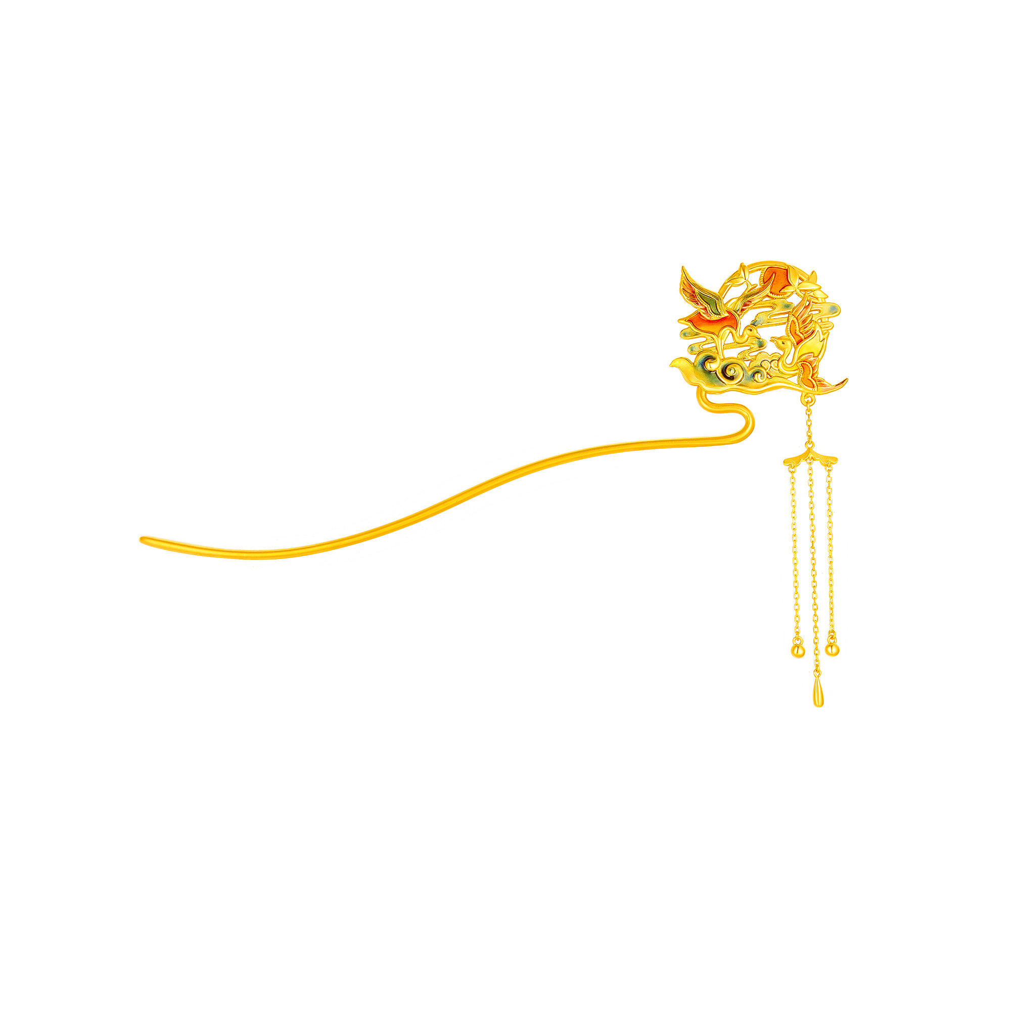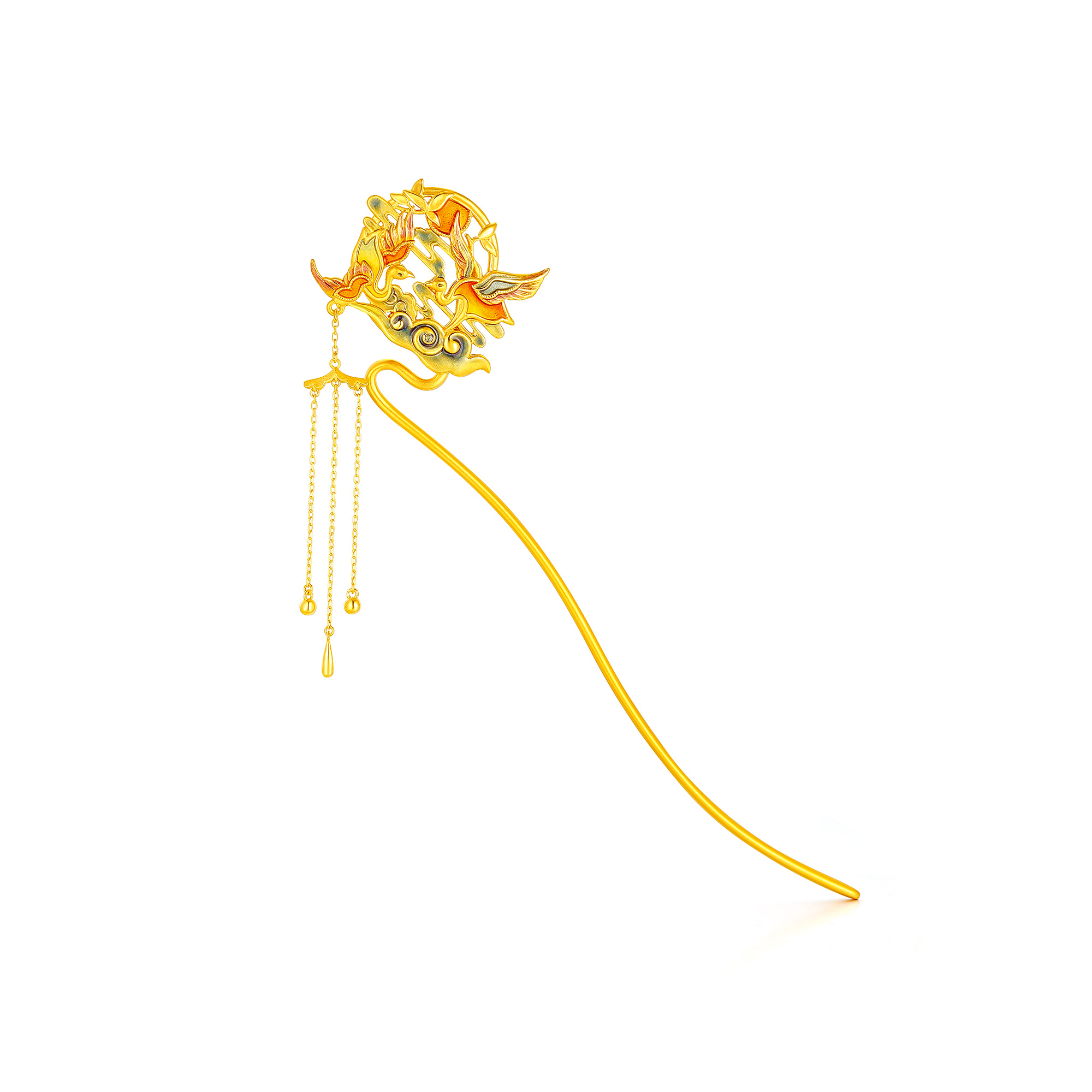 >>无氰硬金双凤发簪