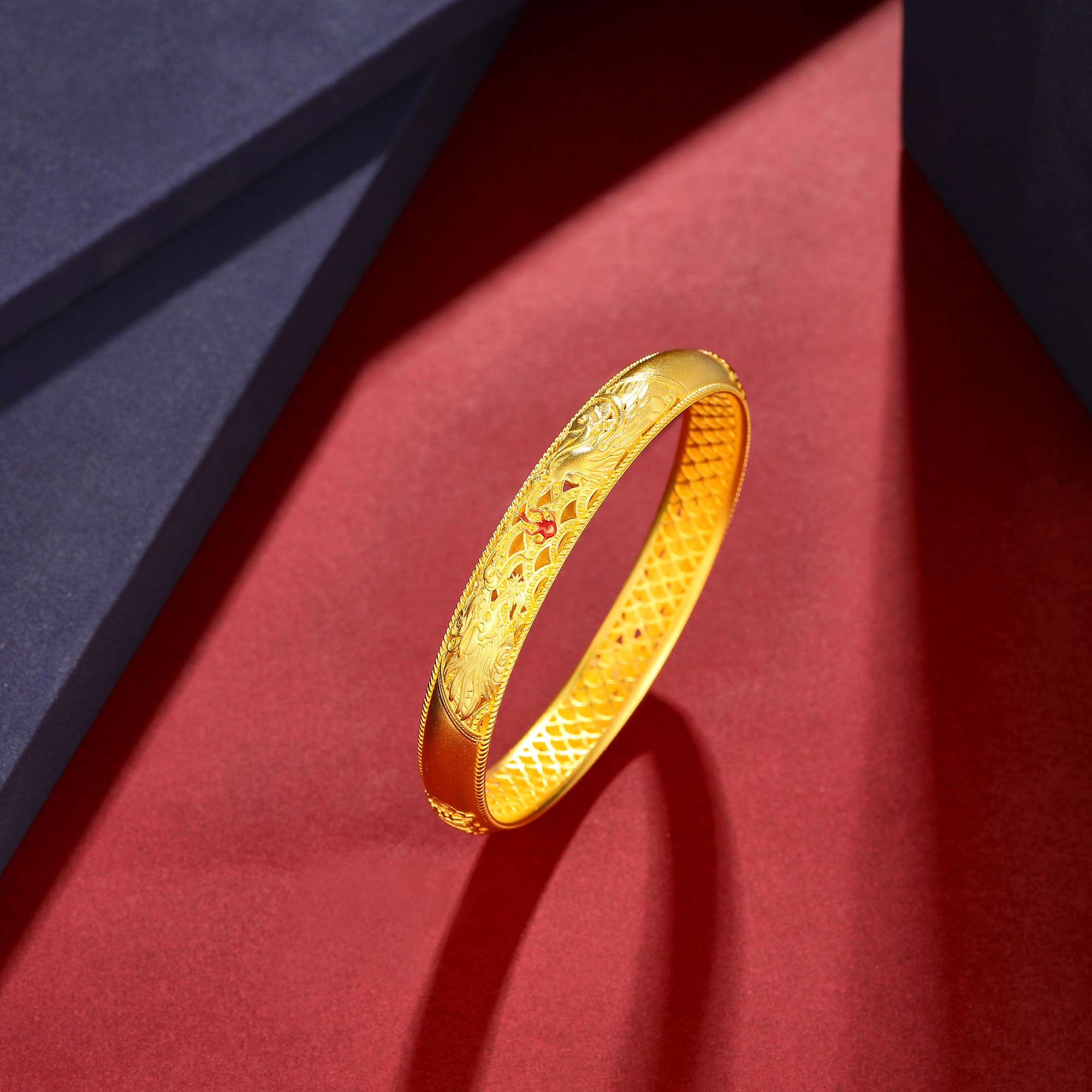 >>古法经典护佑龙凤呈祥婚庆鎏彩固口手镯