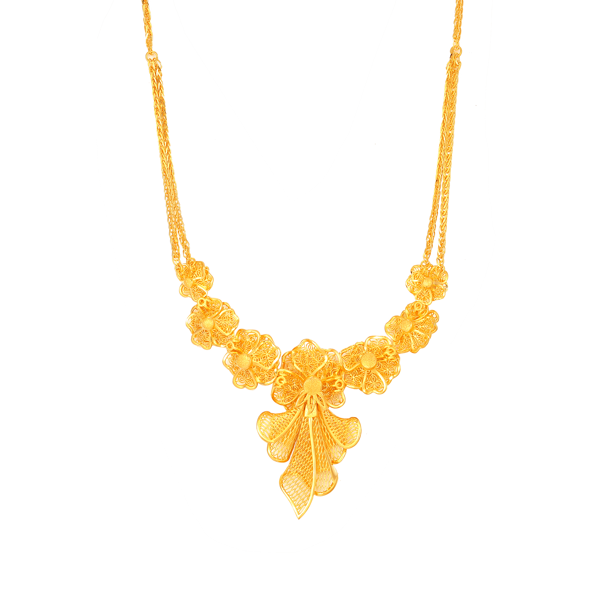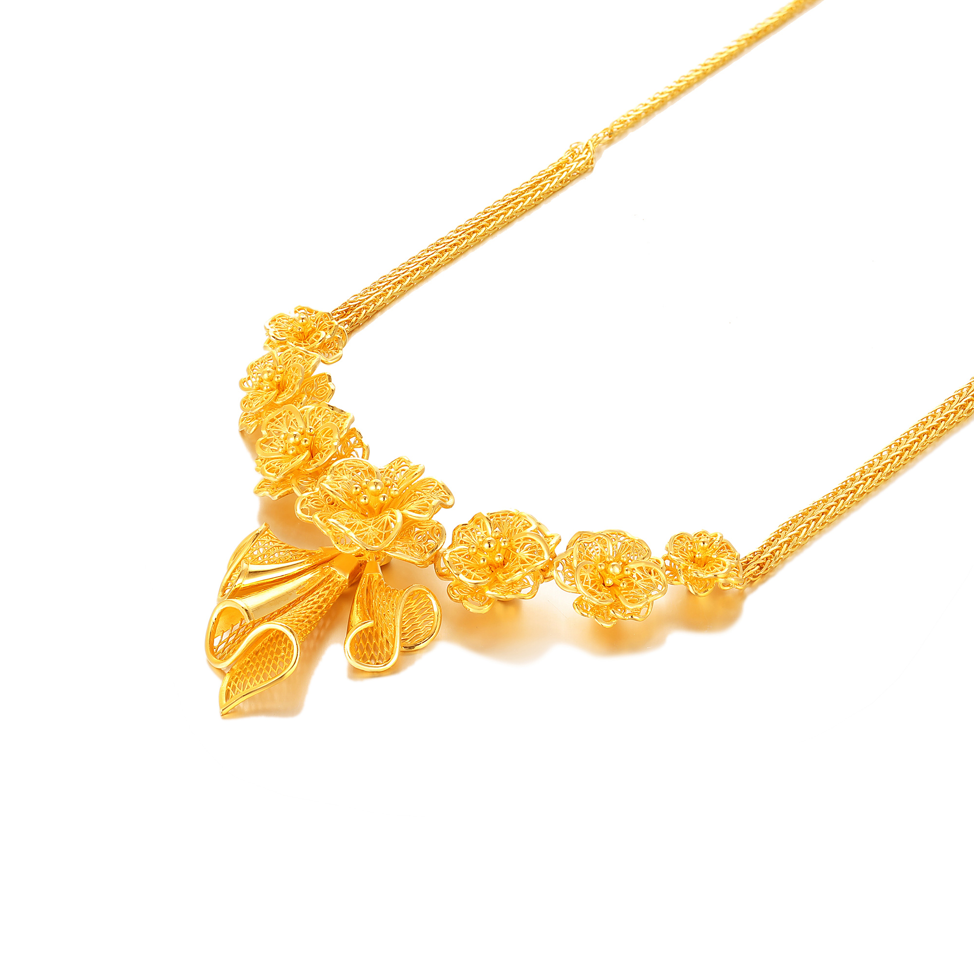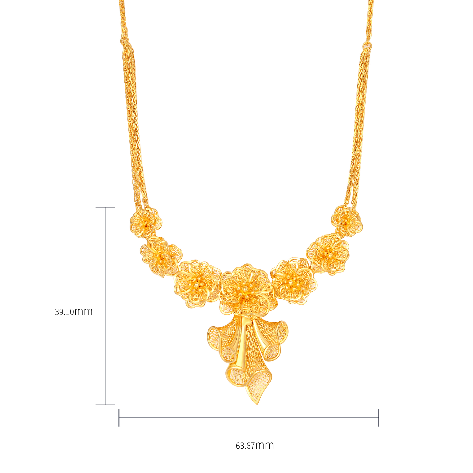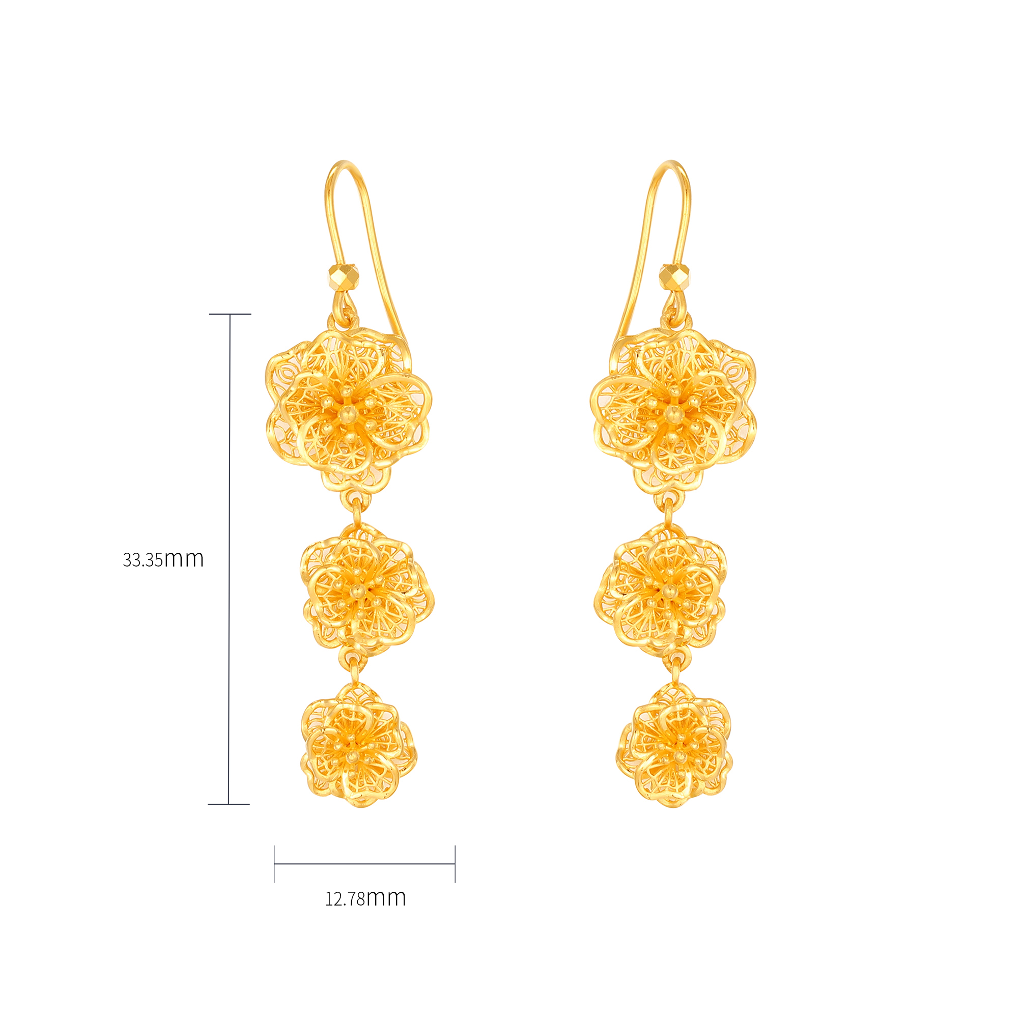 足金精品浪漫婚庆花丝蝴蝶兰拉丝三件套