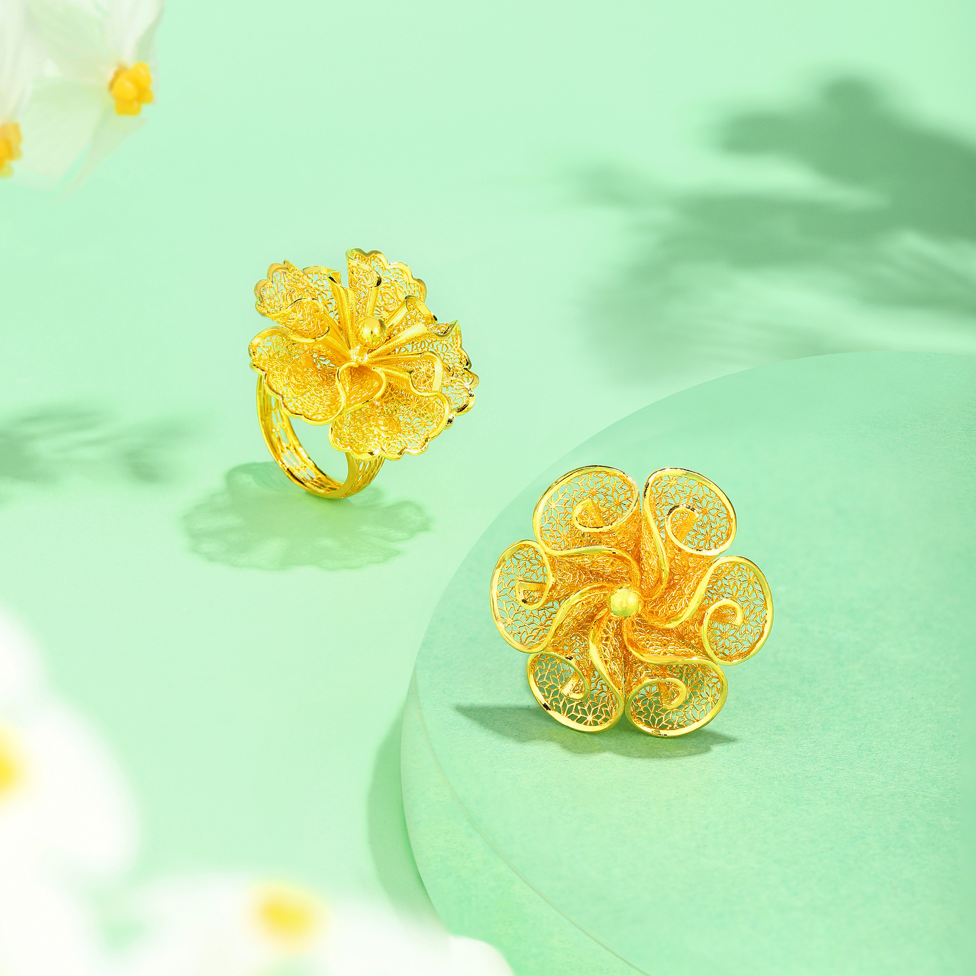 足金精品花形刺绣戒指