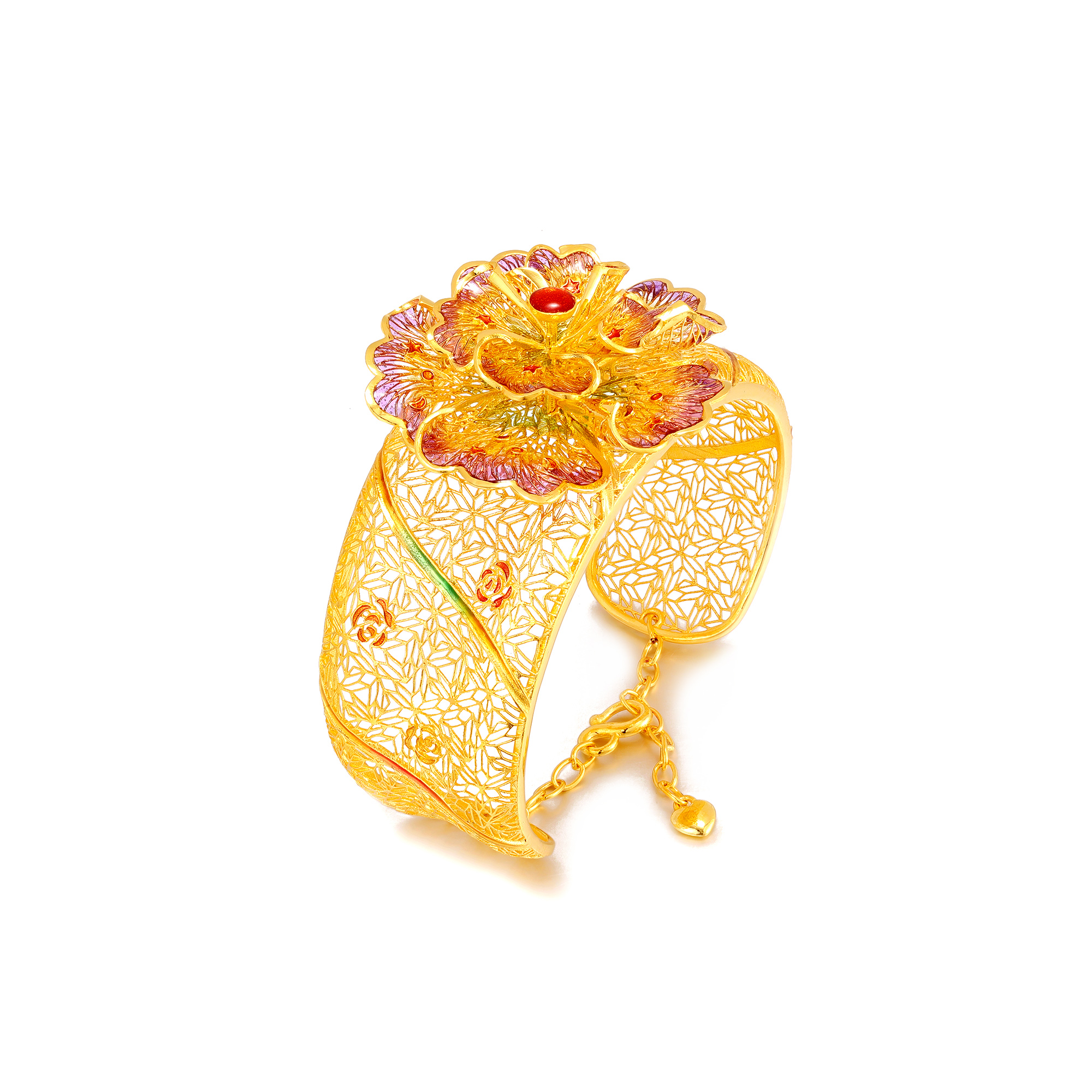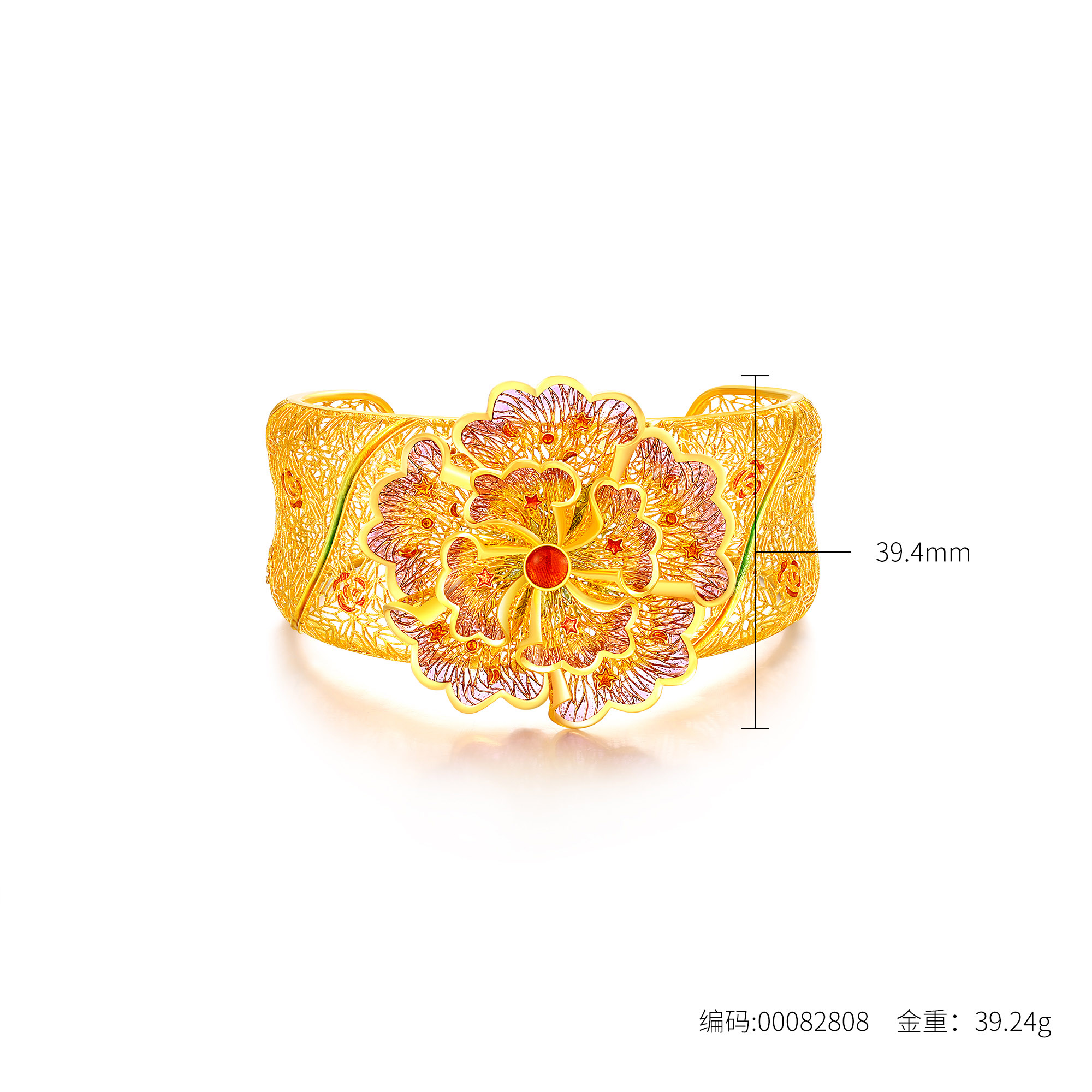 足金喜尚轻纱花镯
