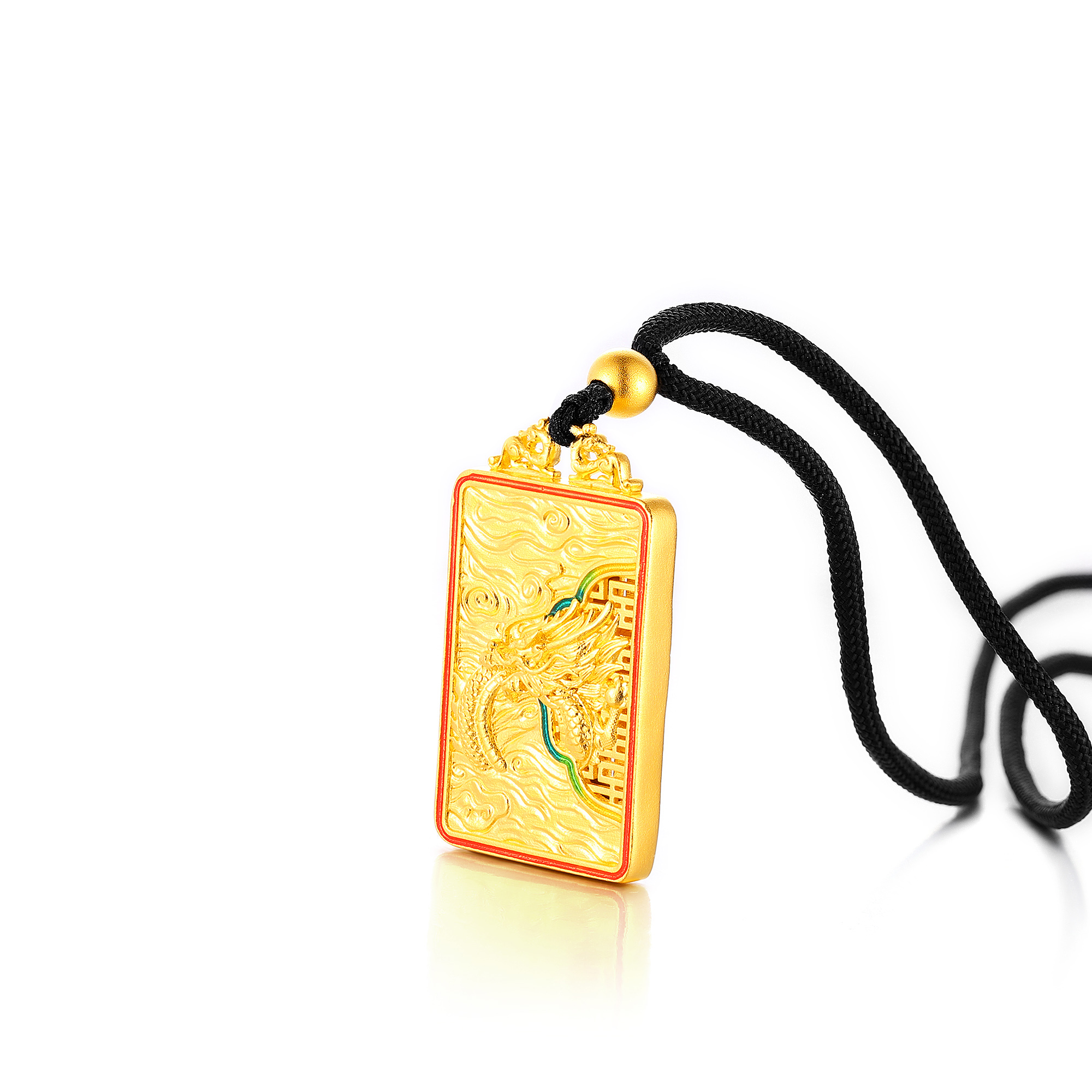 >>古法经典护佑吉庆龙吟鎏彩方牌项链