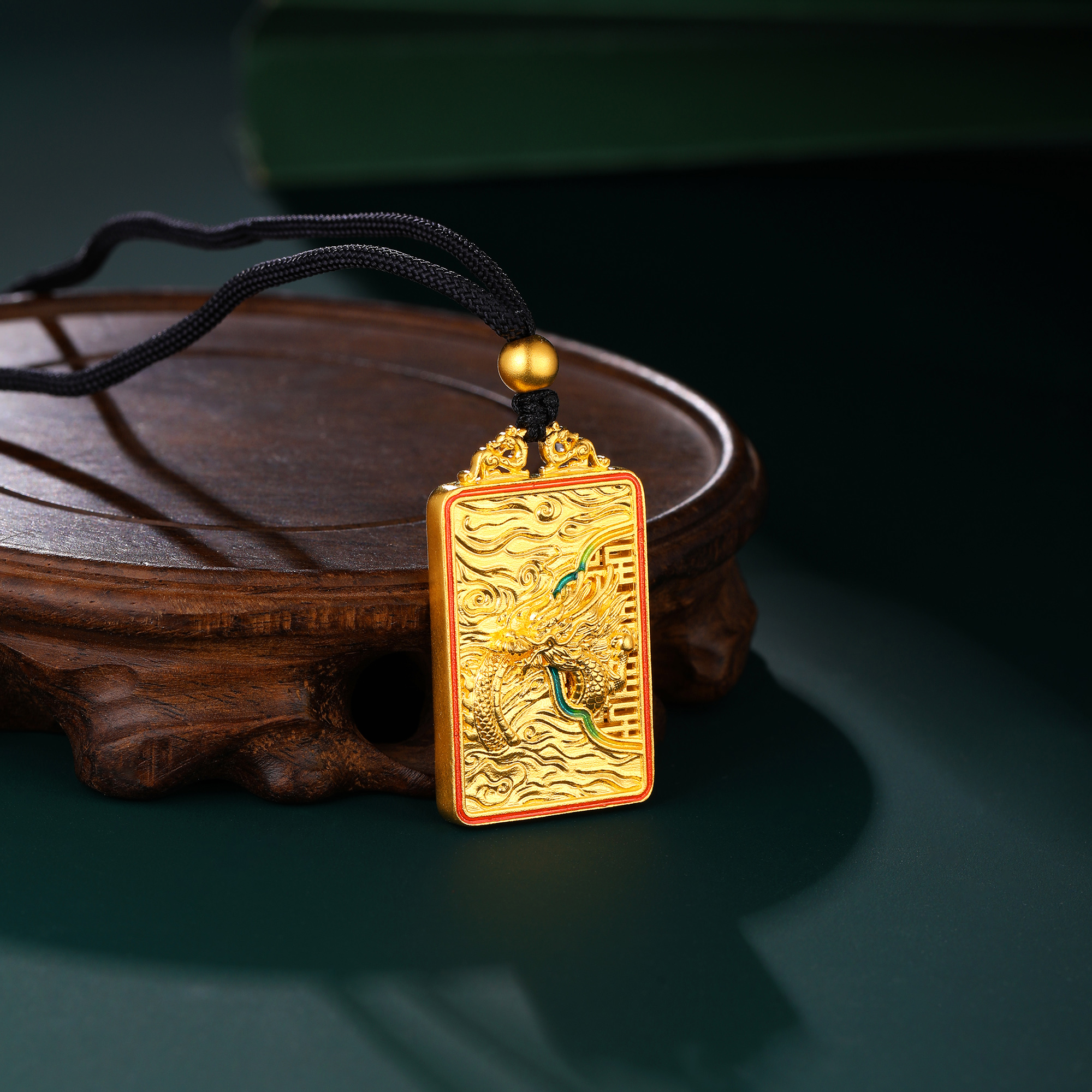 古法经典护佑吉庆龙吟鎏彩方牌项链