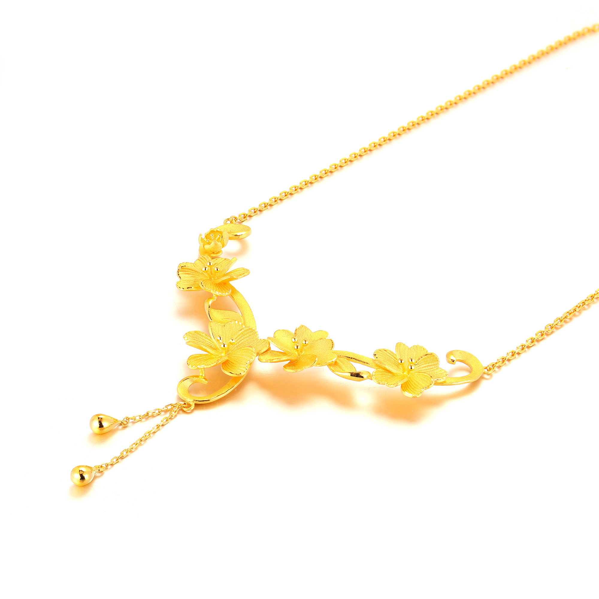 足金精品浪漫婚庆花丝蝴蝶兰拉丝三件套