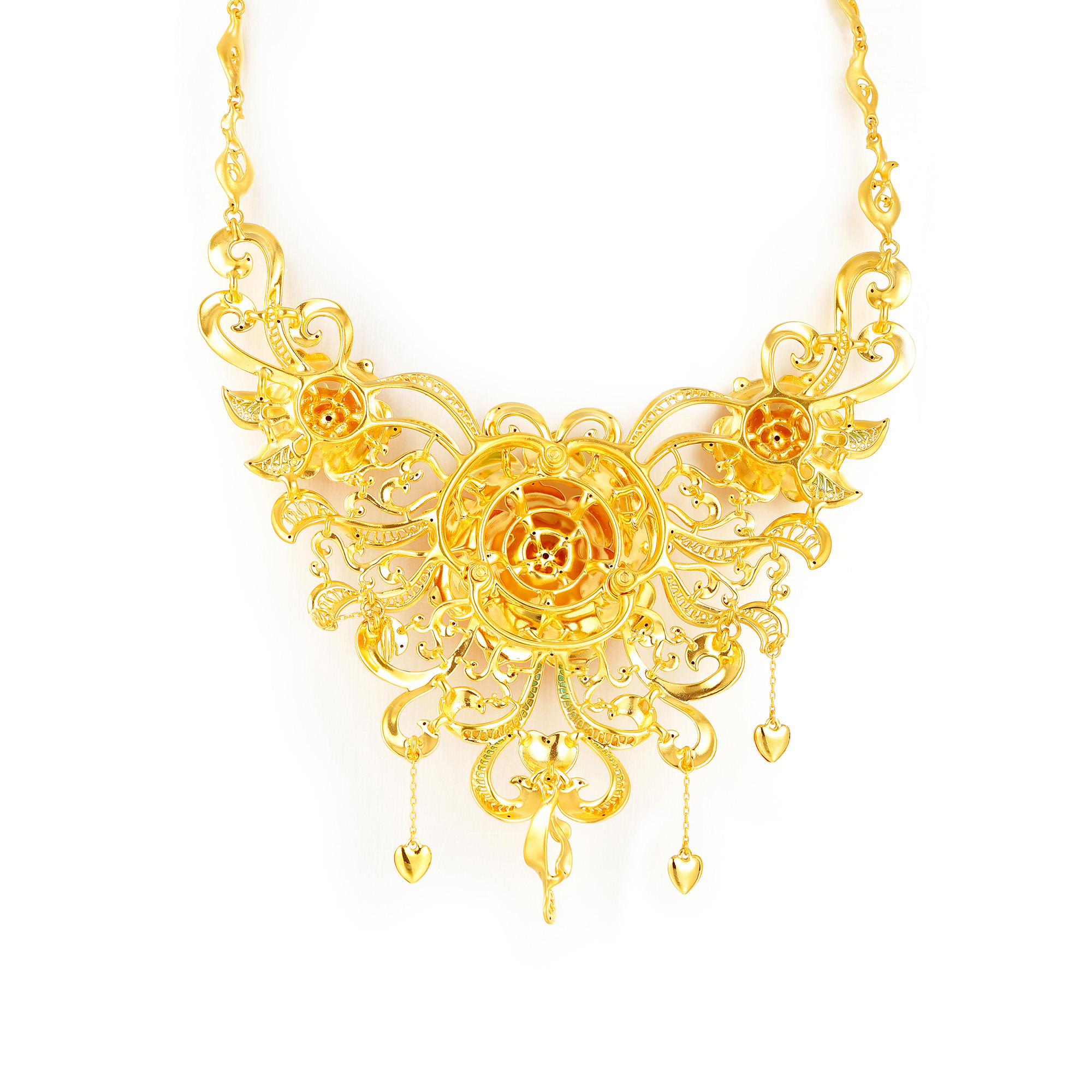 无氰硬金花卉卷草纹爱心流苏婚庆套链