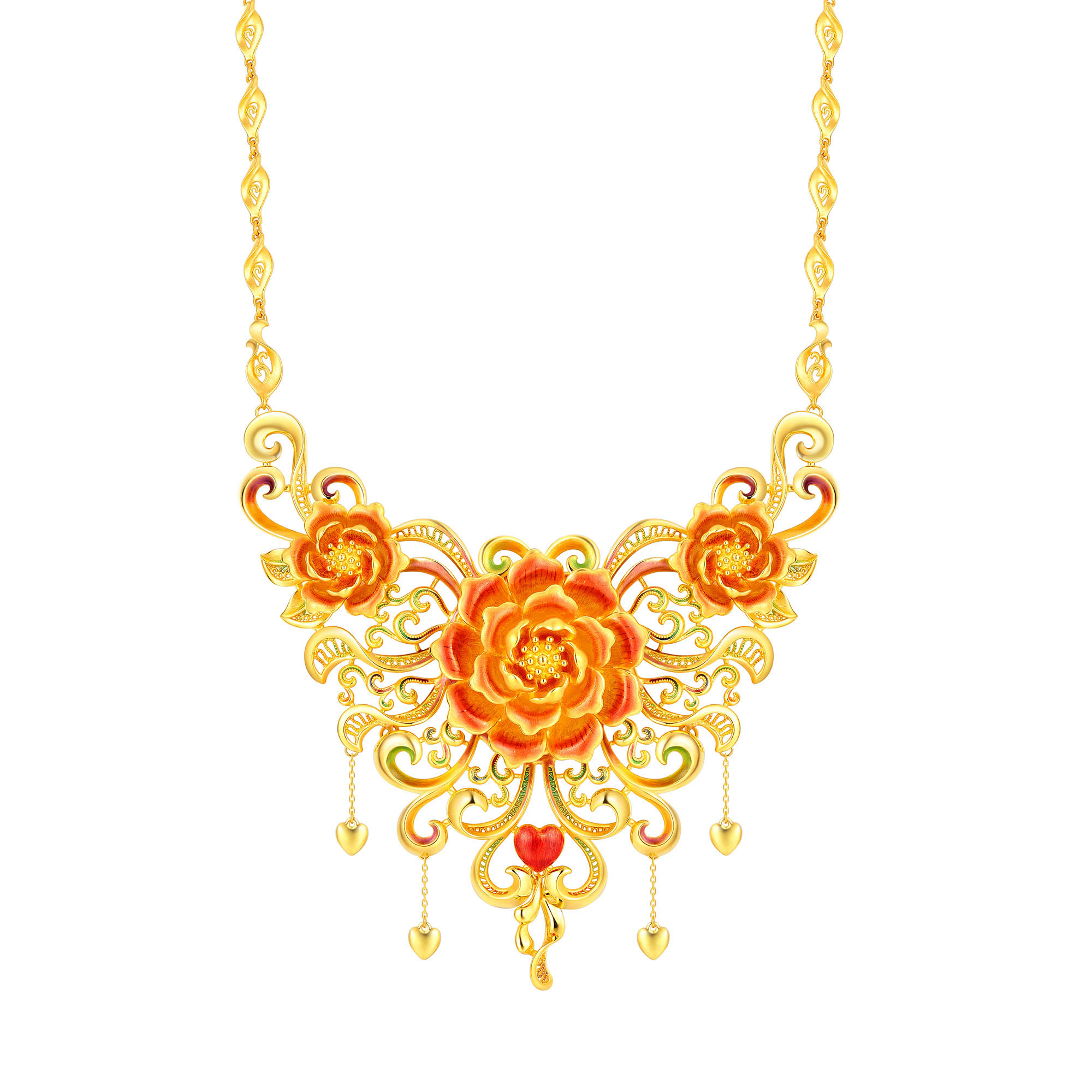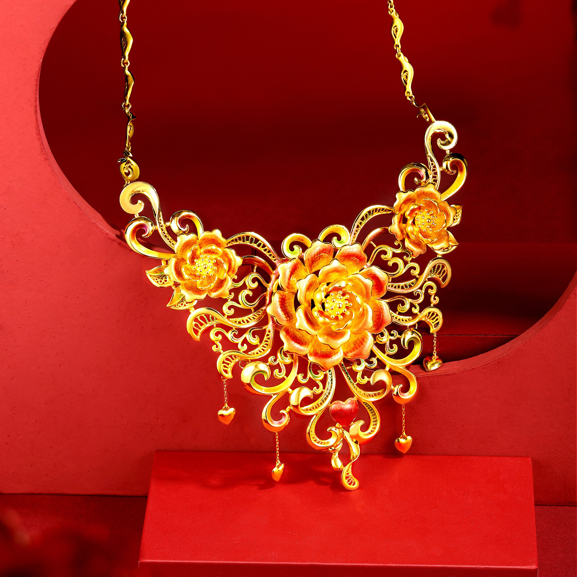 无氰硬金花卉凤凰镂空爱心流苏婚庆套链