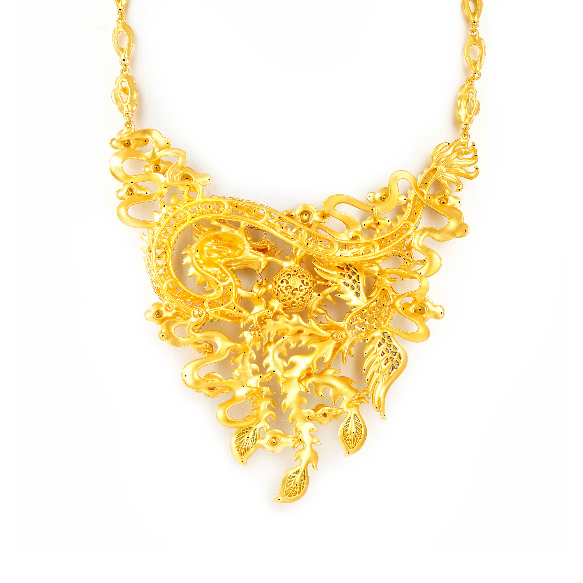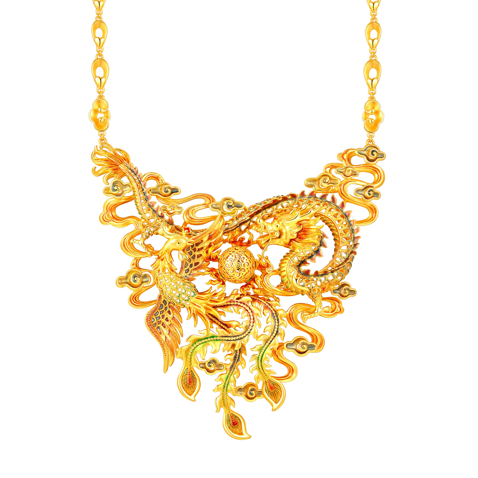 无氰硬金龙凤戏珠套链