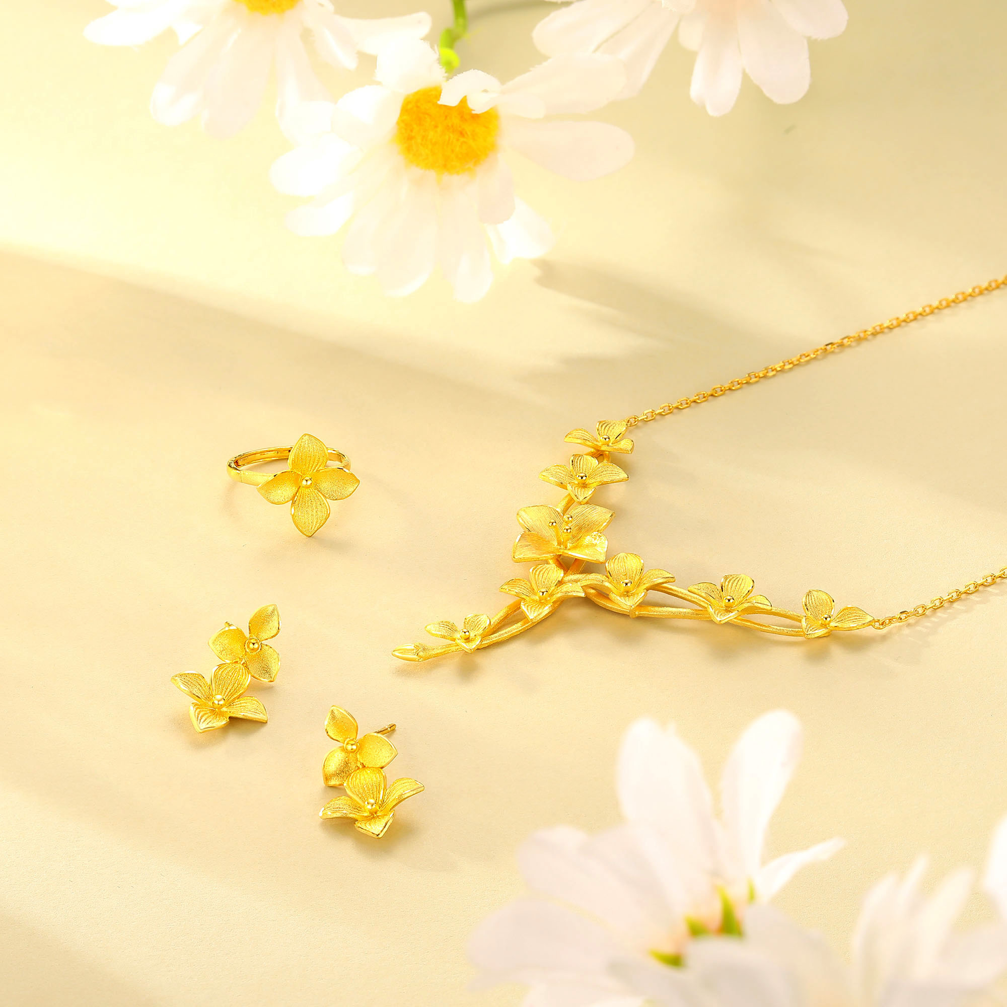 足金精品甜蜜心形丝绒绕线时尚三件套
