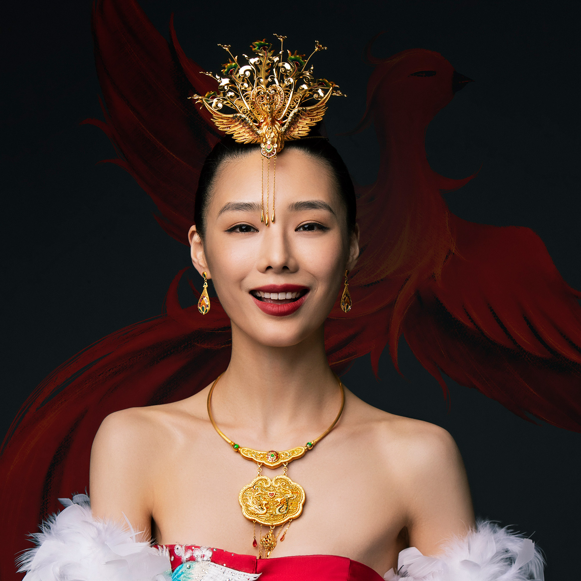 3D硬金螺钿凤凰于飞婚庆凤冠