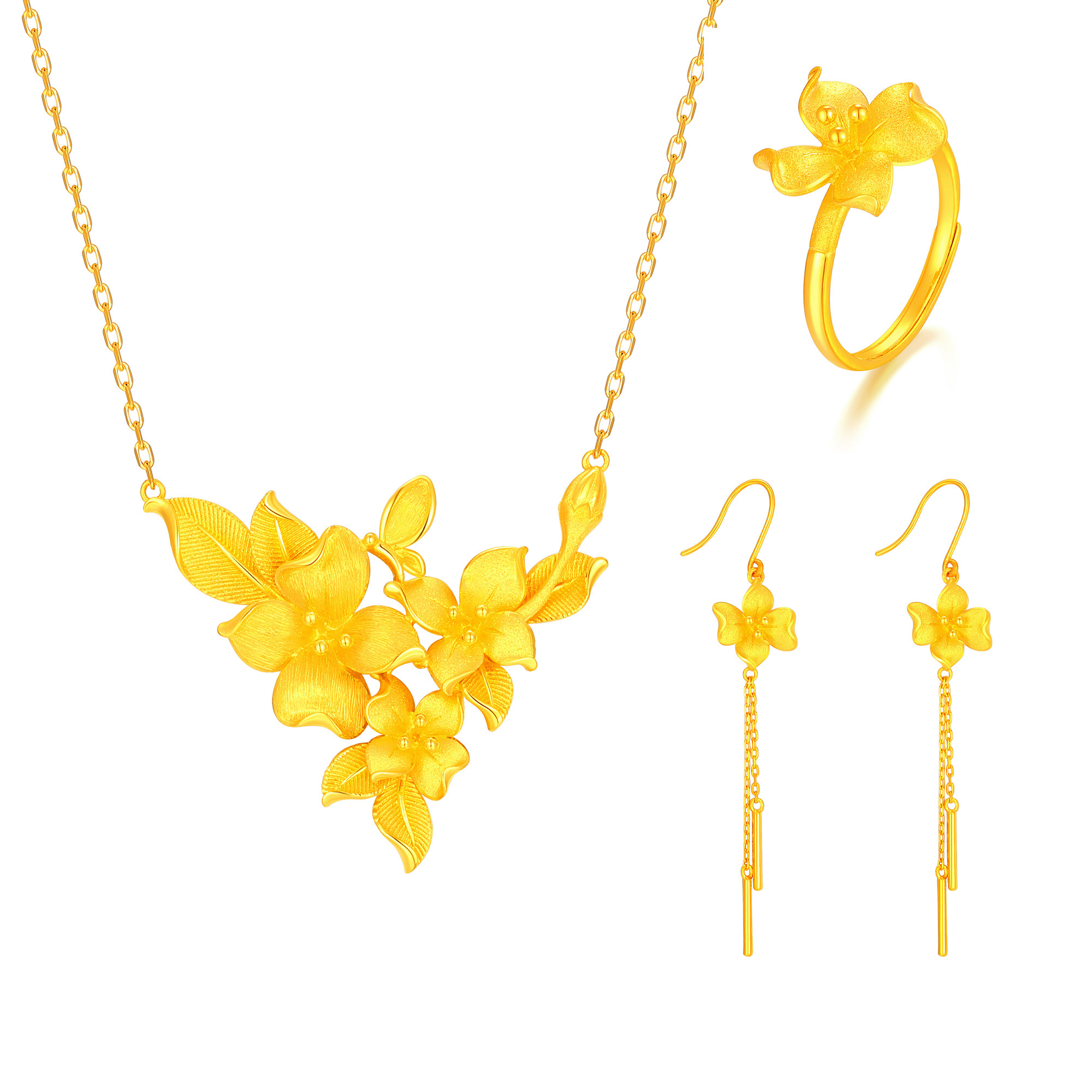 >>足金精品爱和永恒浪漫花卉套装