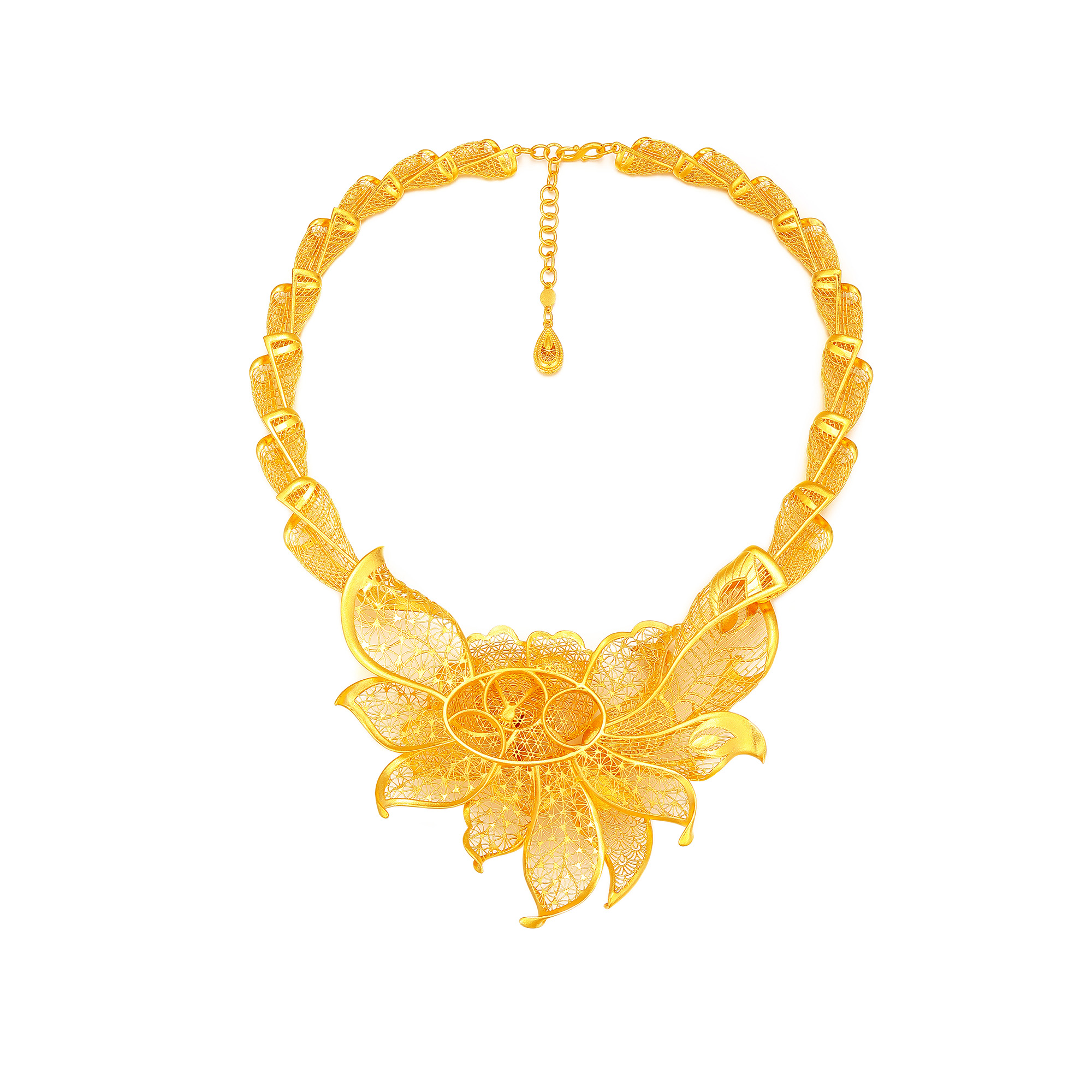古法凤喜牡丹素金版套链