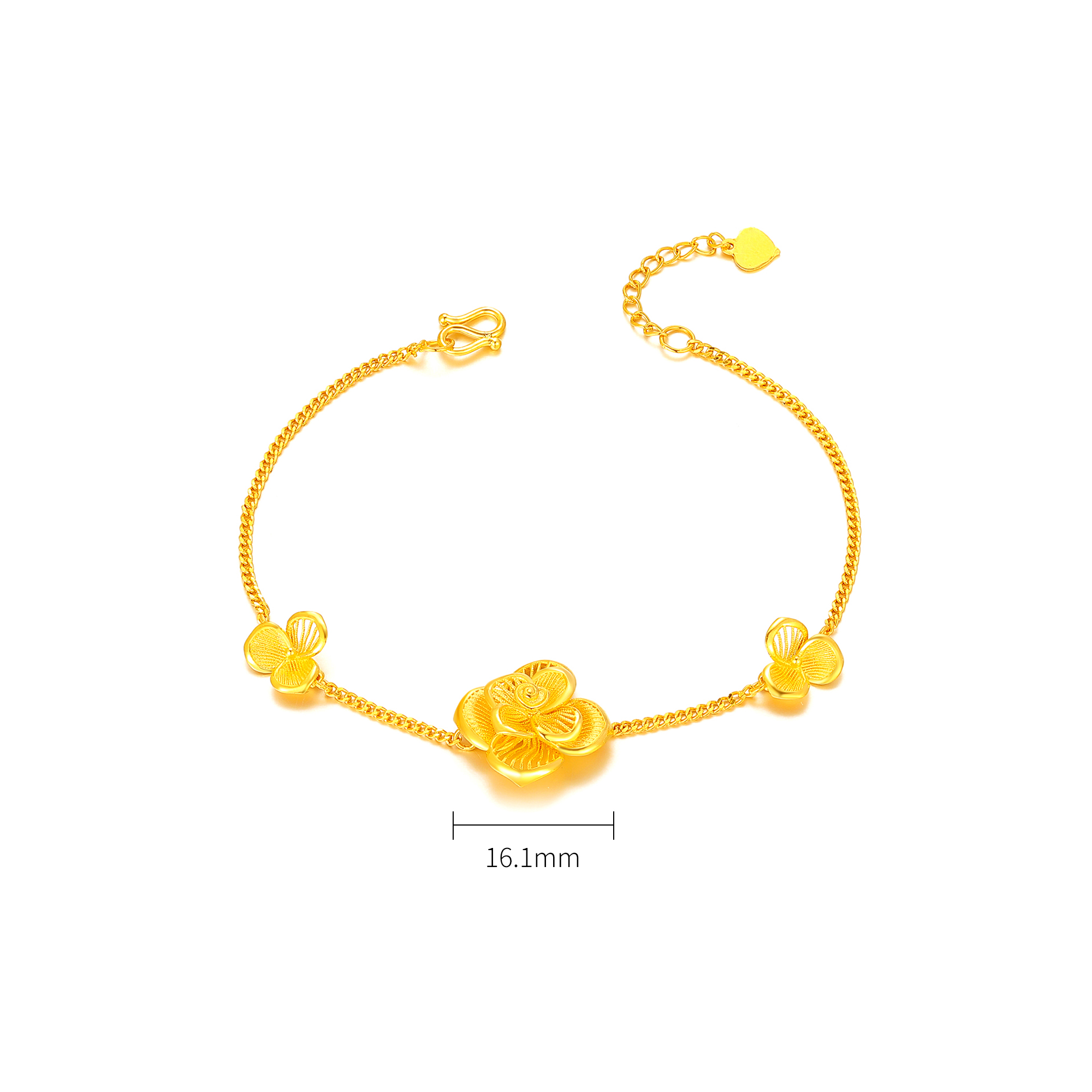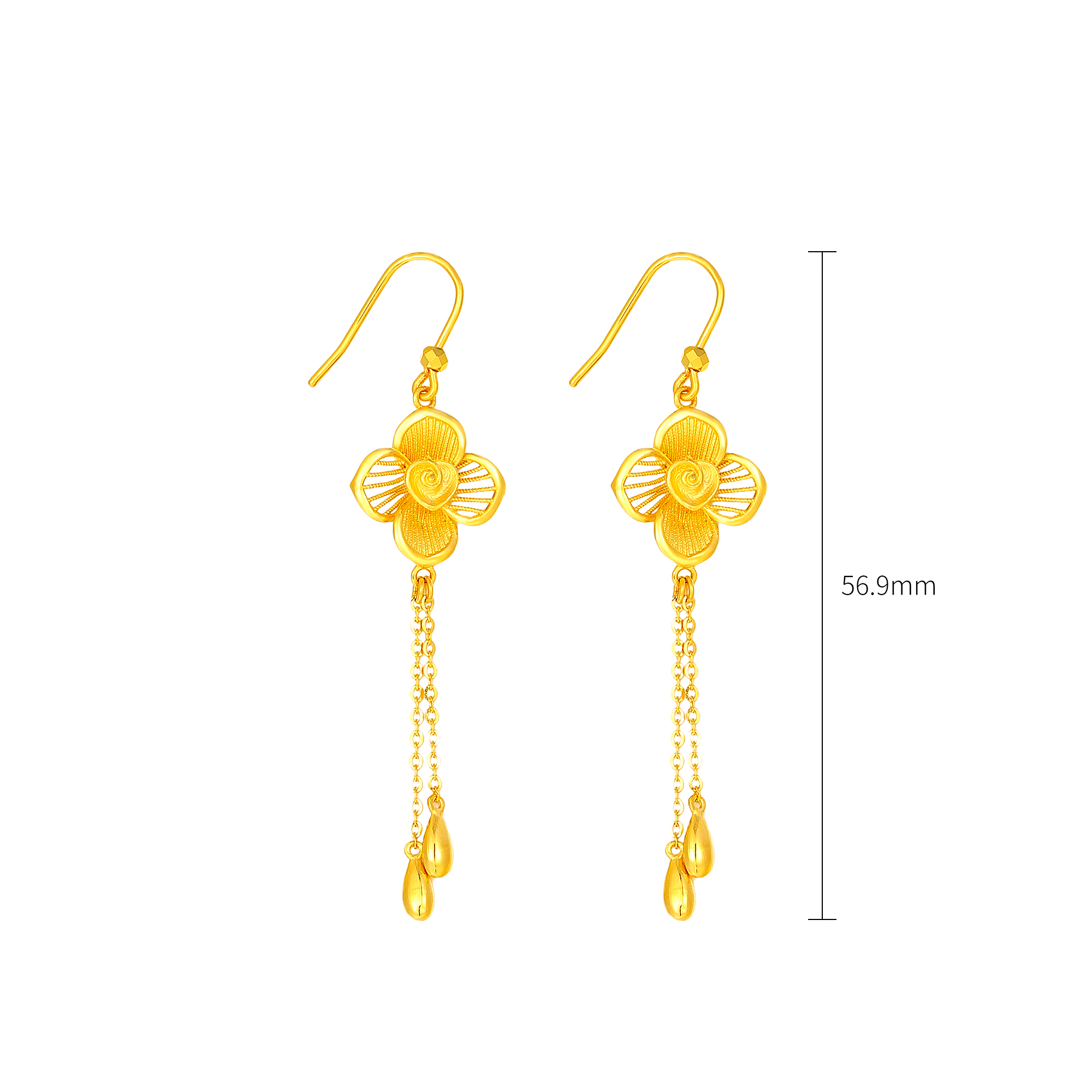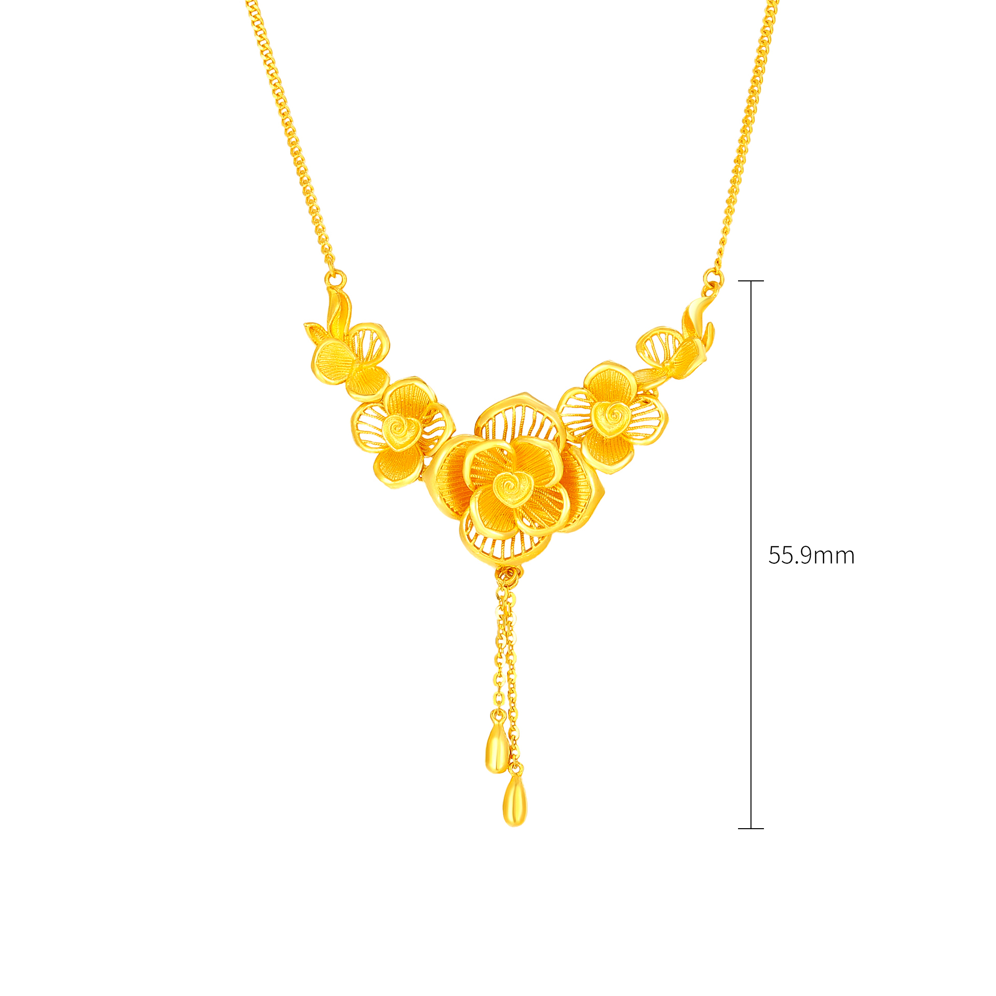 足金精品浪漫婚庆花丝蝴蝶兰拉丝三件套