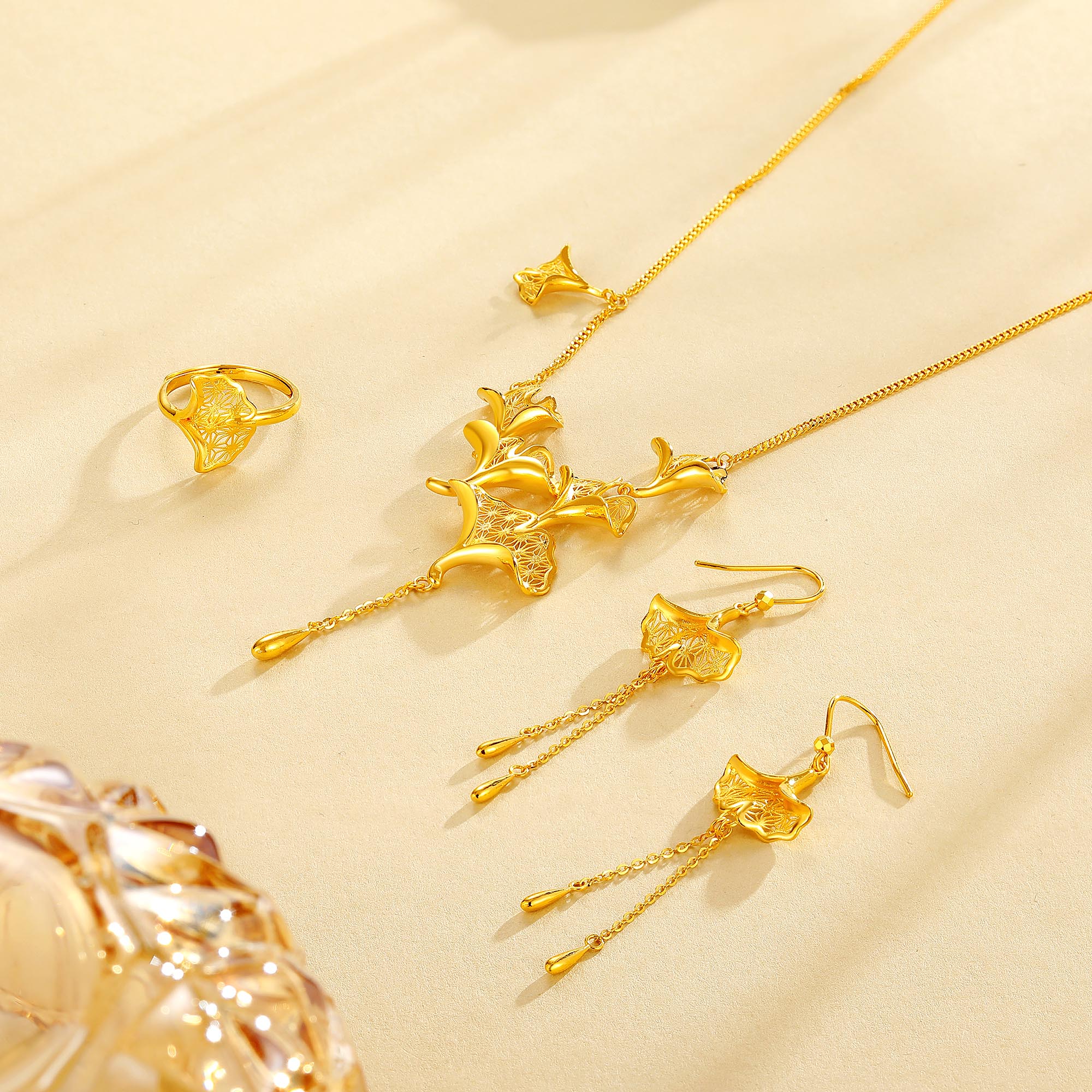 足金精品甜蜜心形丝绒绕线时尚三件套