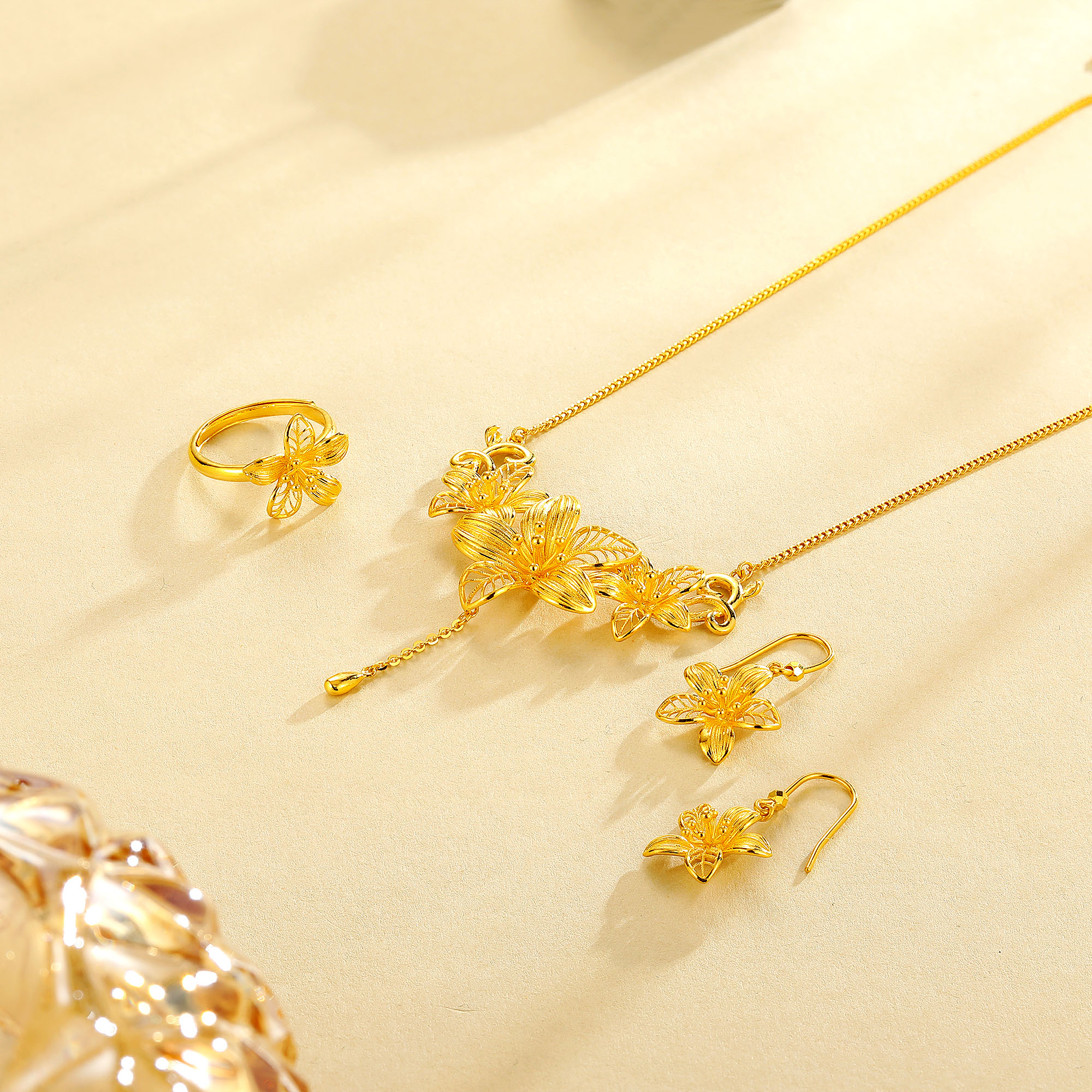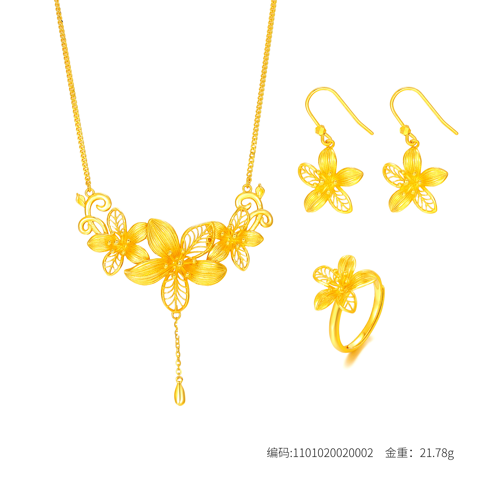 足金精品甜蜜心形丝绒绕线时尚三件套