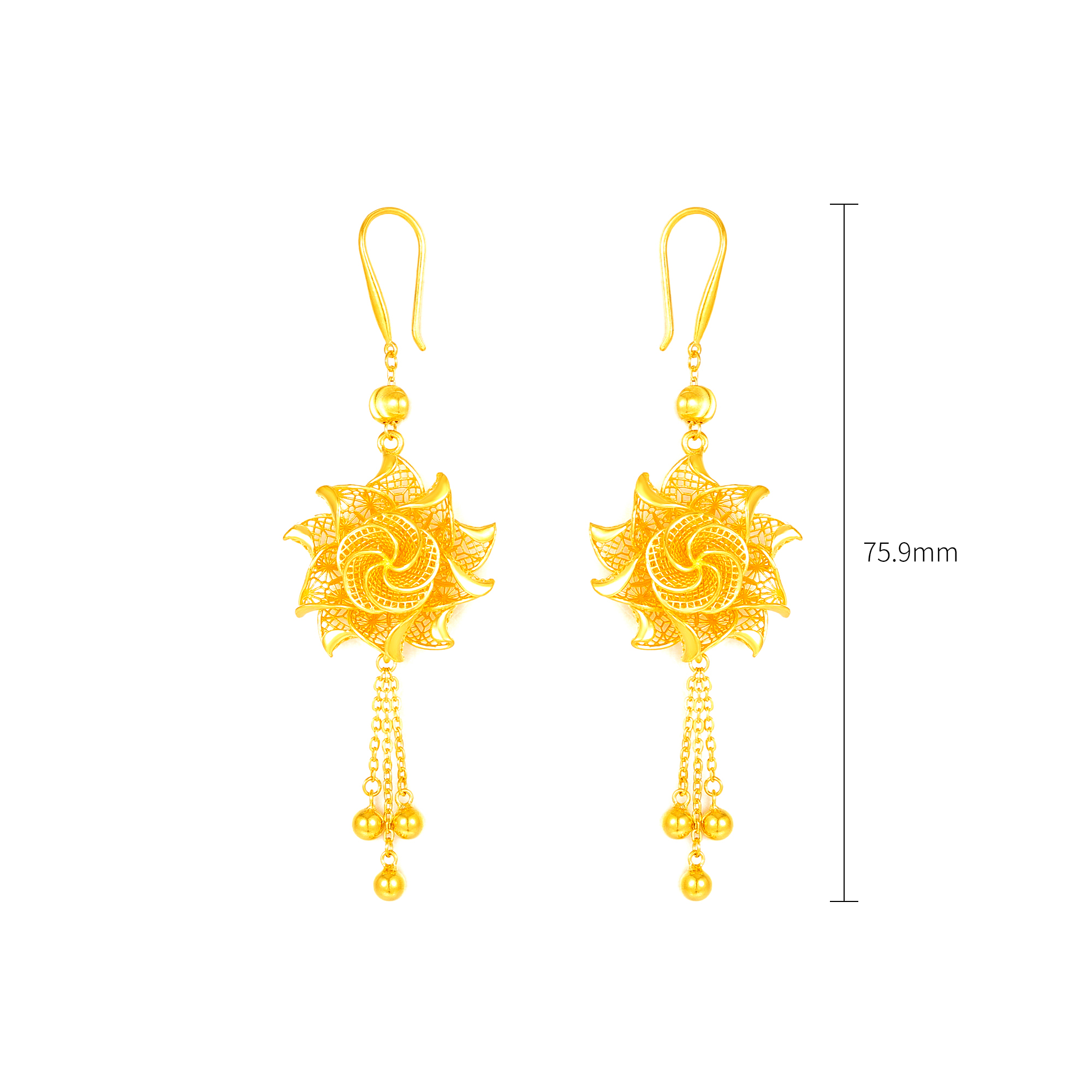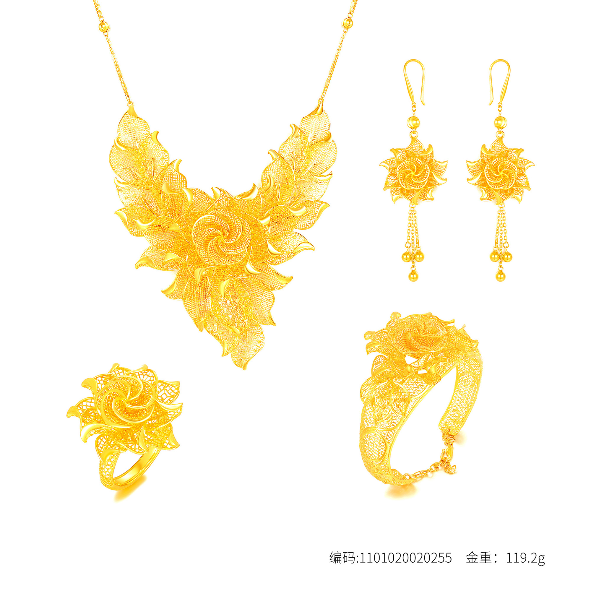 足金精品浪漫婚庆花丝蝴蝶兰拉丝三件套