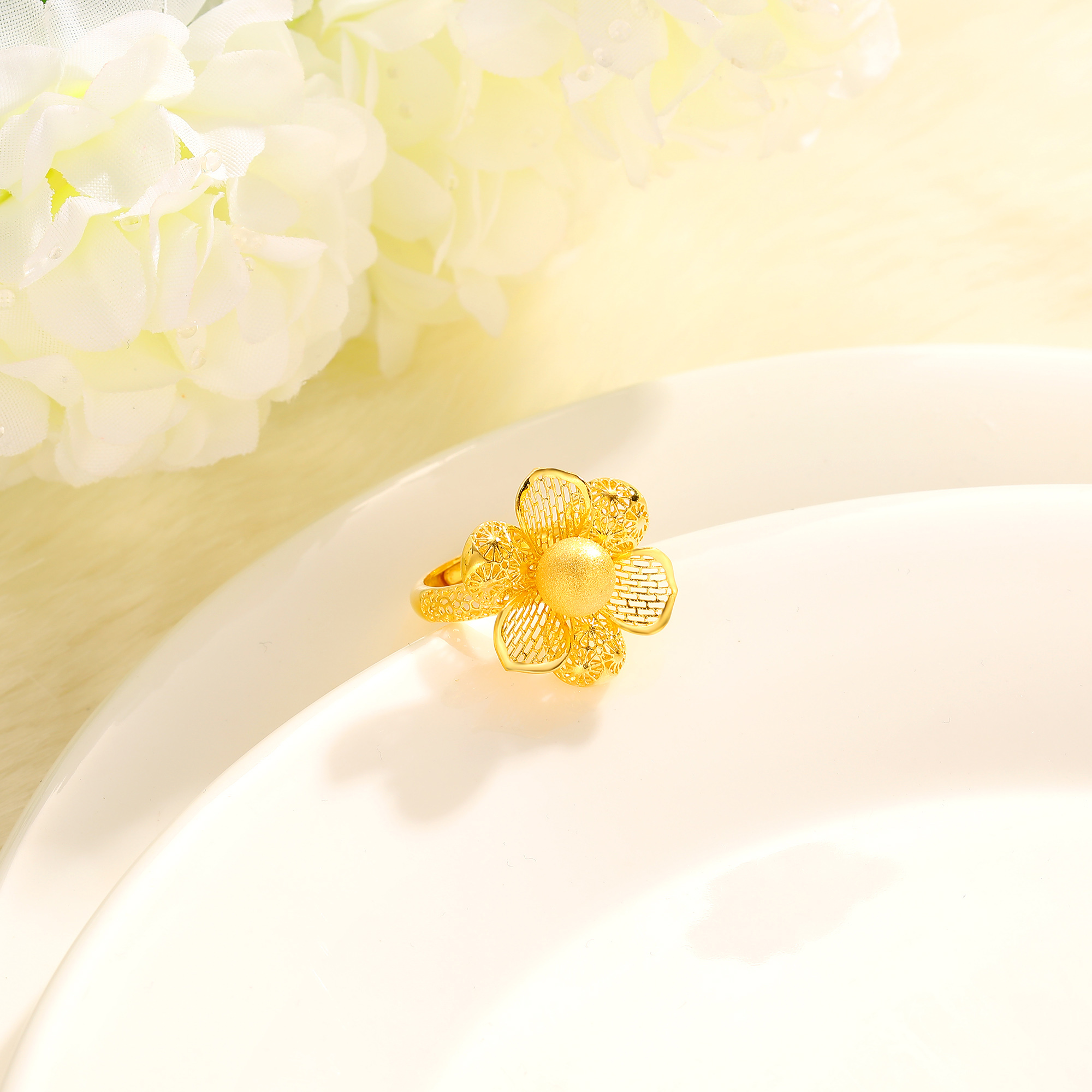 足金精品花形刺绣戒指