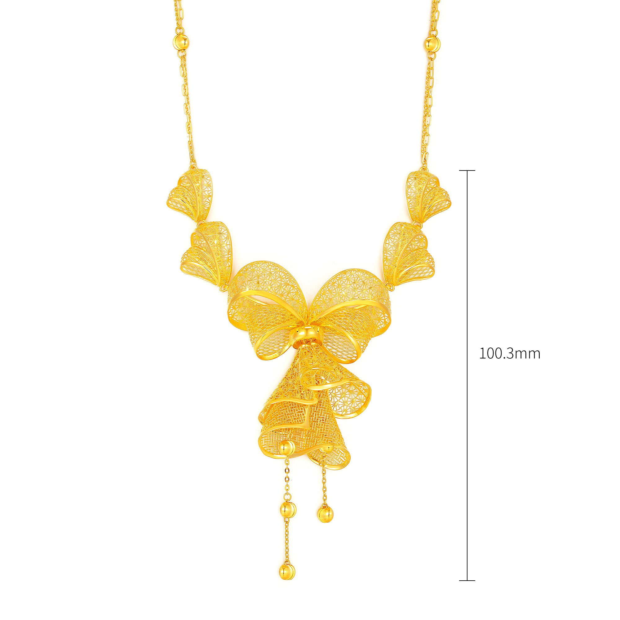 >>足金裙摆蝴蝶结小金珠流苏套装