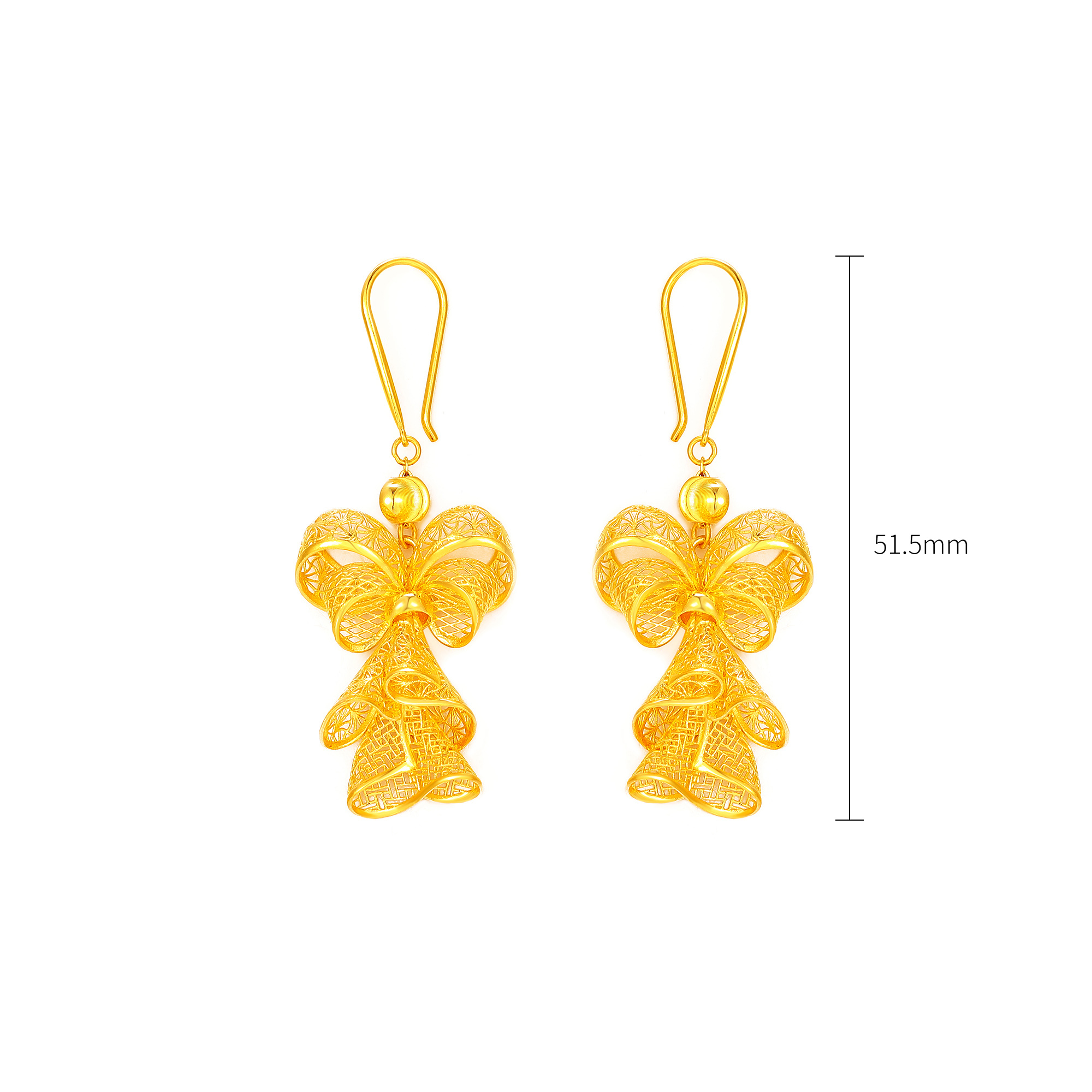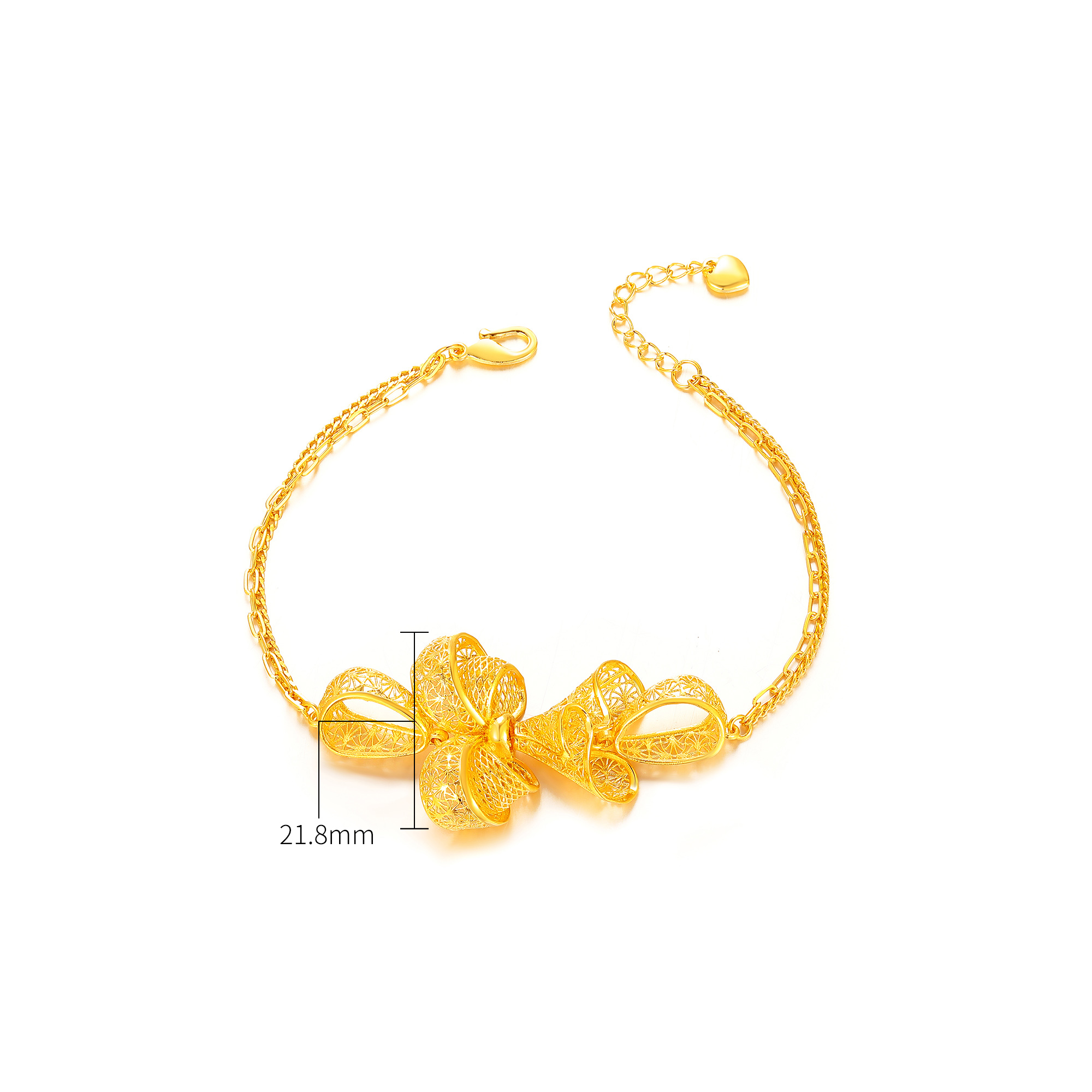足金精品浪漫婚庆花丝蝴蝶兰拉丝三件套