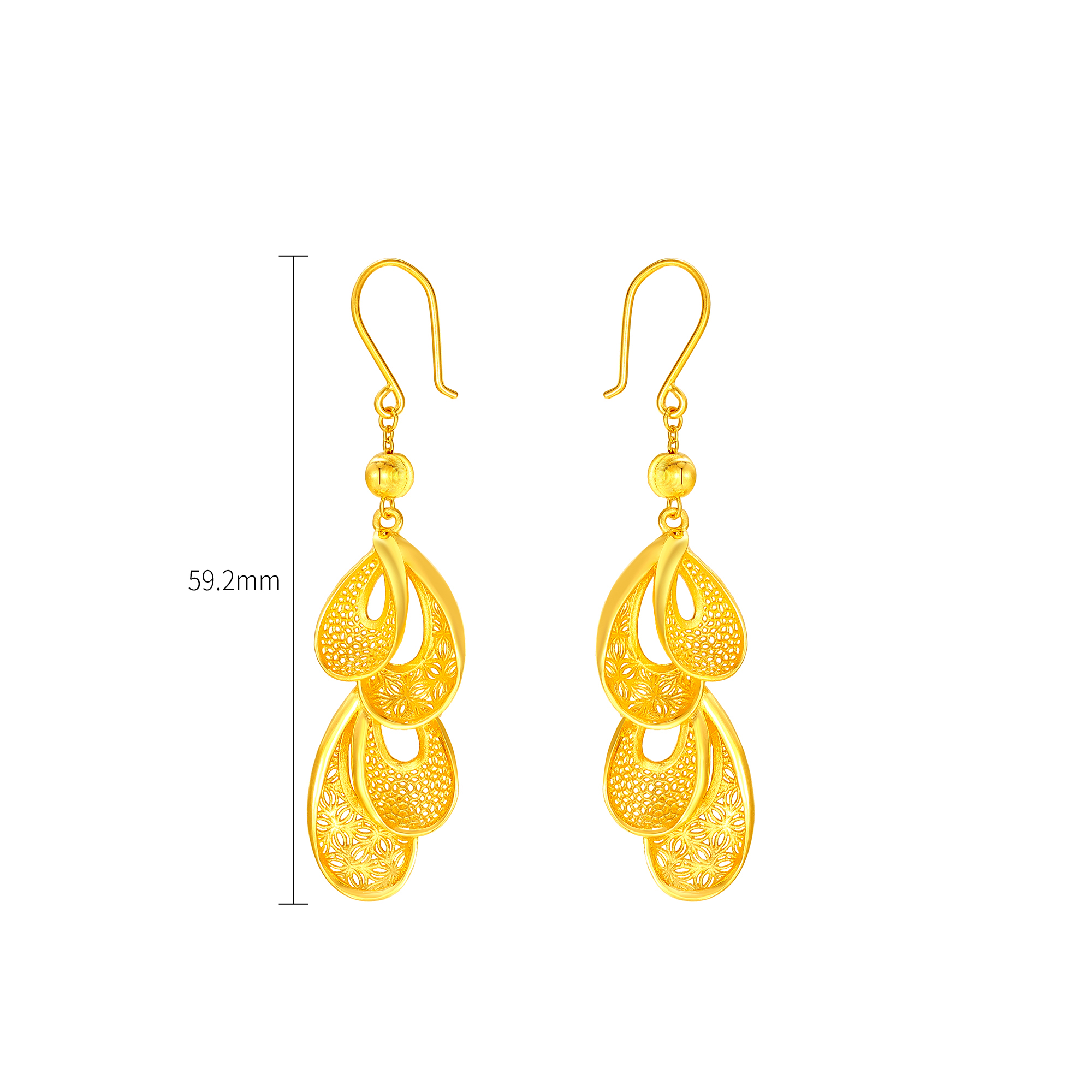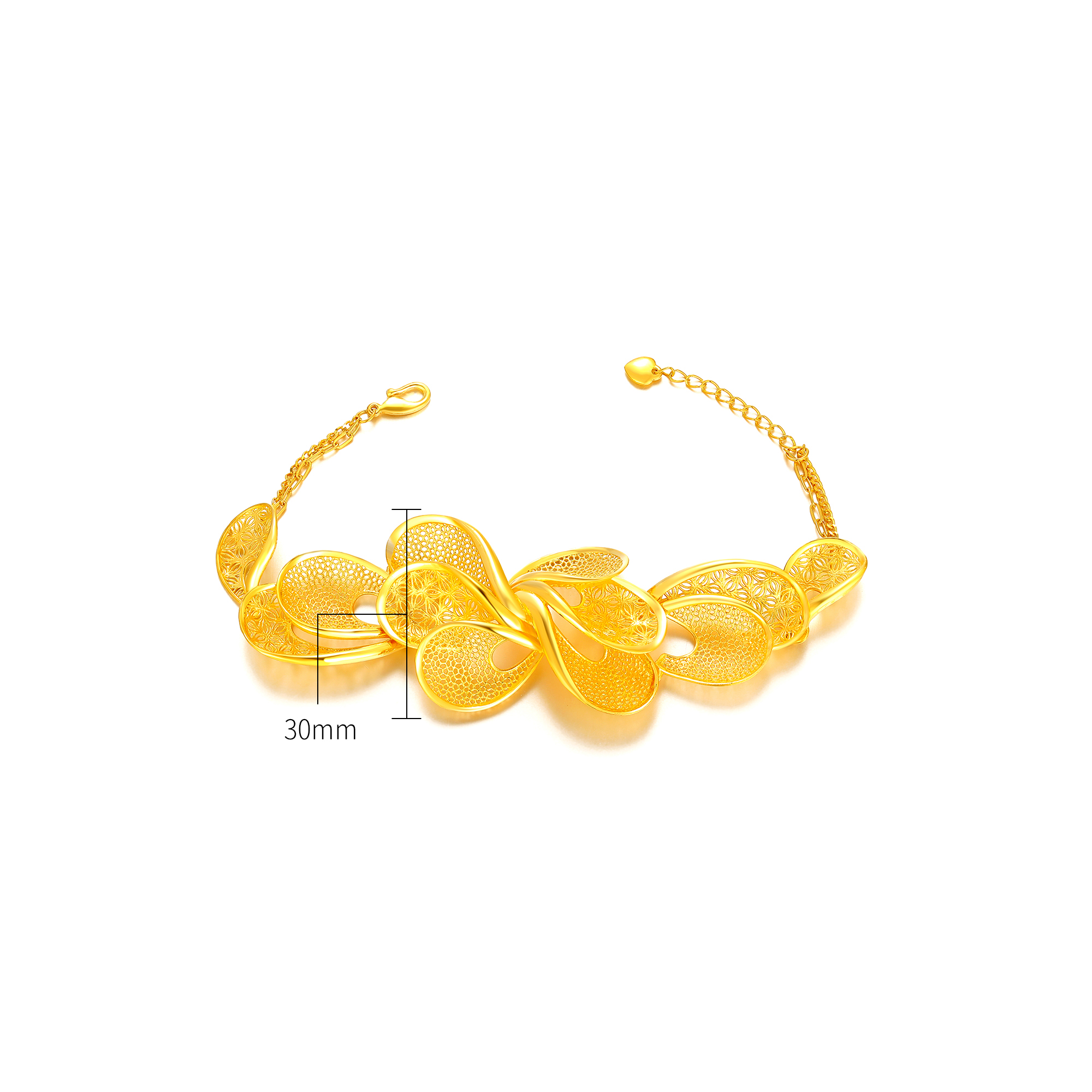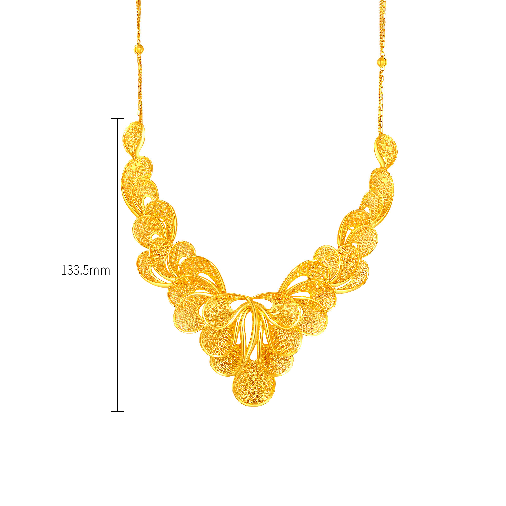 足金精品浪漫婚庆花丝蝴蝶兰拉丝三件套
