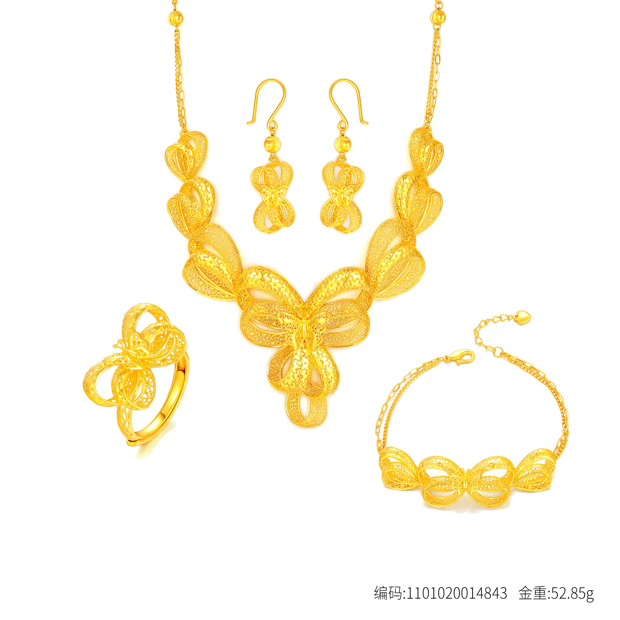 足金花丝优雅蝴蝶结四件套