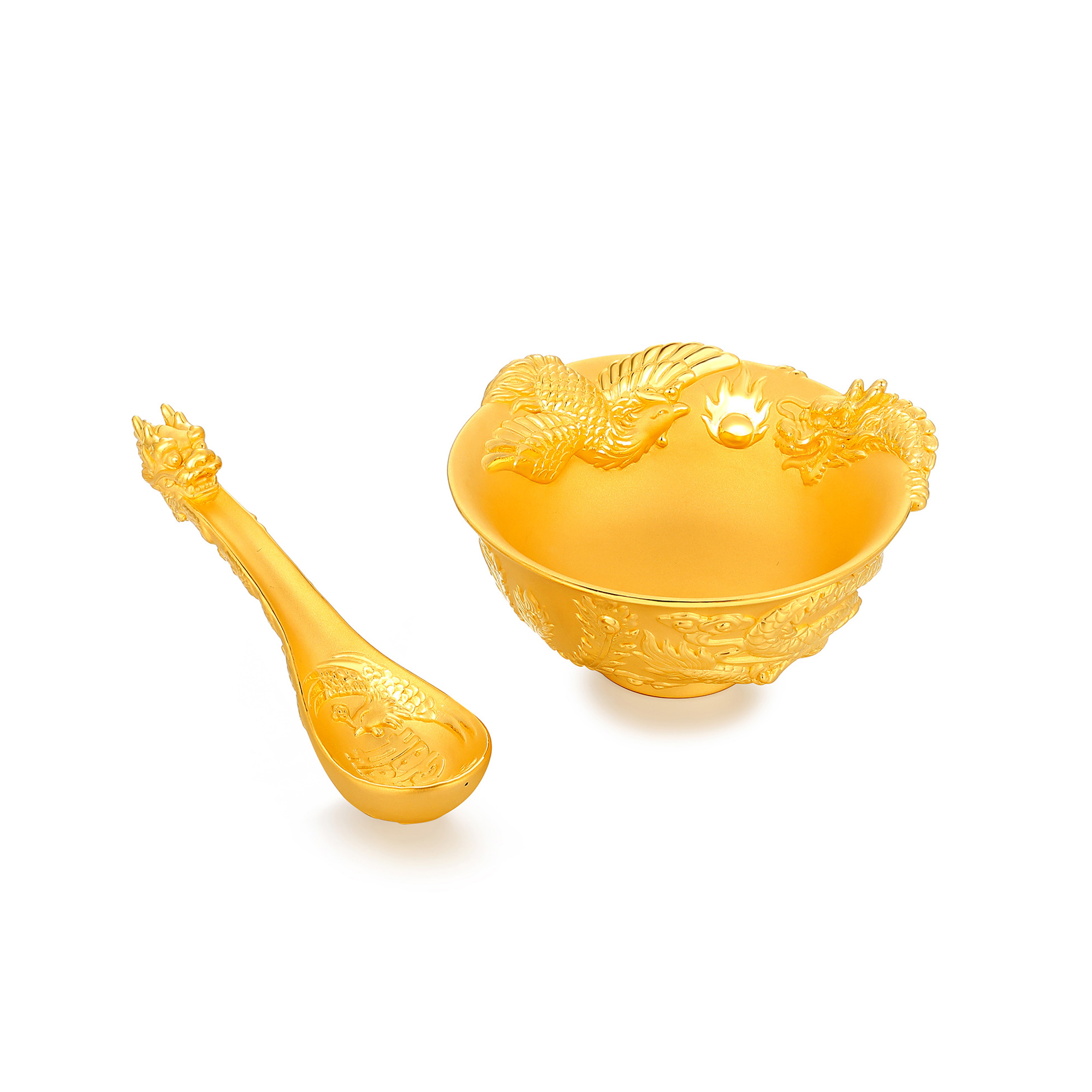 >>3D硬金经典立体龙凤呈祥金碗投资摆件