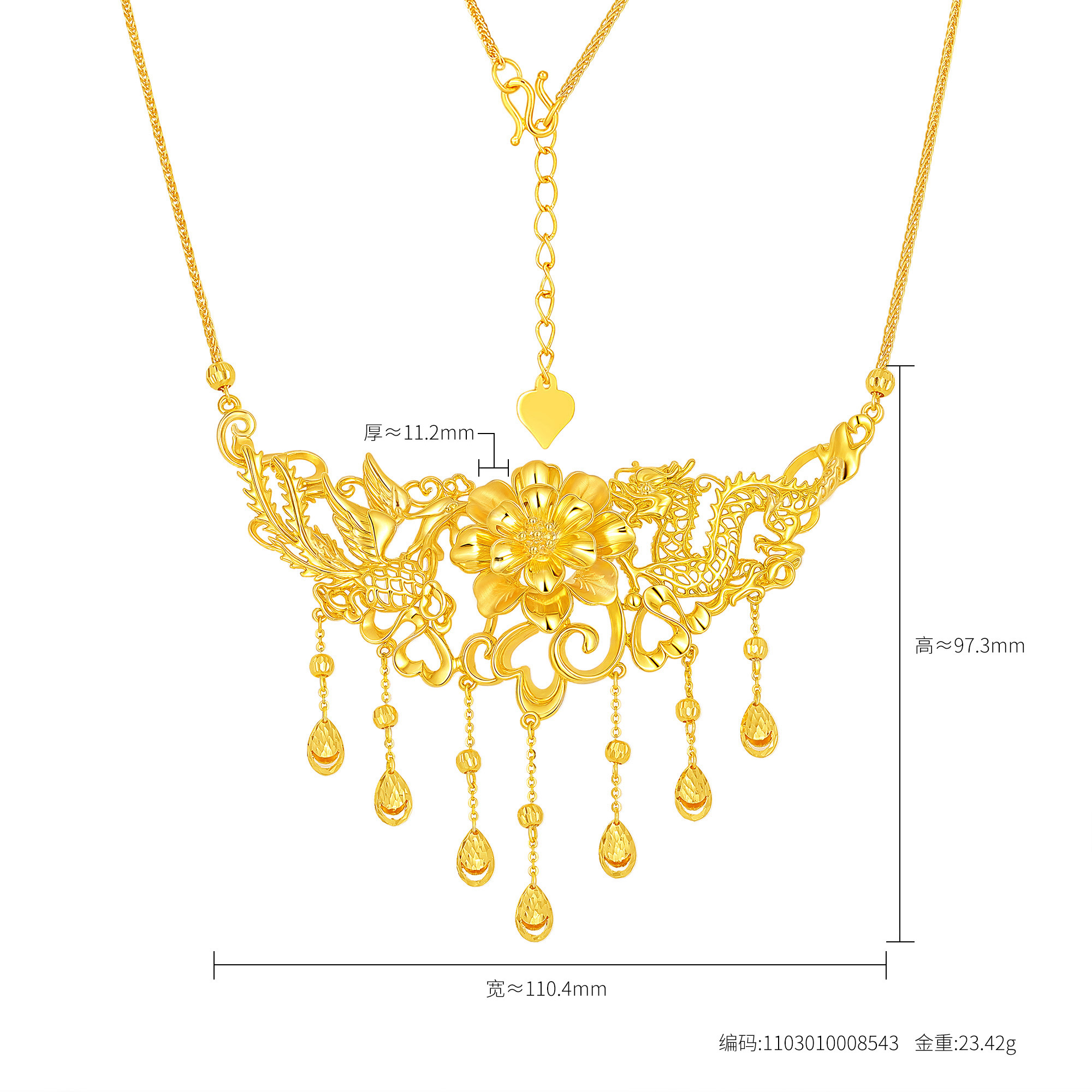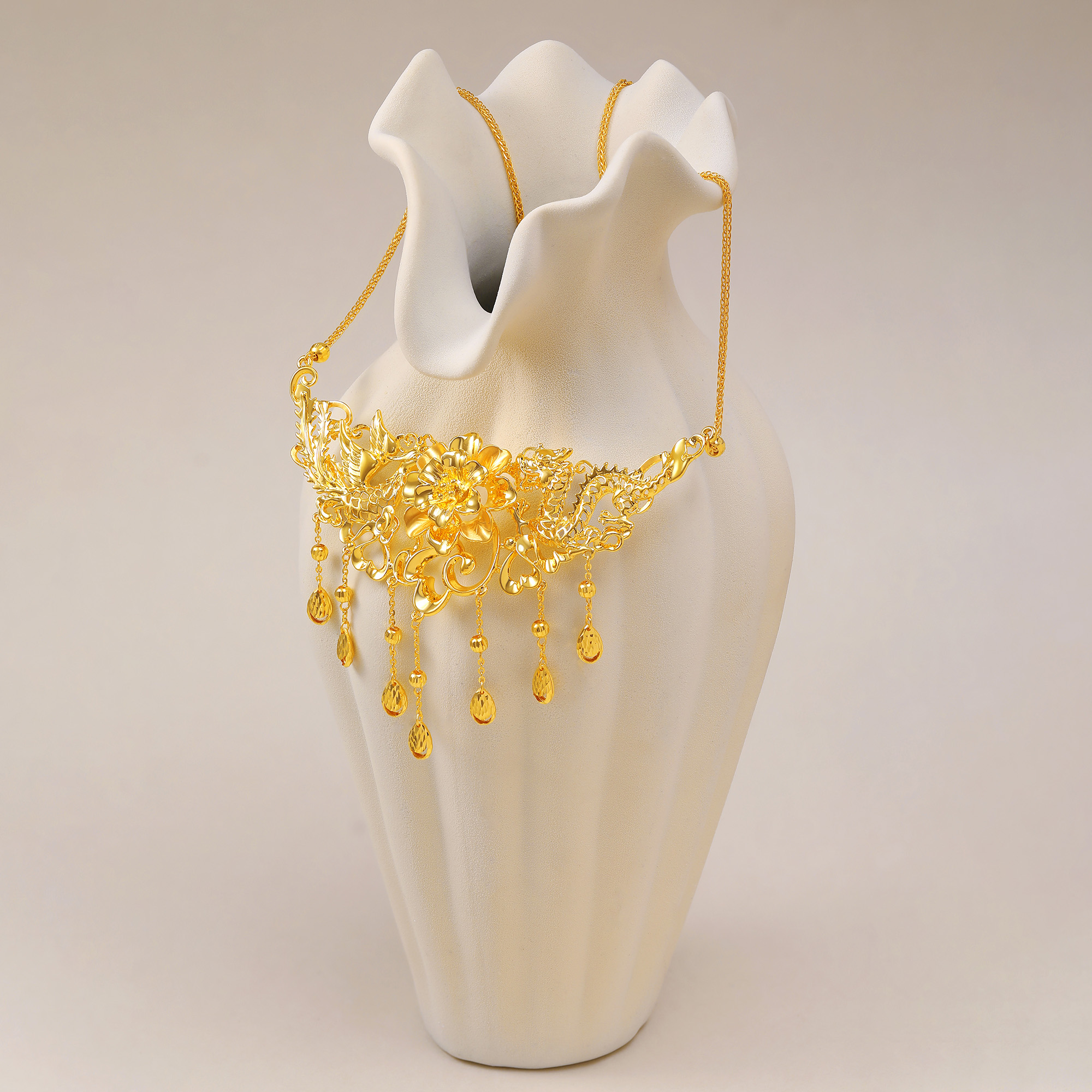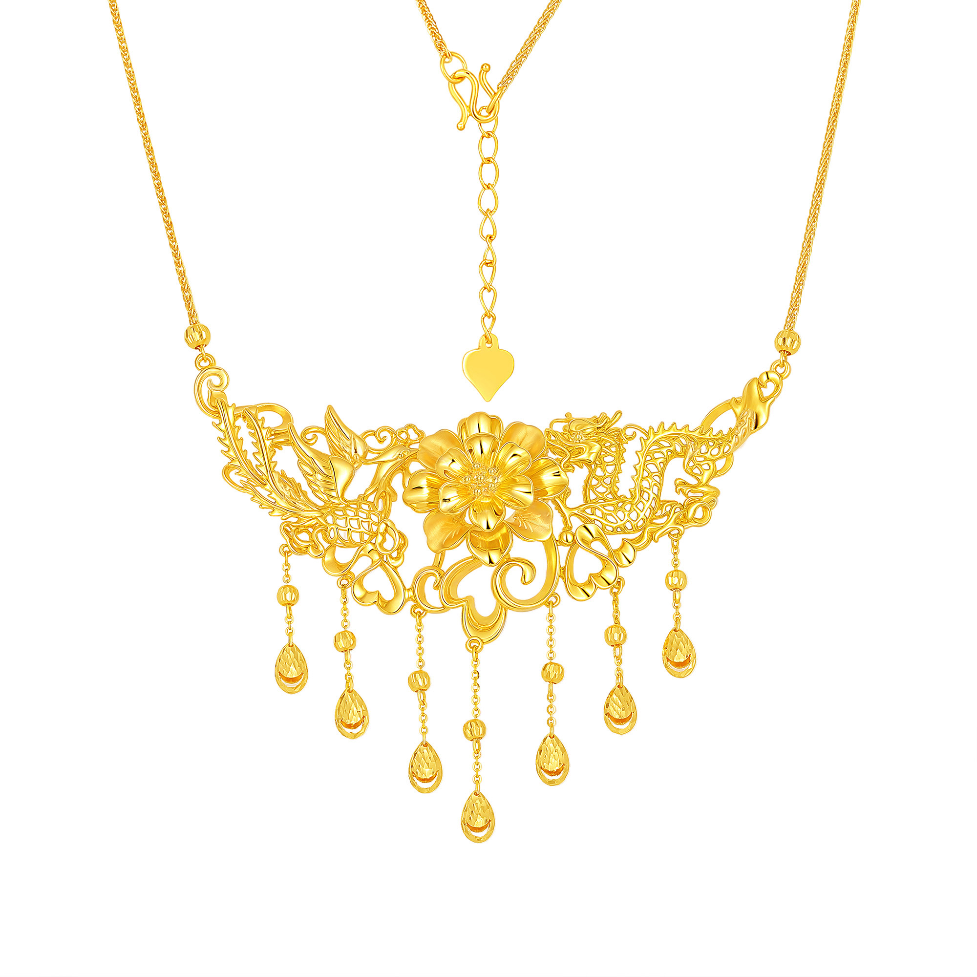 >>无氰硬金龙凤花卉流苏水滴婚庆套链