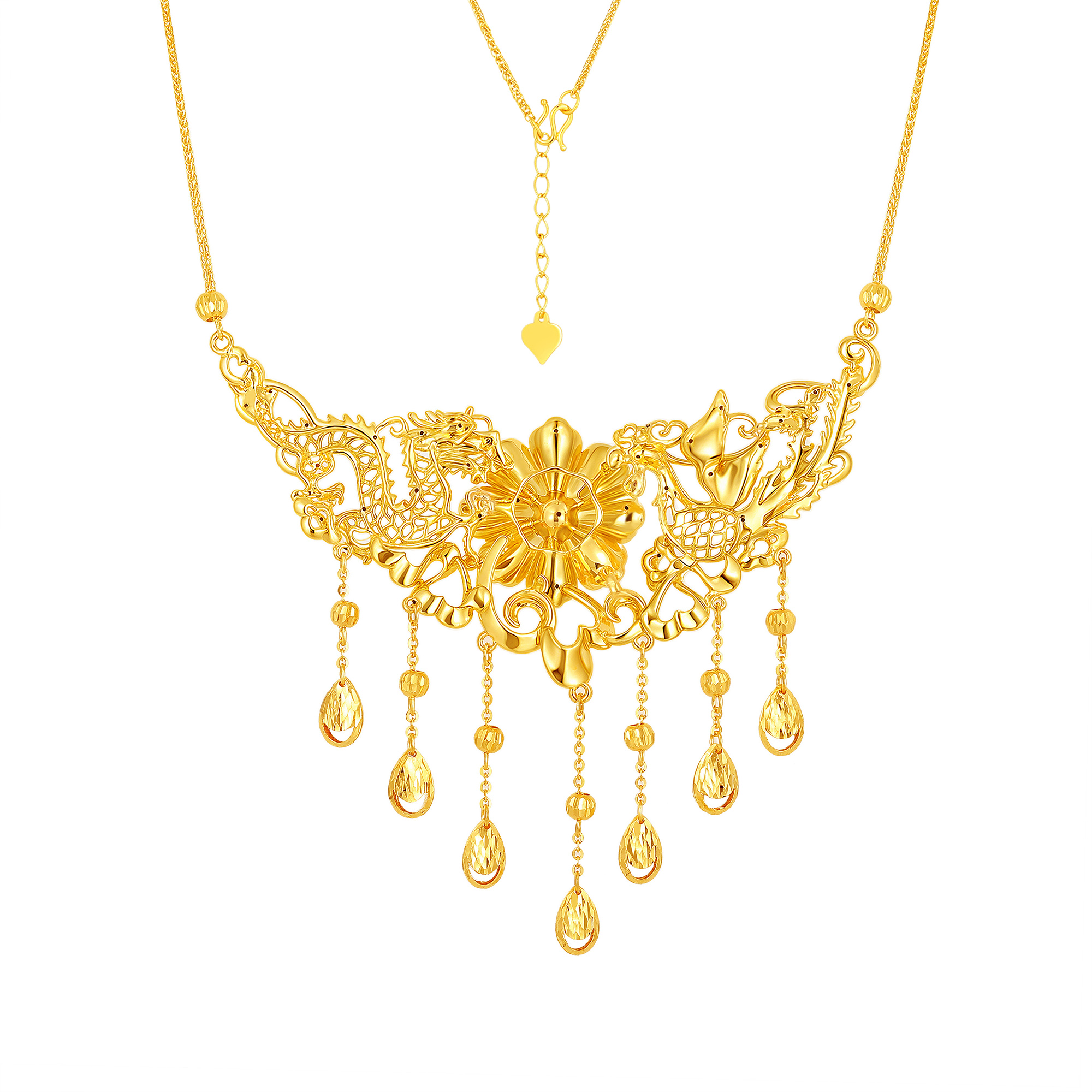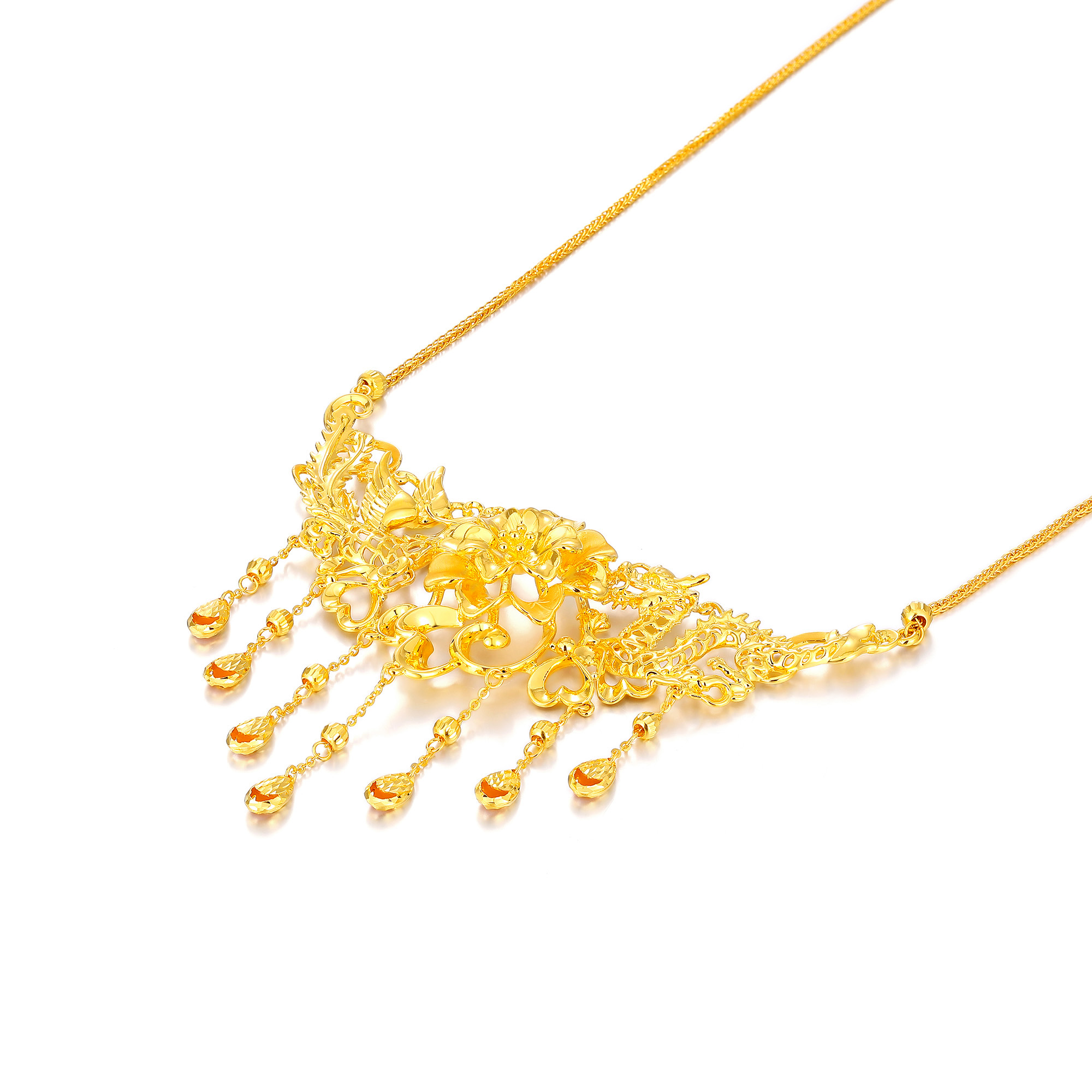 无氰硬金花卉凤凰镂空爱心流苏婚庆套链