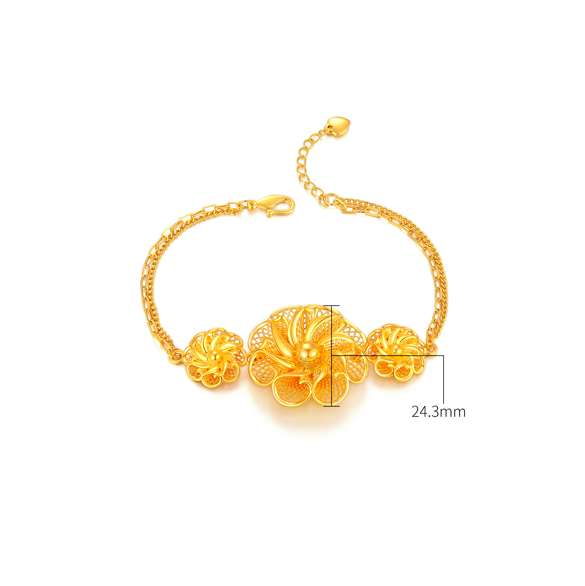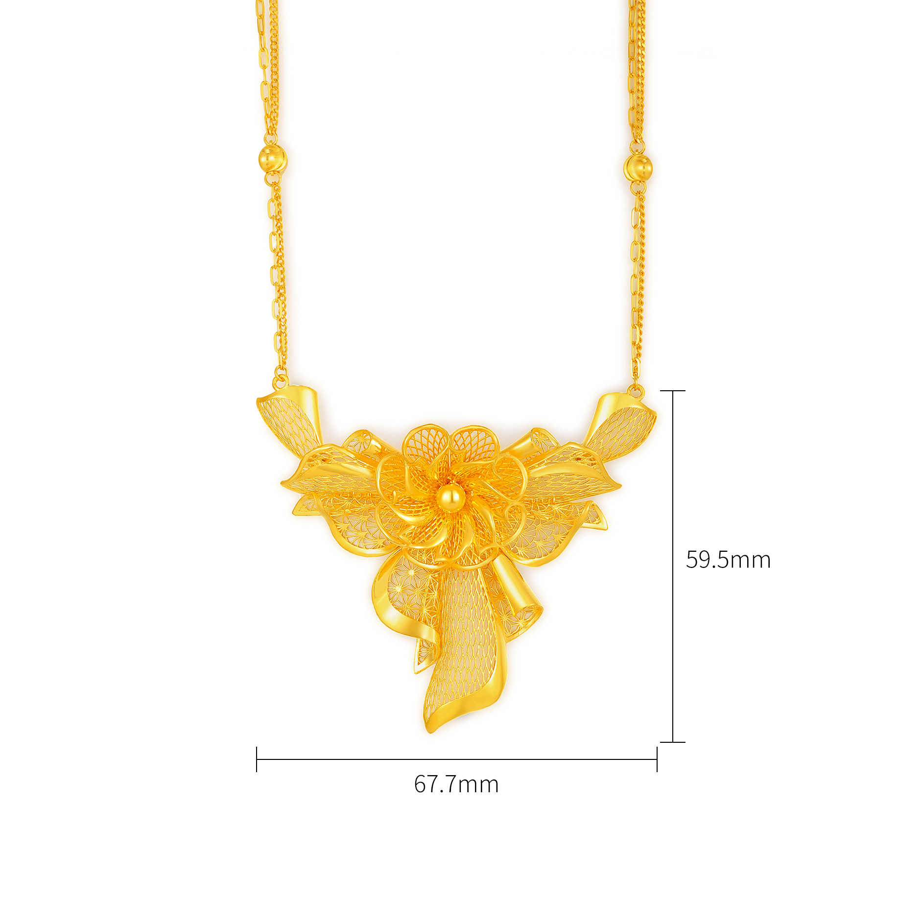 足金精品浪漫婚庆花丝蝴蝶兰拉丝三件套