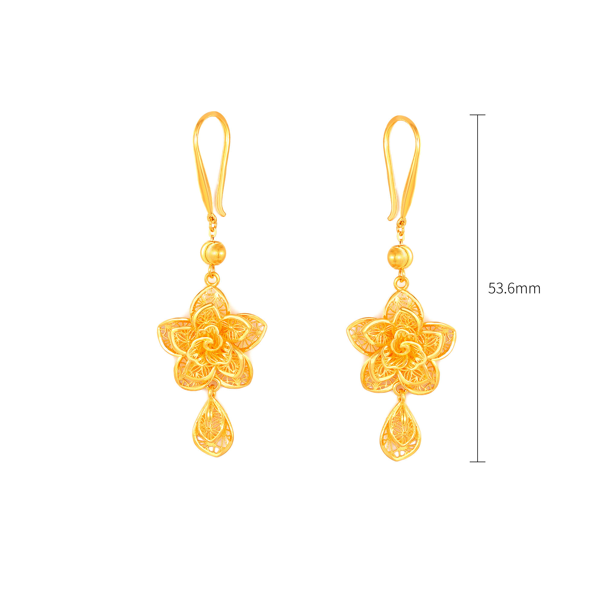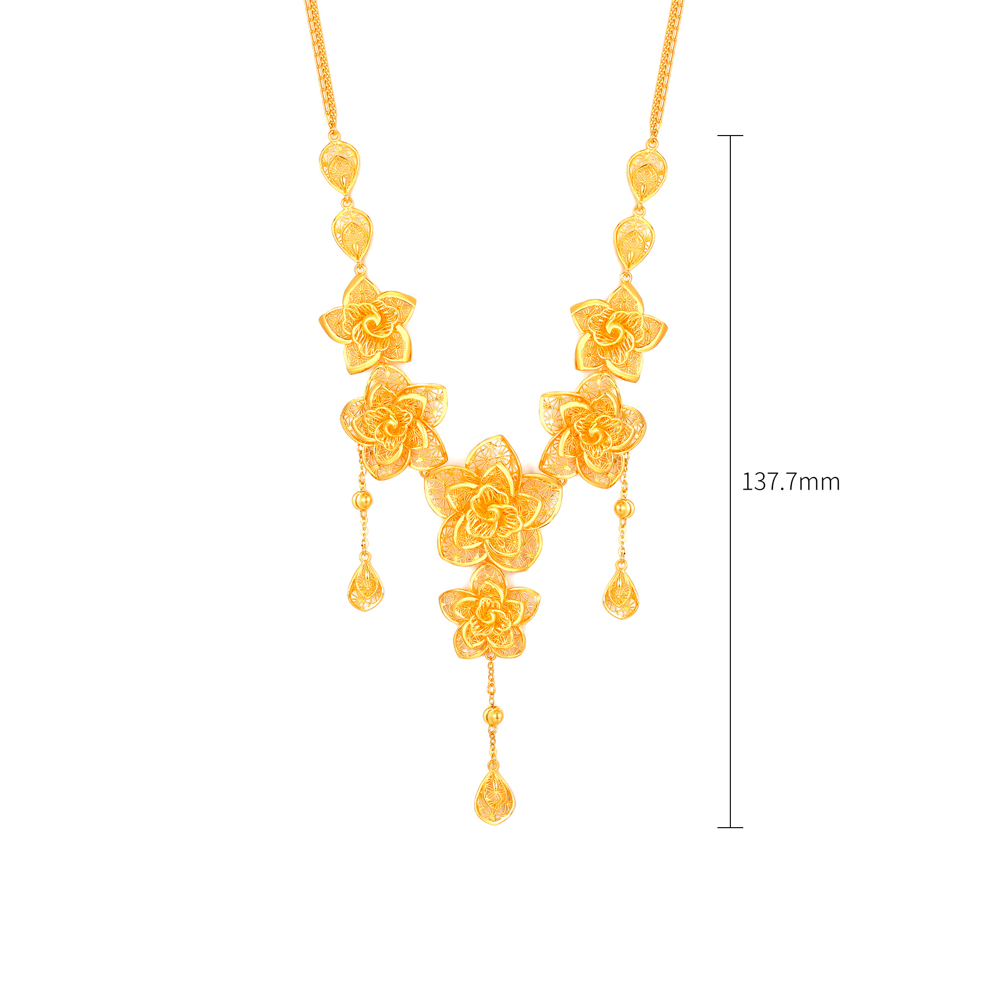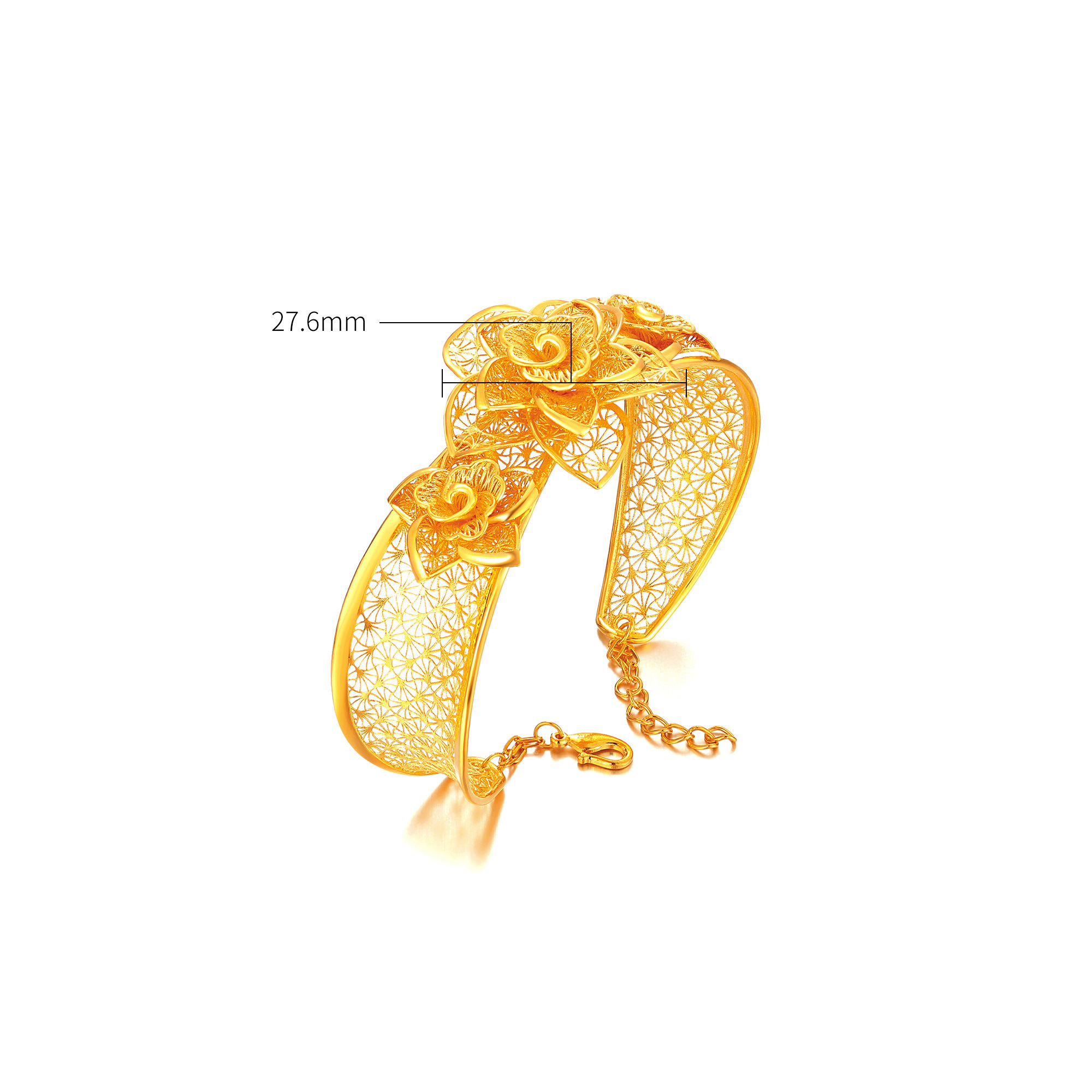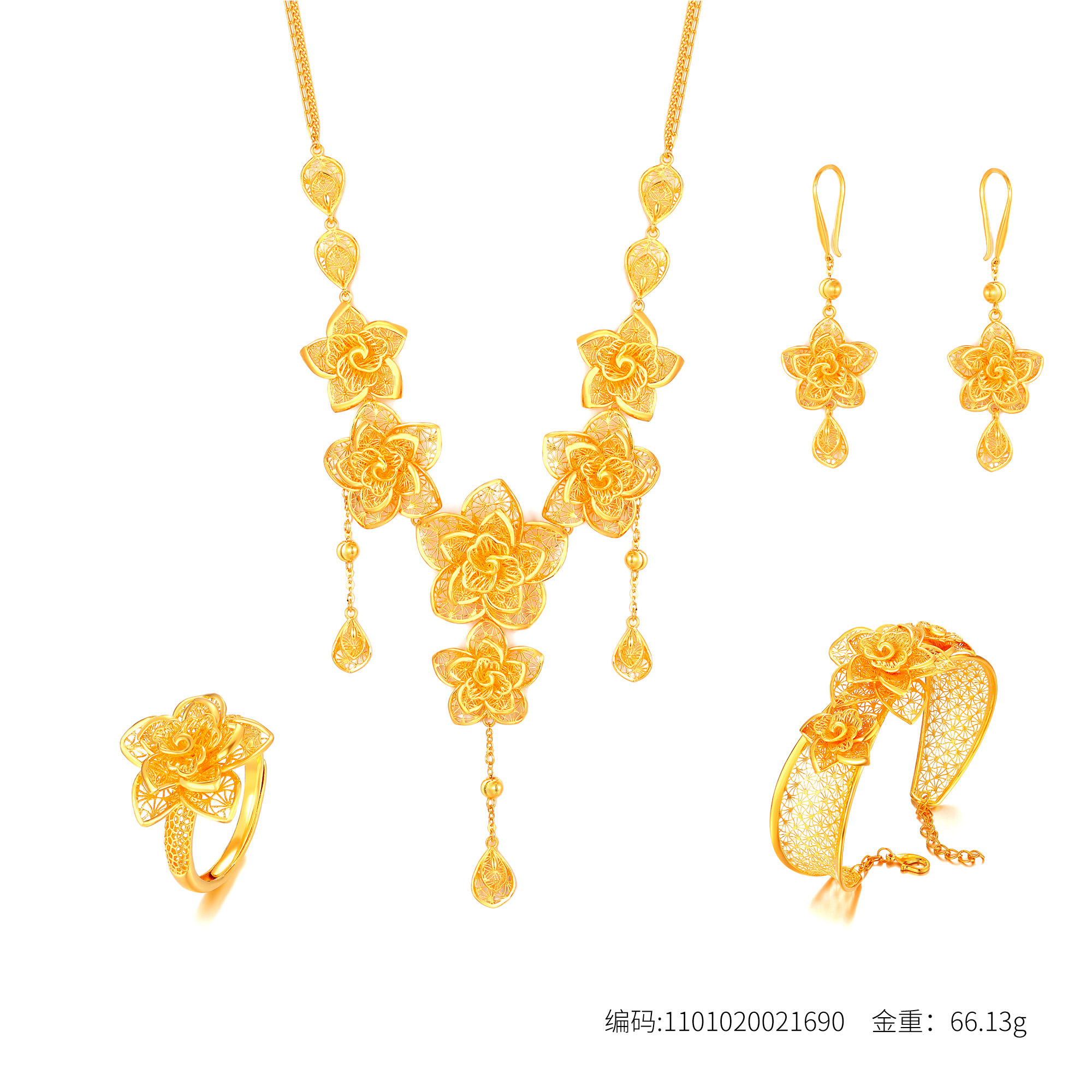 足金精品浪漫婚庆花丝蝴蝶兰拉丝三件套