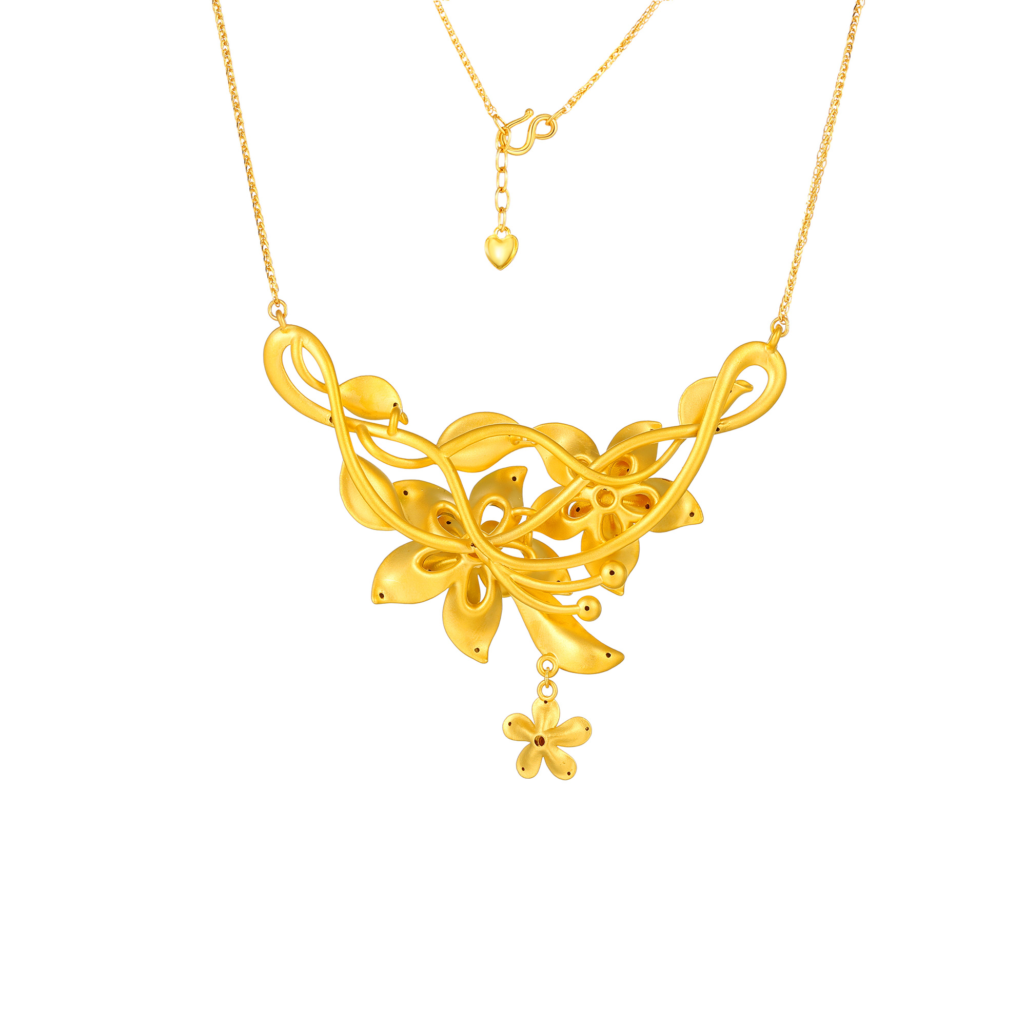 无氰硬金花卉卷草纹爱心流苏婚庆套链
