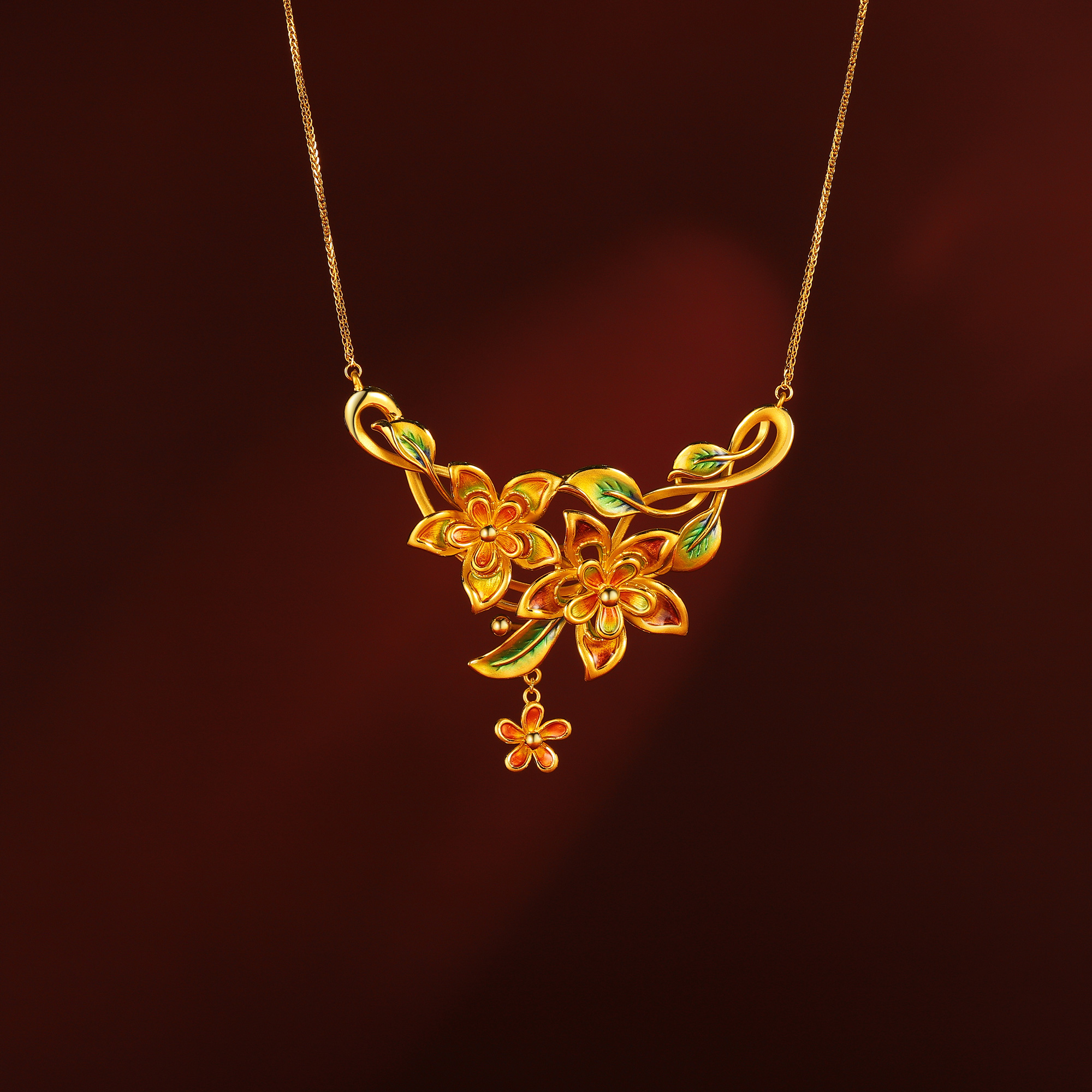 无氰硬金花卉凤凰镂空婚庆套链