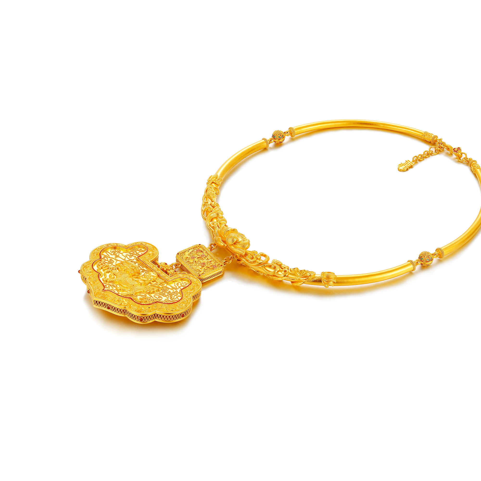>>古法经典莲花麒麟送子婚庆鎏彩项圈