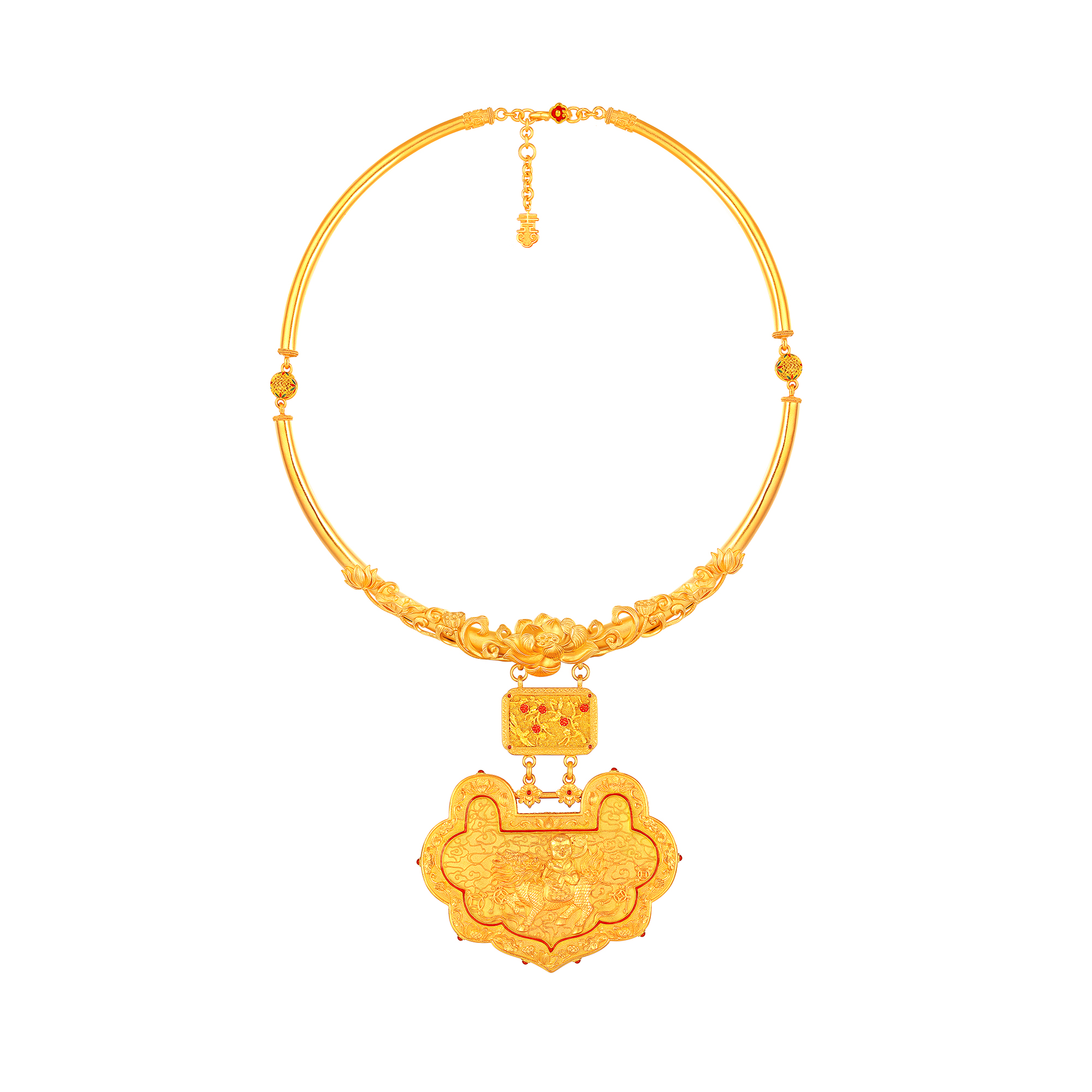 古法经典莲花麒麟送子婚庆鎏彩项圈