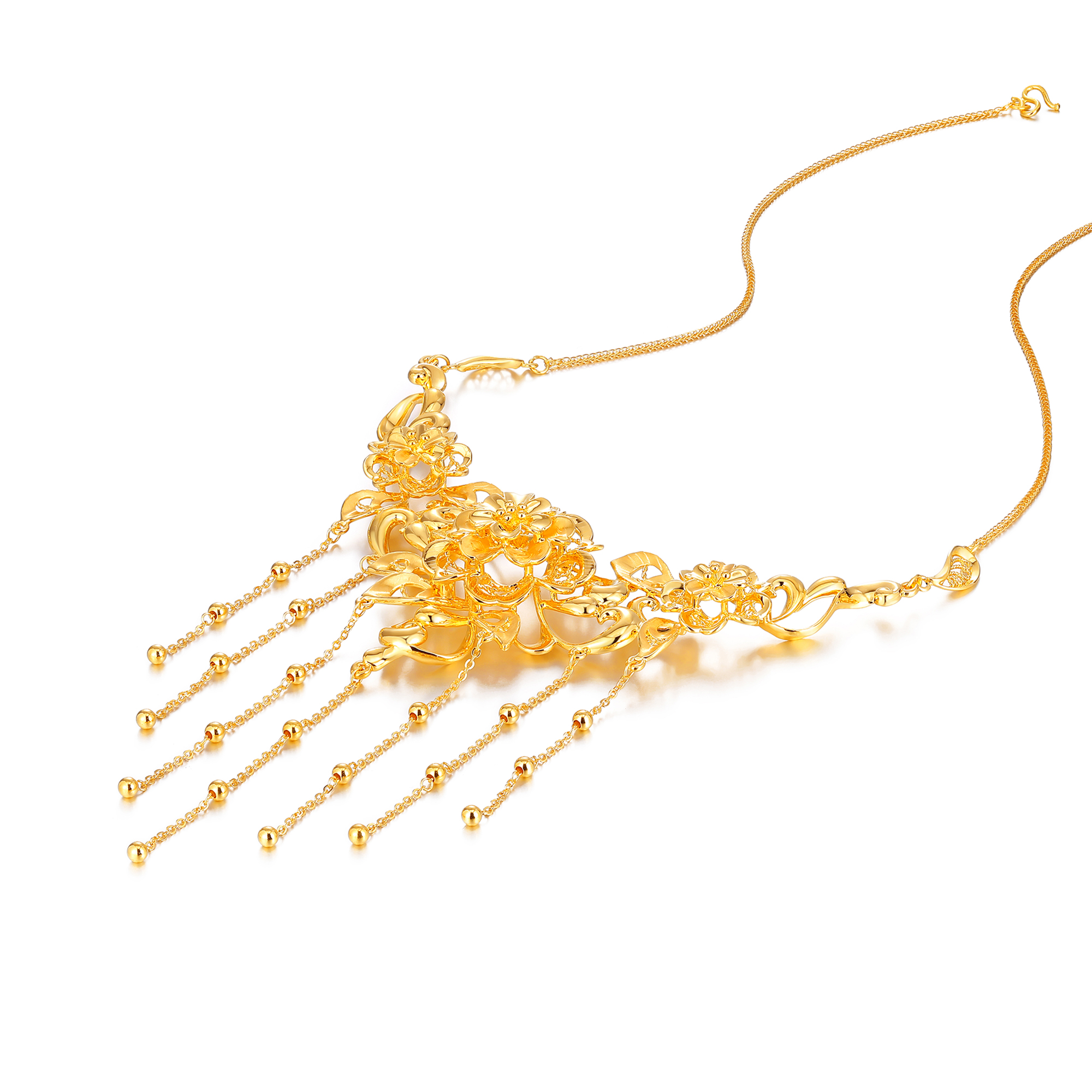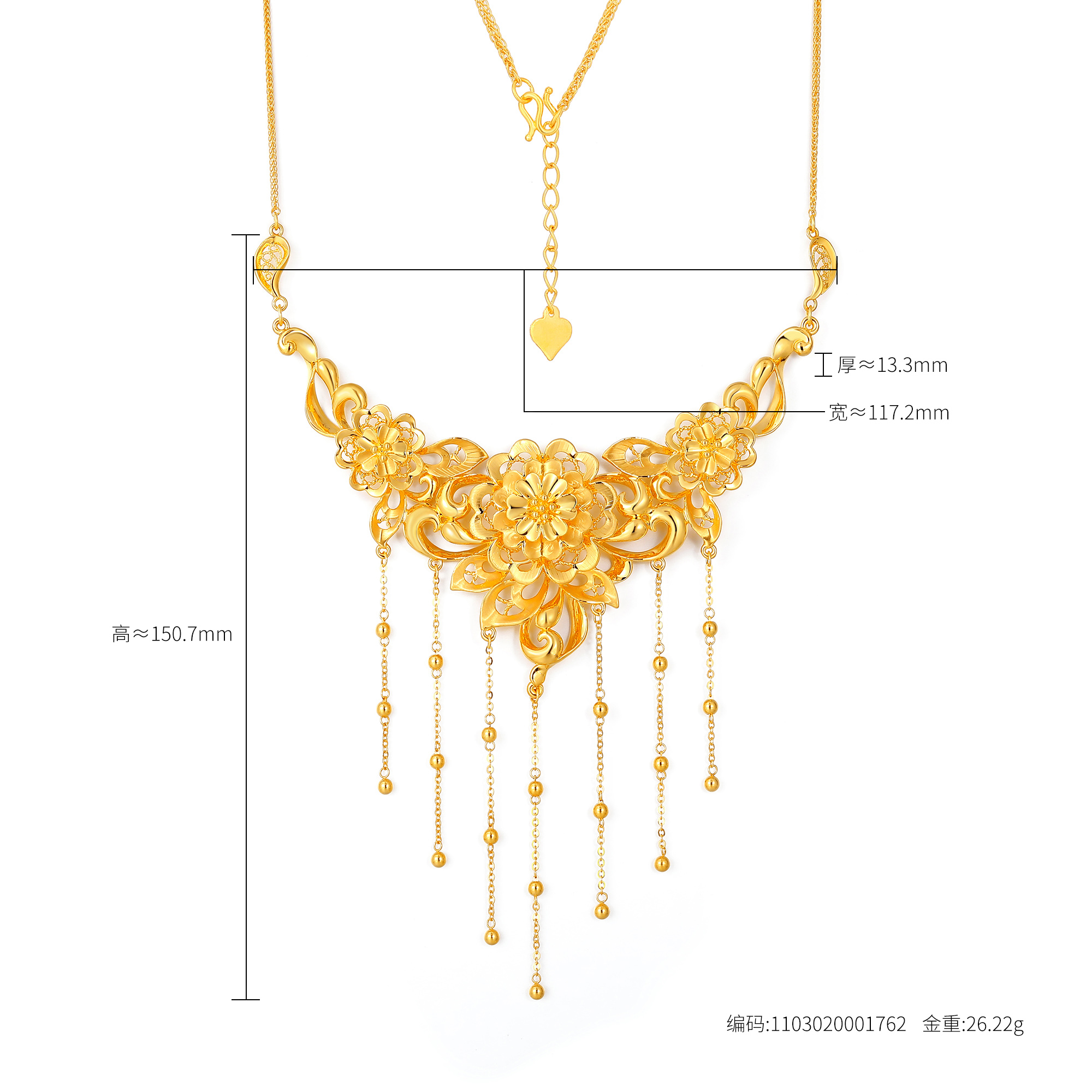 >>无氰硬金经典传统花卉流苏婚庆套链