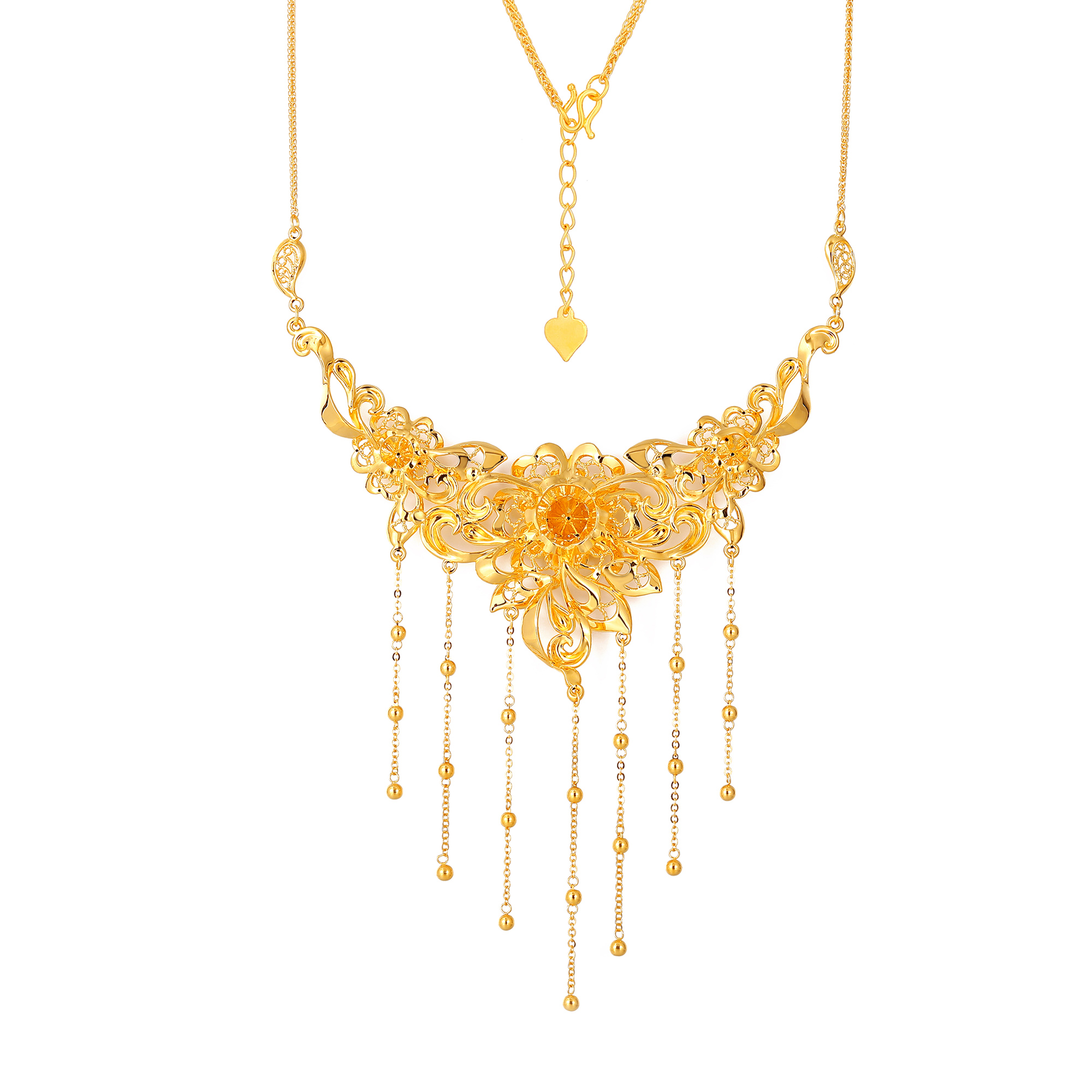 无氰硬金花卉卷草纹爱心流苏婚庆套链