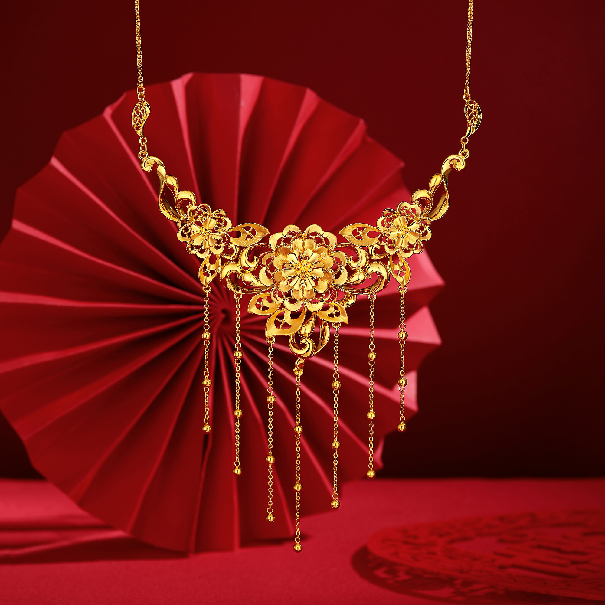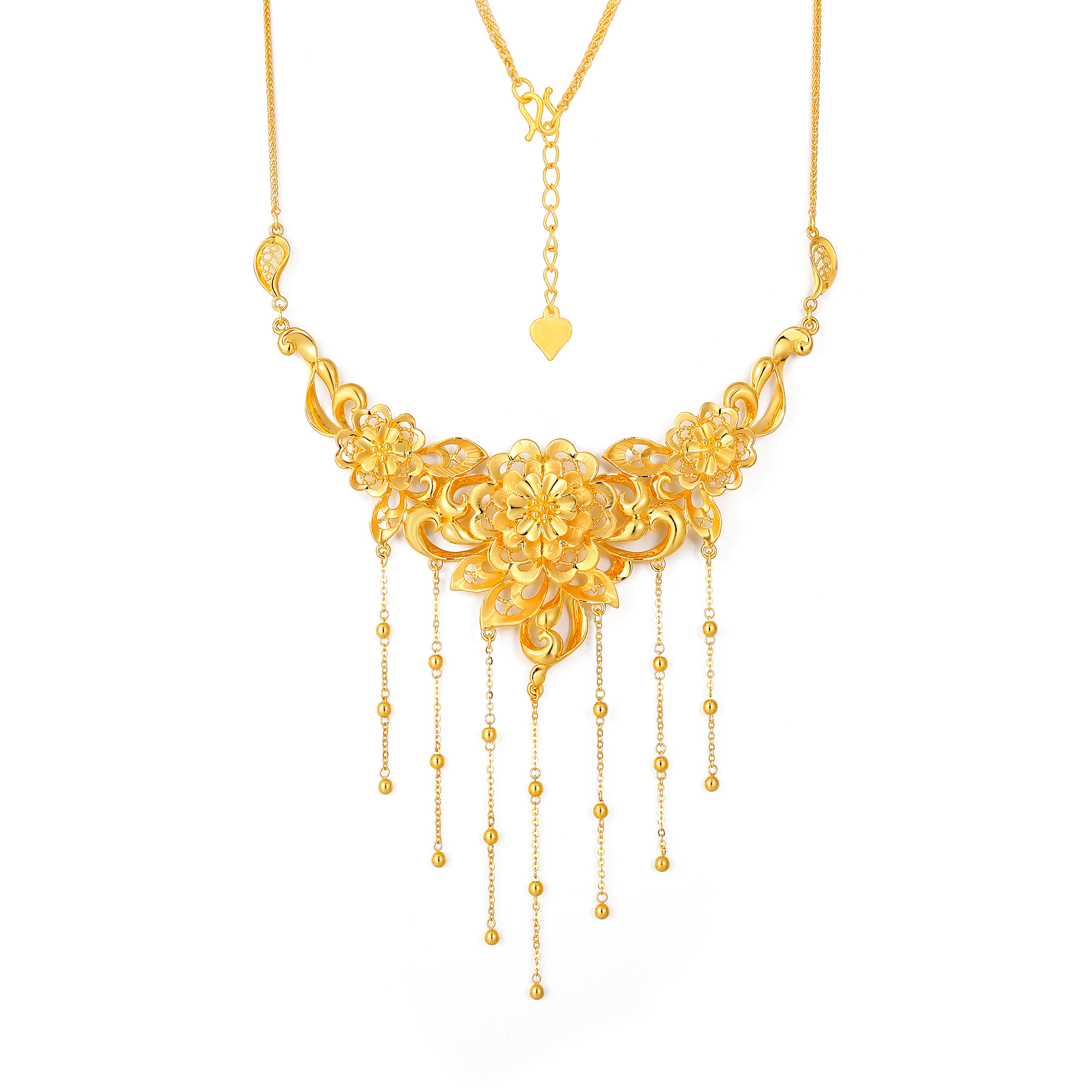 无氰硬金经典传统花卉流苏婚庆套链