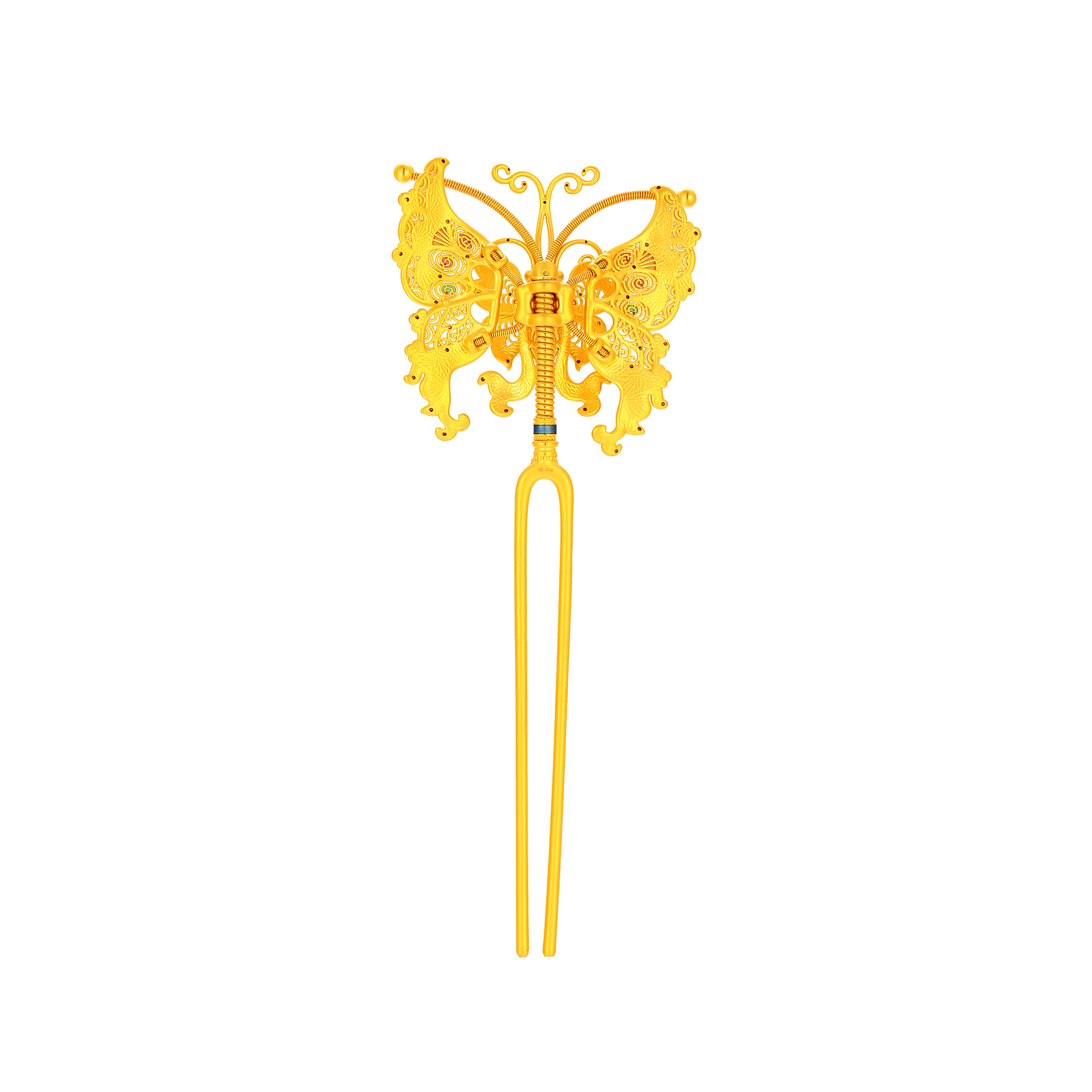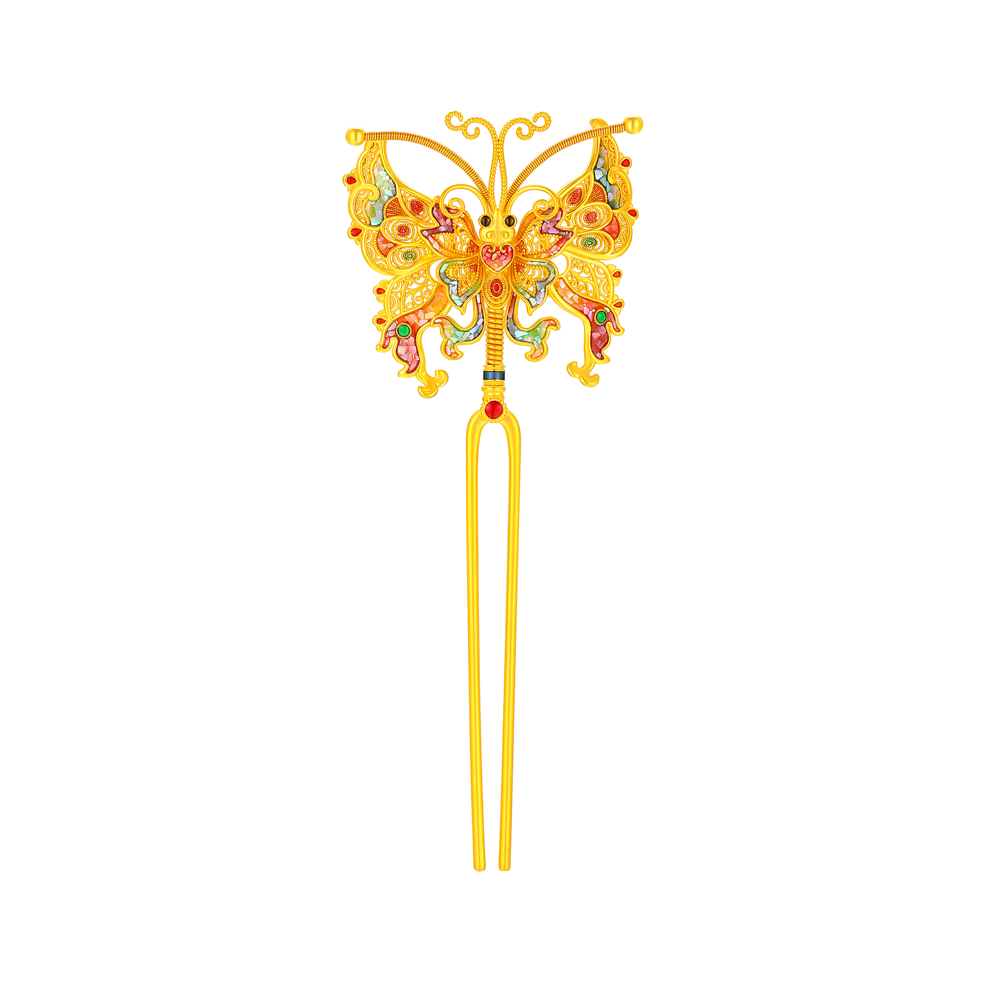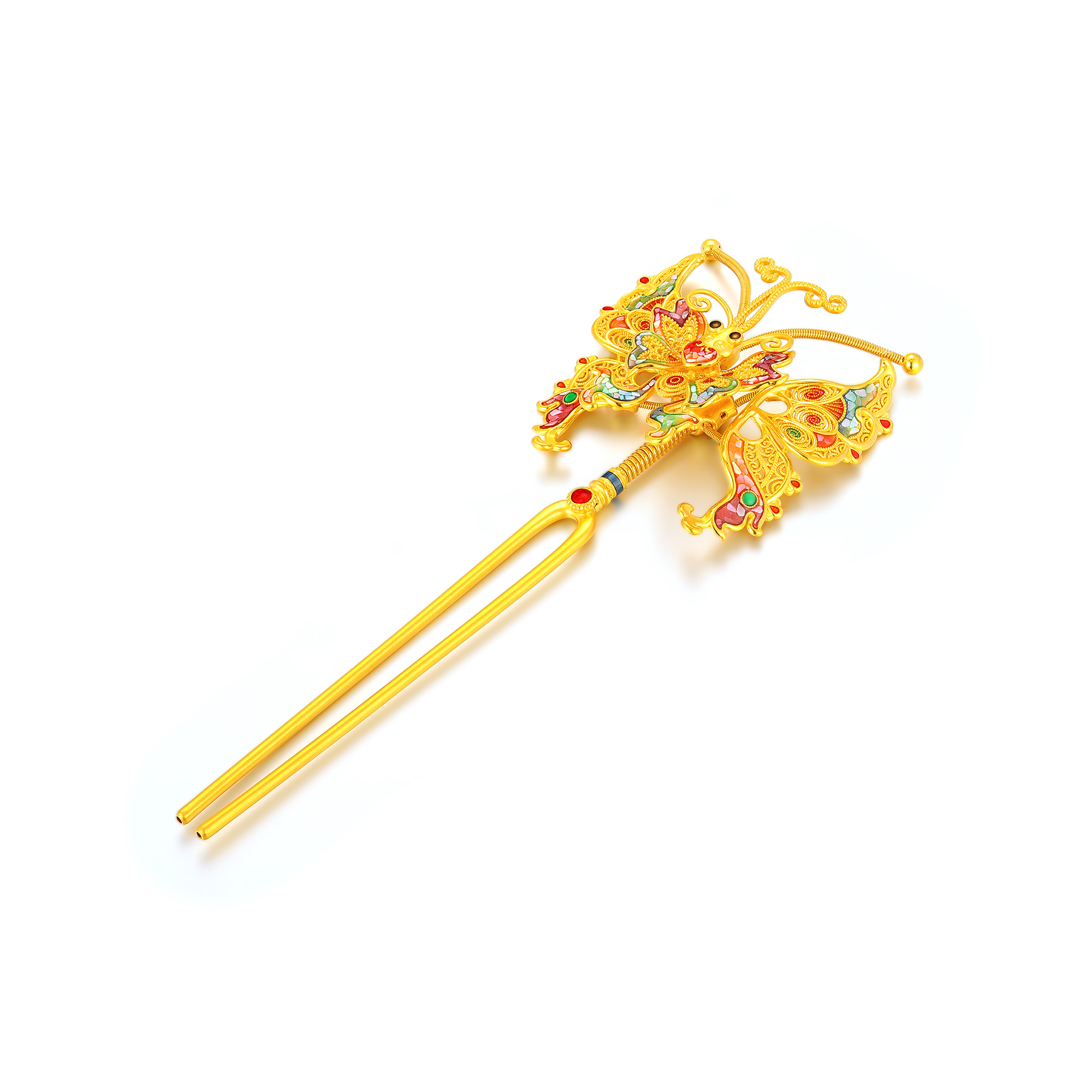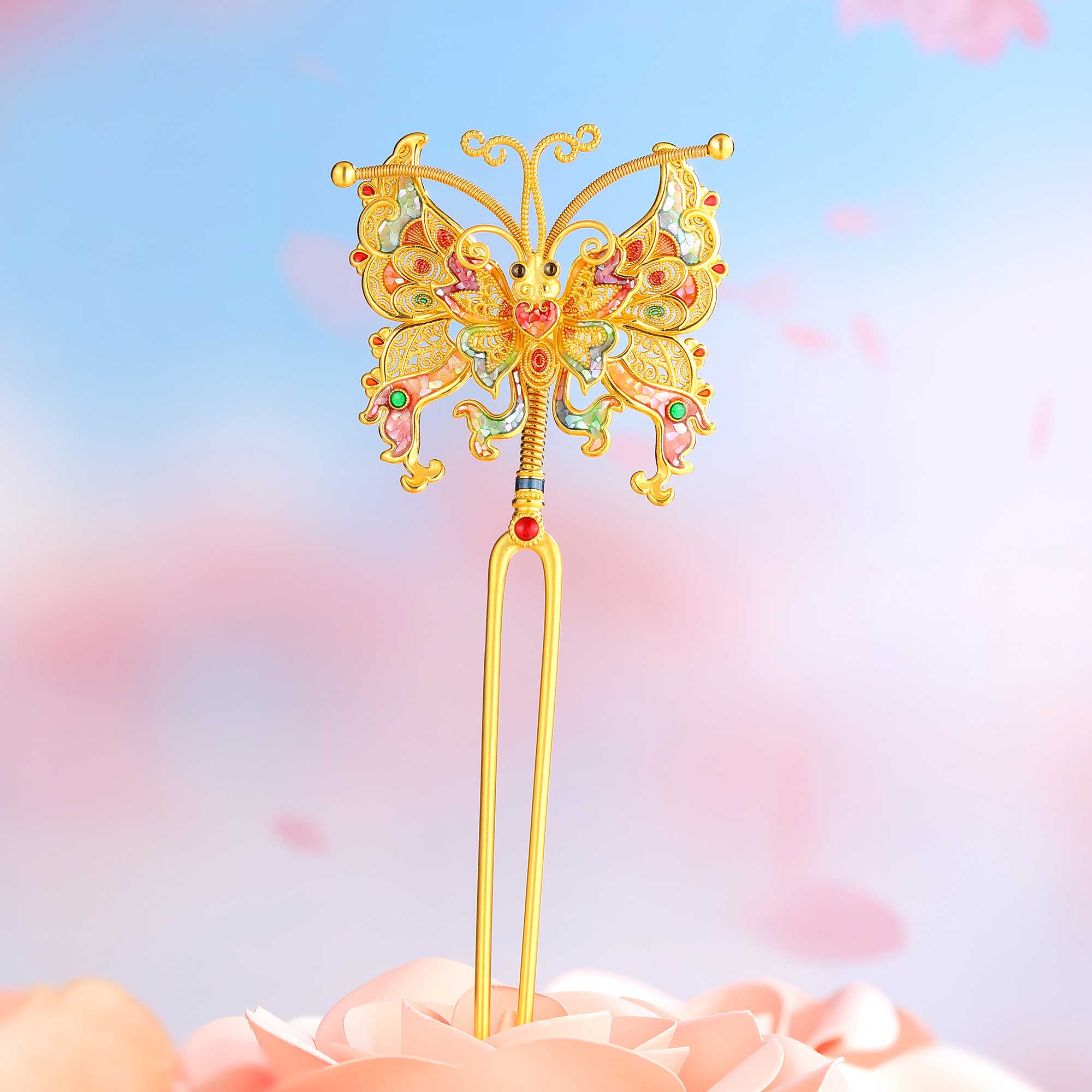 无氰电铸婚庆点螺鎏彩蝶舞翩跹发簪