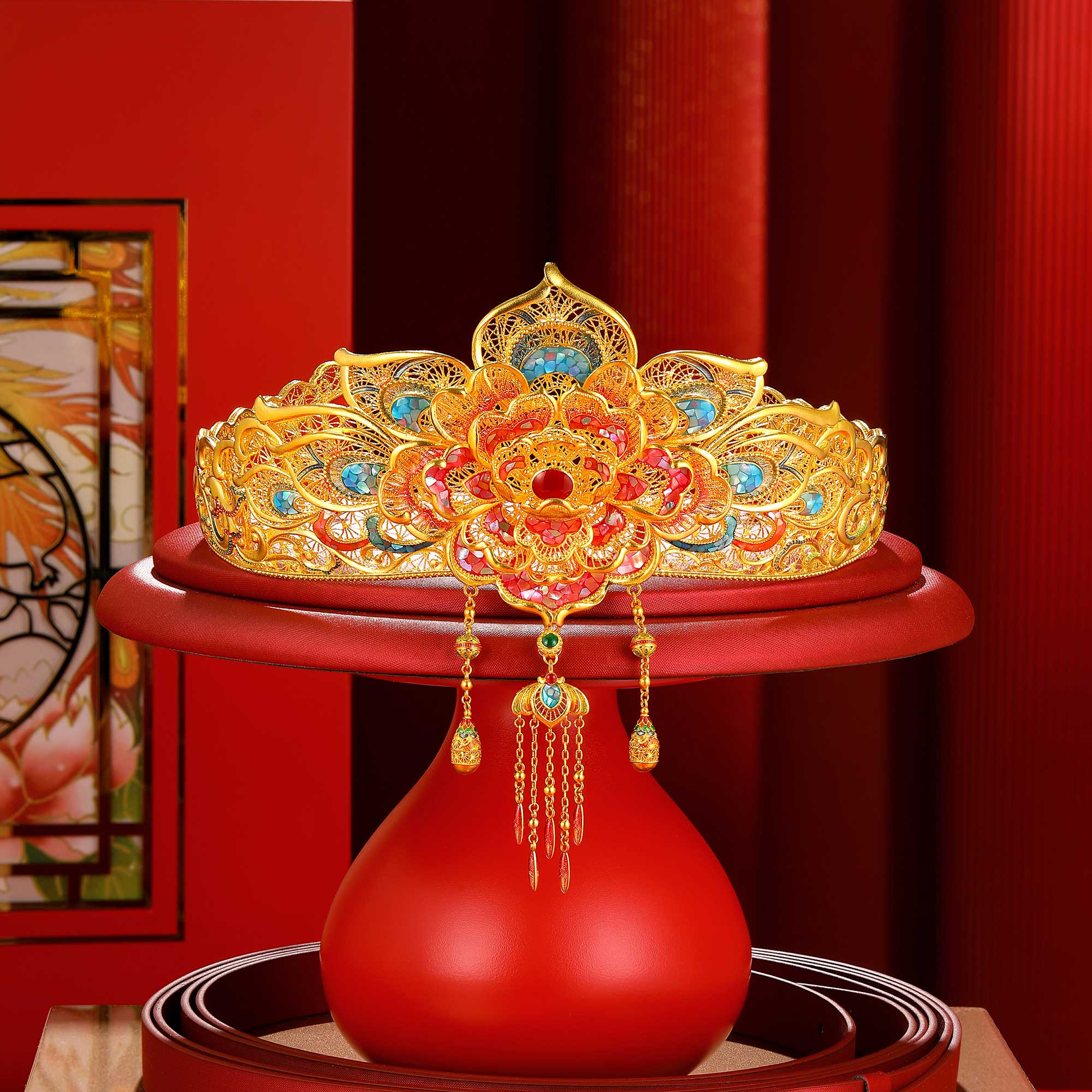 古法经典花卉有凤来仪婚庆螺钿凤冠