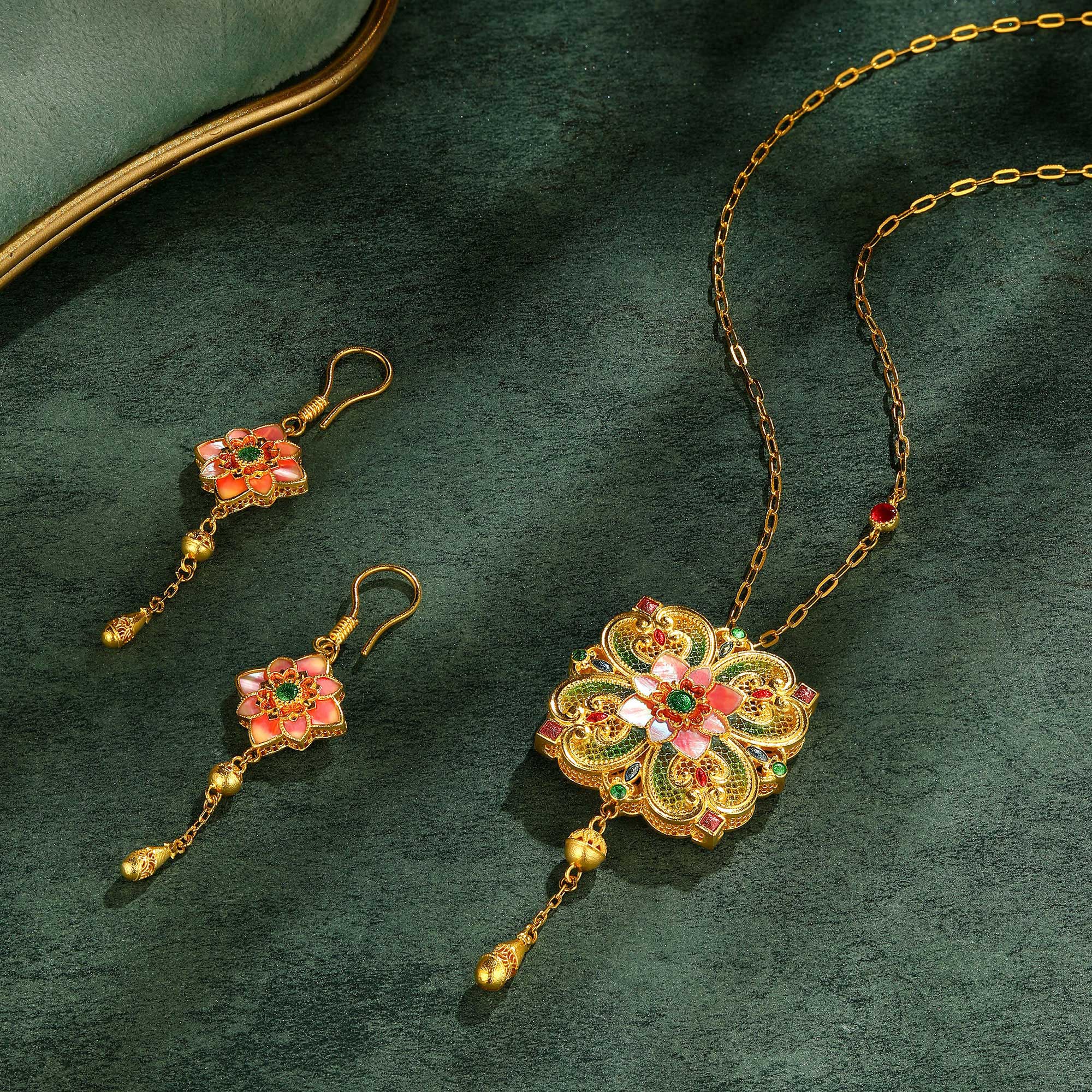 古法典雅绚丽螺钿鎏彩纯洁心相莲花卉套装
