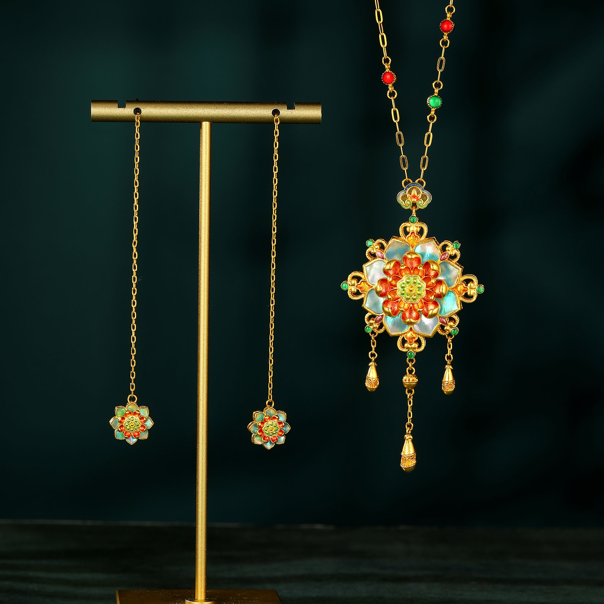 >>古法螺钿鎏彩优雅百年好荷花卉套装