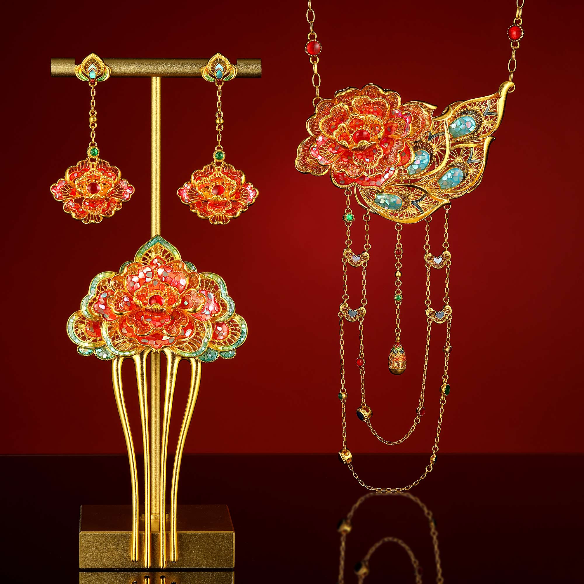 古法奢华螺钿凤凰于飞婚庆凤钗