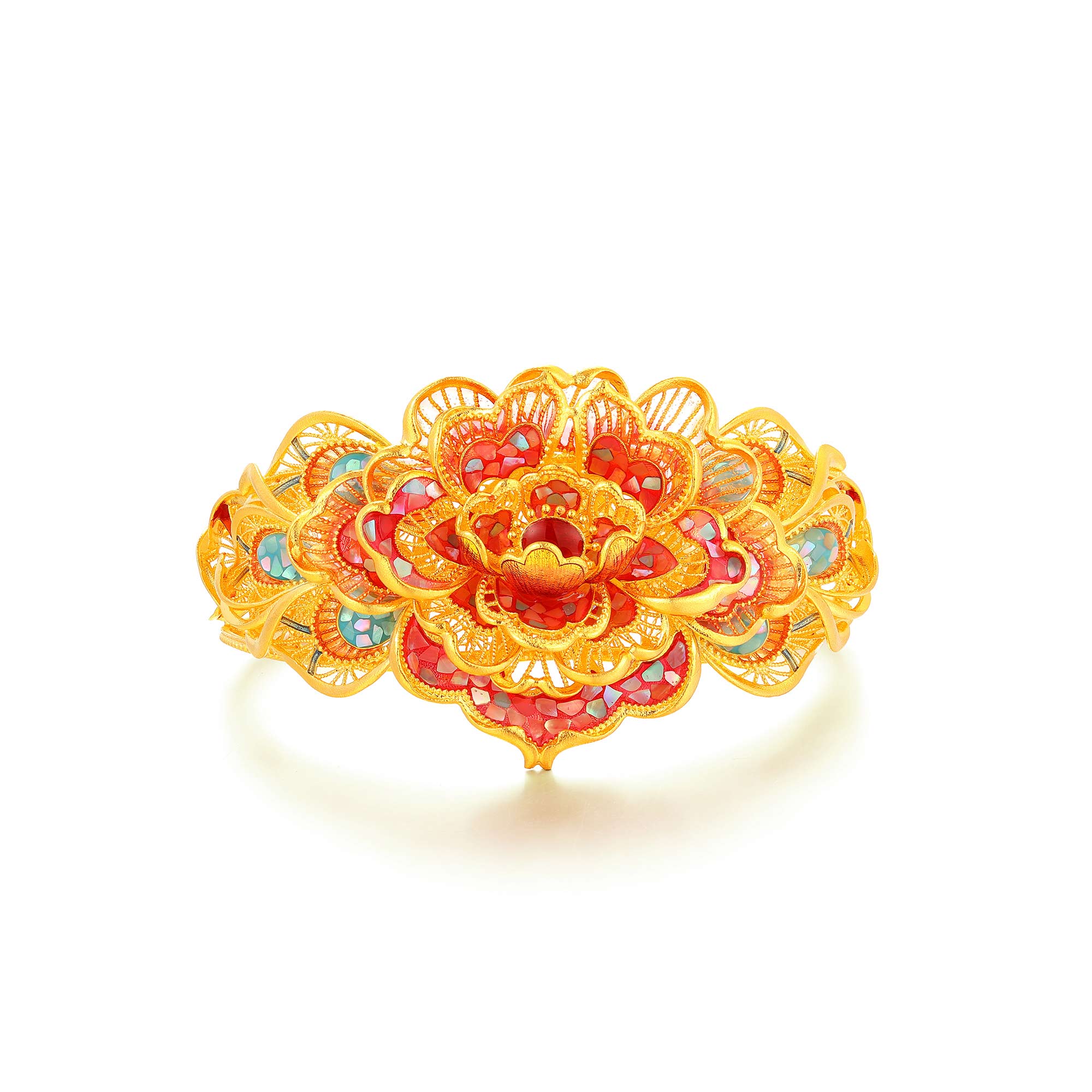>>古法奢华绚丽点螺鎏彩国色凤华镯链