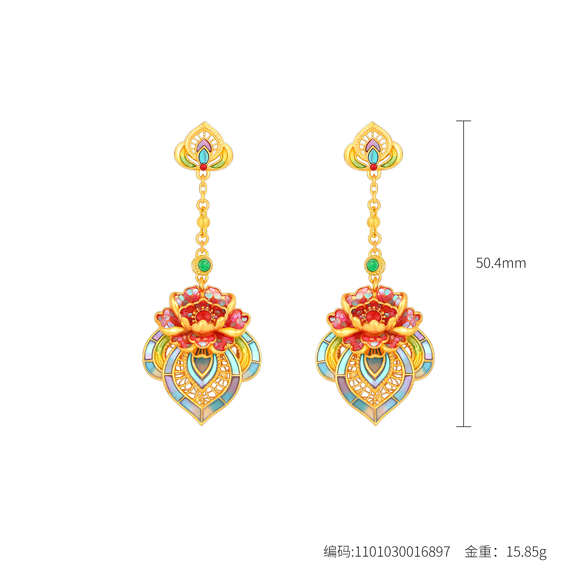 >>古法奢华绚丽点螺鎏彩国色凤华耳钉